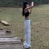 Verano 2024 Nueva Llegada Tendencia Combinable Diseño Retro Adelgazante Sensación de Nicho Suelto Cintura Alta Tallas Grandes Gordita Hermana Mujer