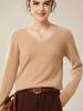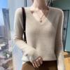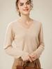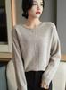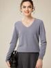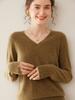 Suéter básico de punto sencillo de manga larga con cuello en V para mujer, 100% cachemira de montaña, para otoño e invierno.