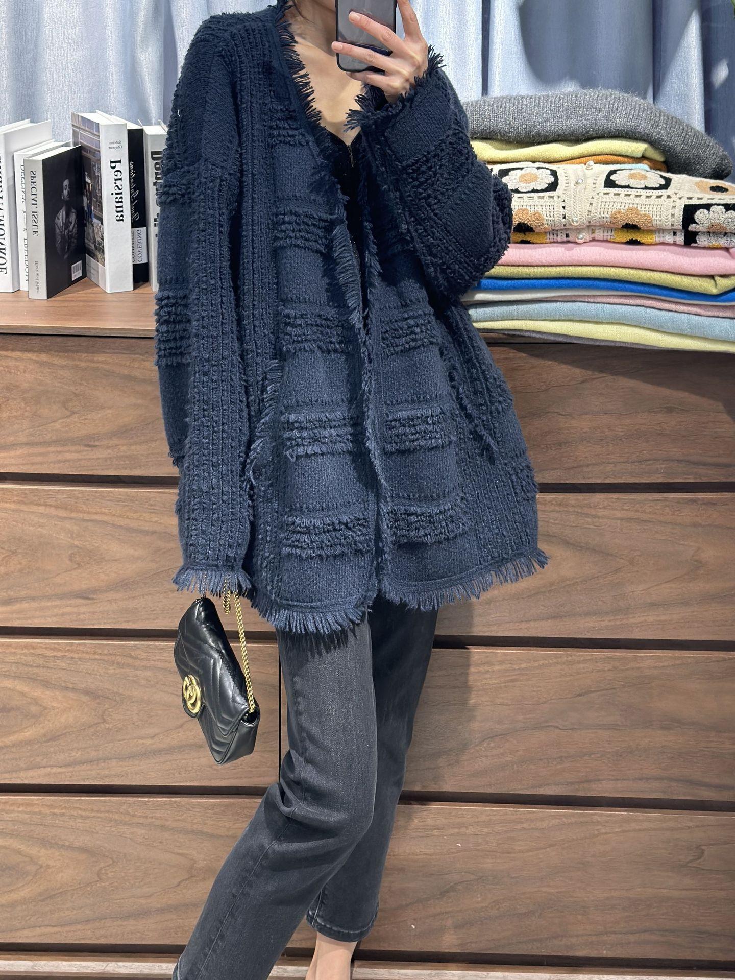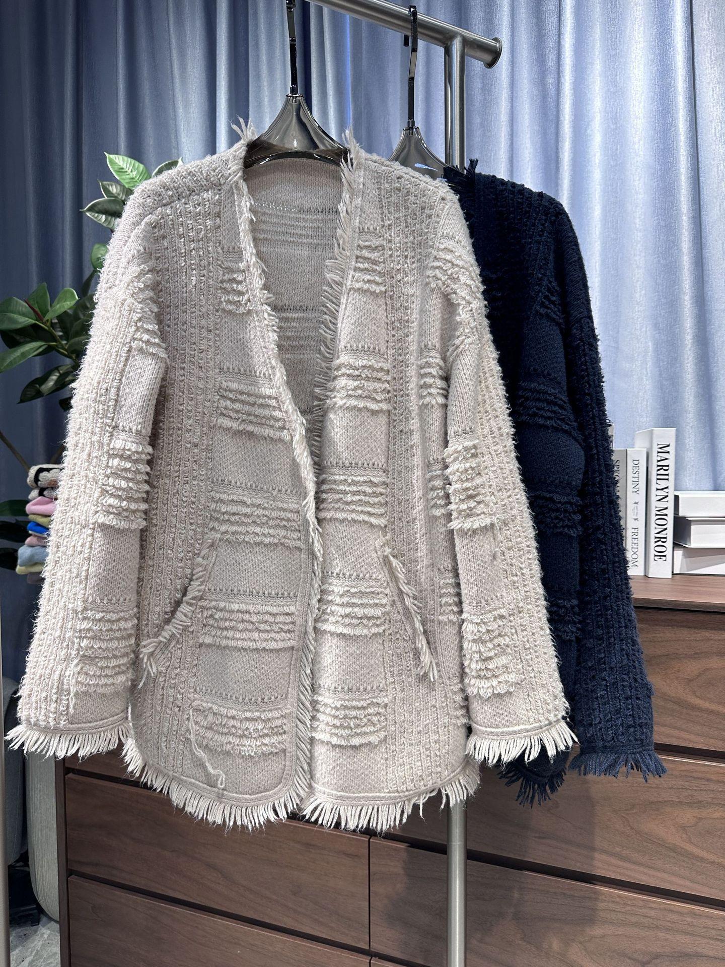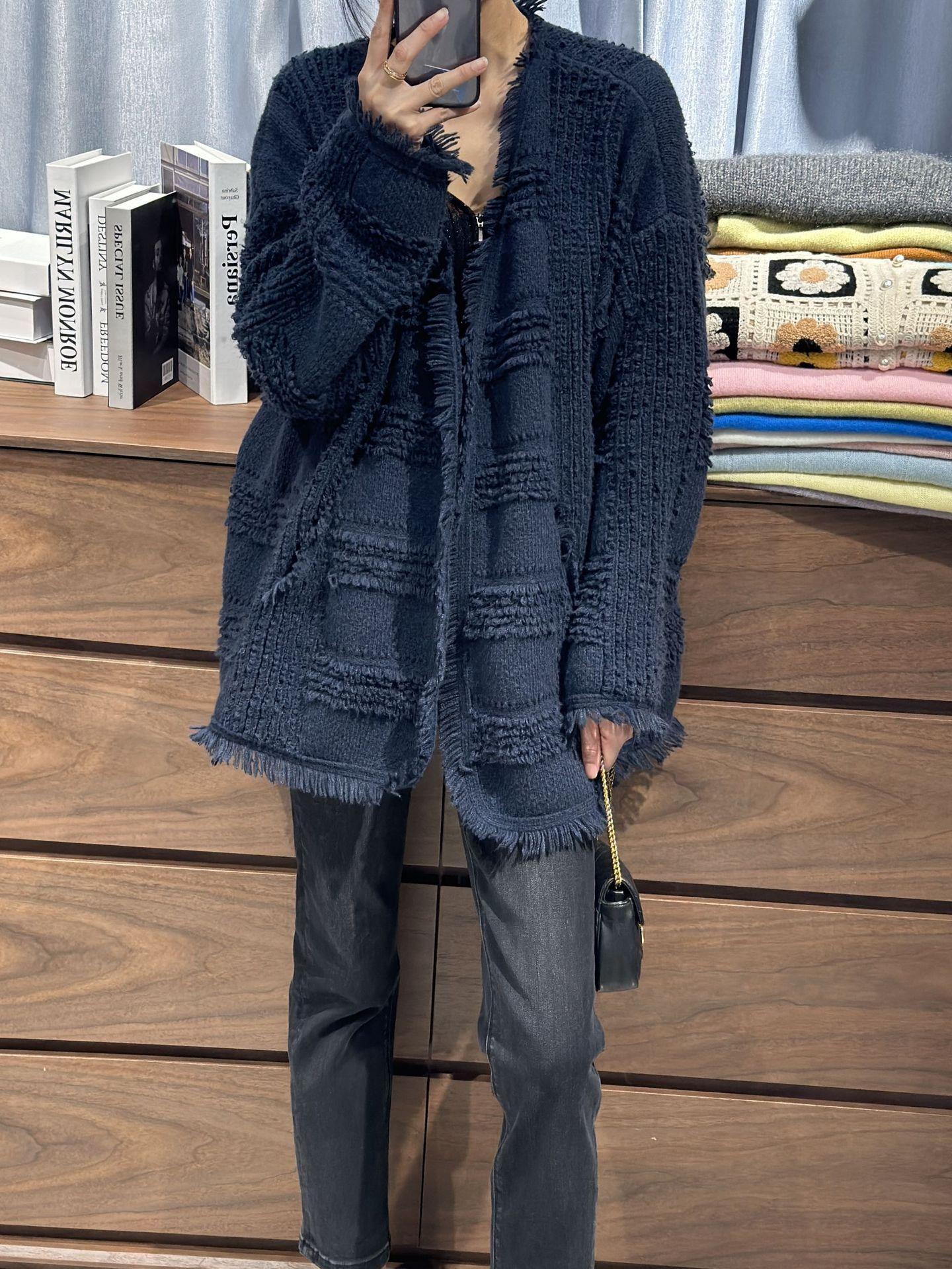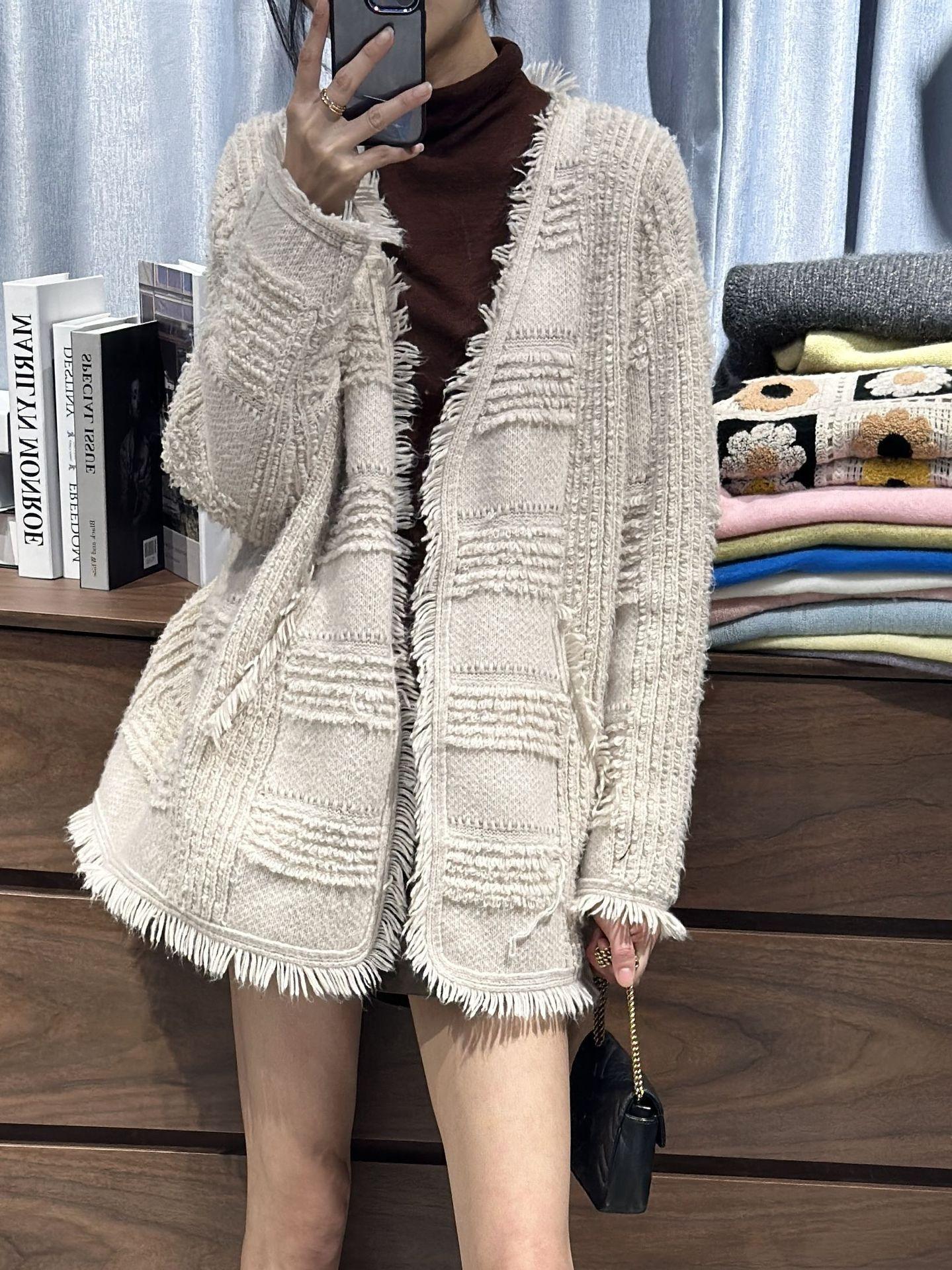 Cárdigan nuevo de Otoño e Invierno para Mujer Suéter 100% Lana Pura Estilo Pequeño Fragante Borla Cachemira Suelto Perezoso Chaqueta de Suéter de Punto