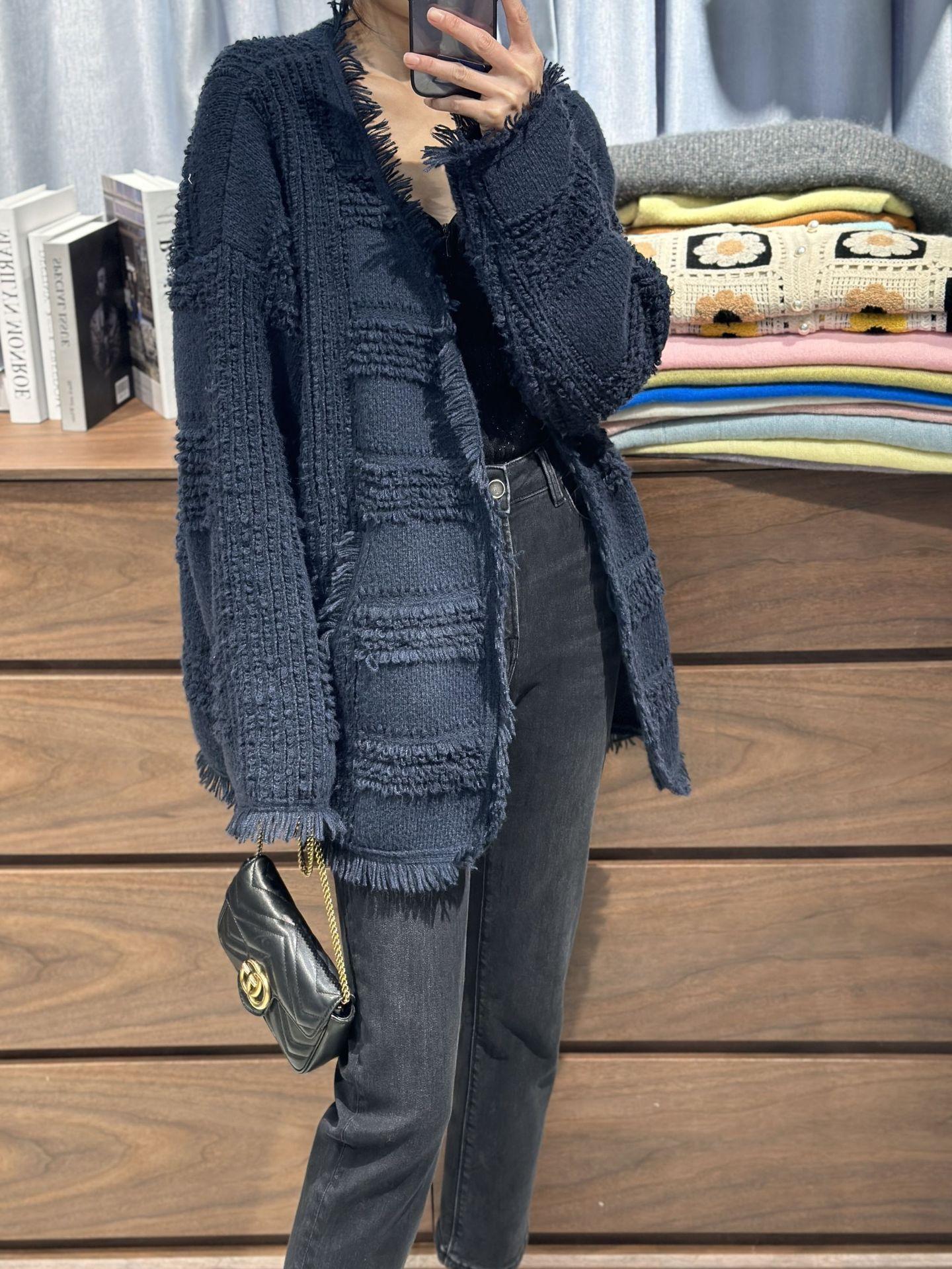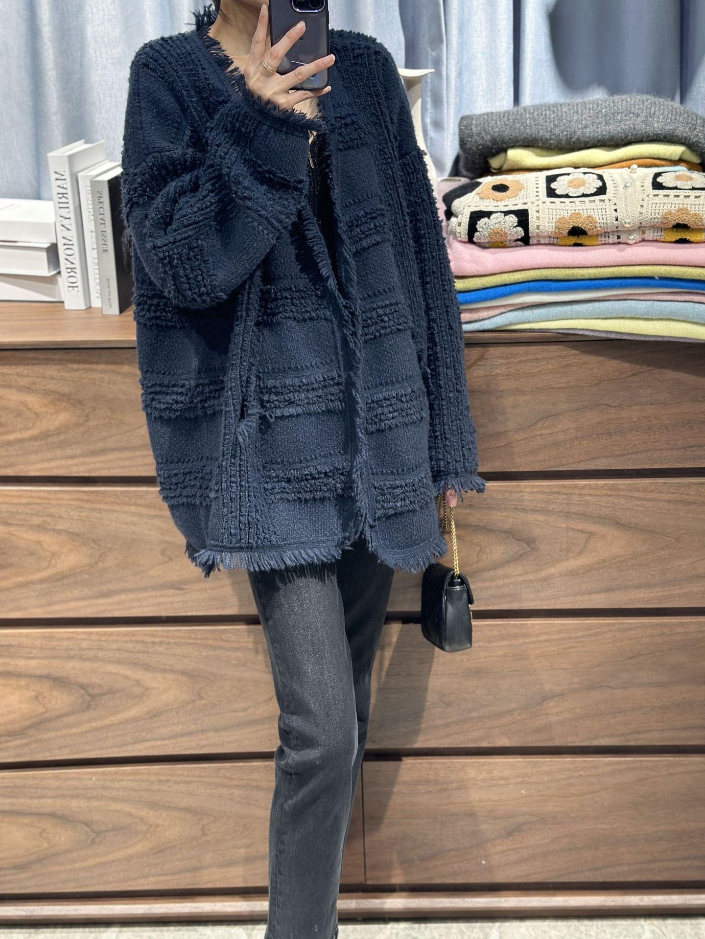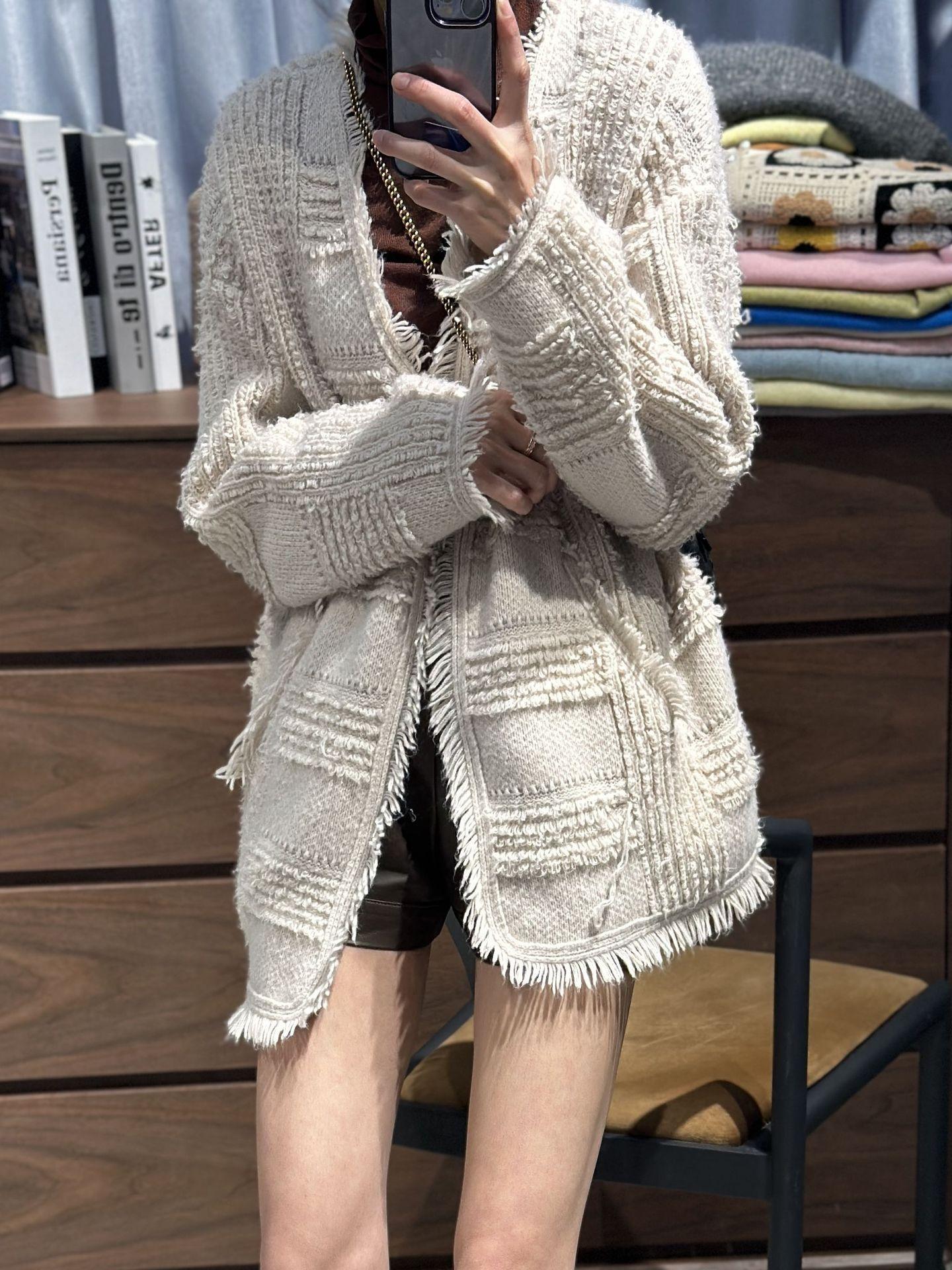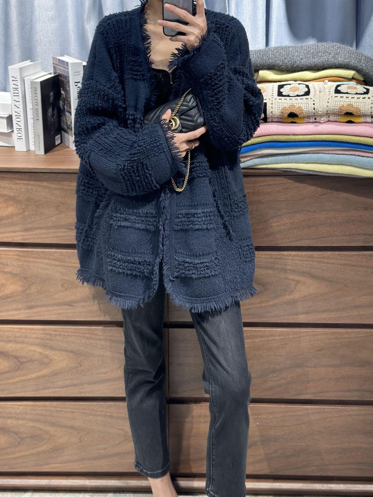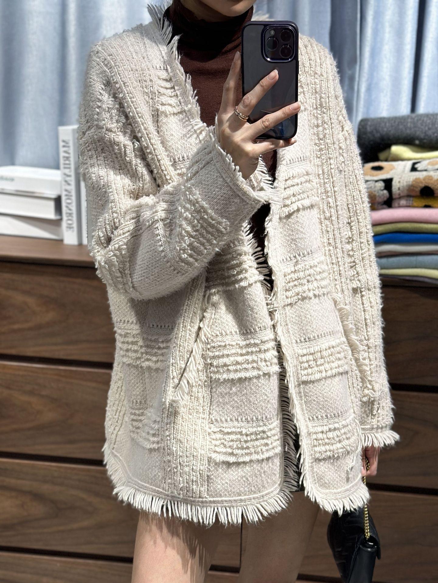 Cárdigan nuevo de Otoño e Invierno para Mujer Suéter 100% Lana Pura Estilo Pequeño Fragante Borla Cachemira Suelto Perezoso Chaqueta de Suéter de Punto