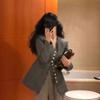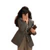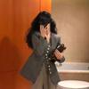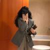 Chaqueta de Traje Profesional de Lana para Viajero con Cuello en V Francés, Diseño de Top Gris Elegante Casual, Traje Pequeño Estilo Coreano
