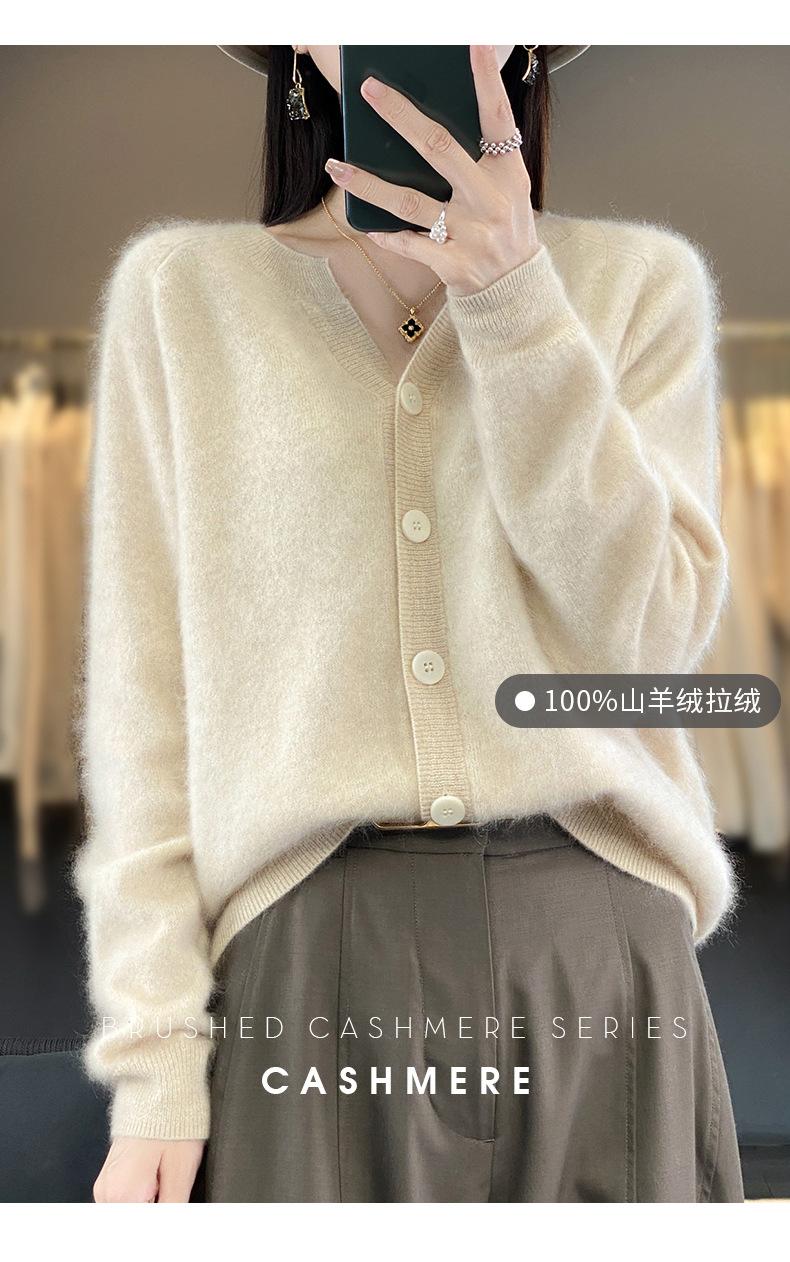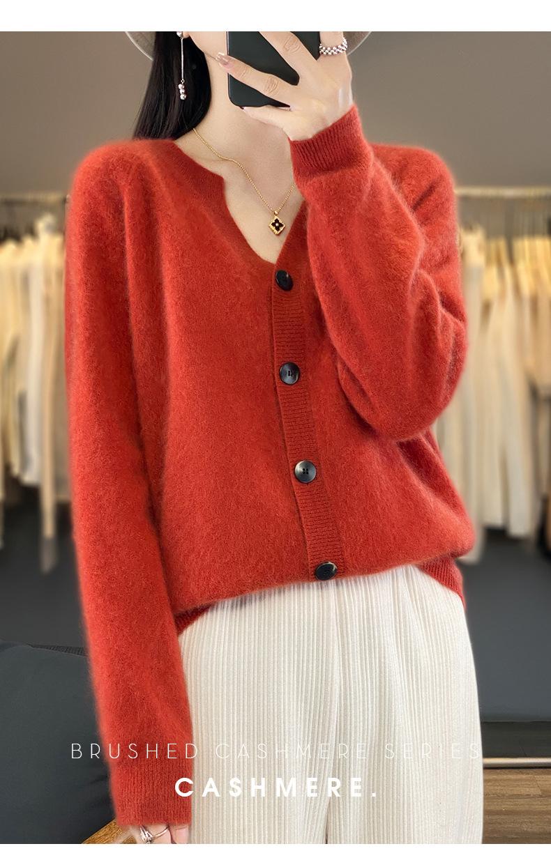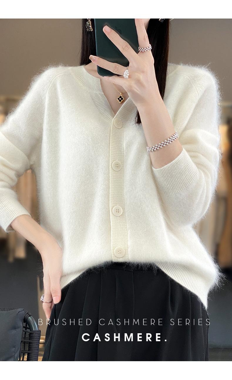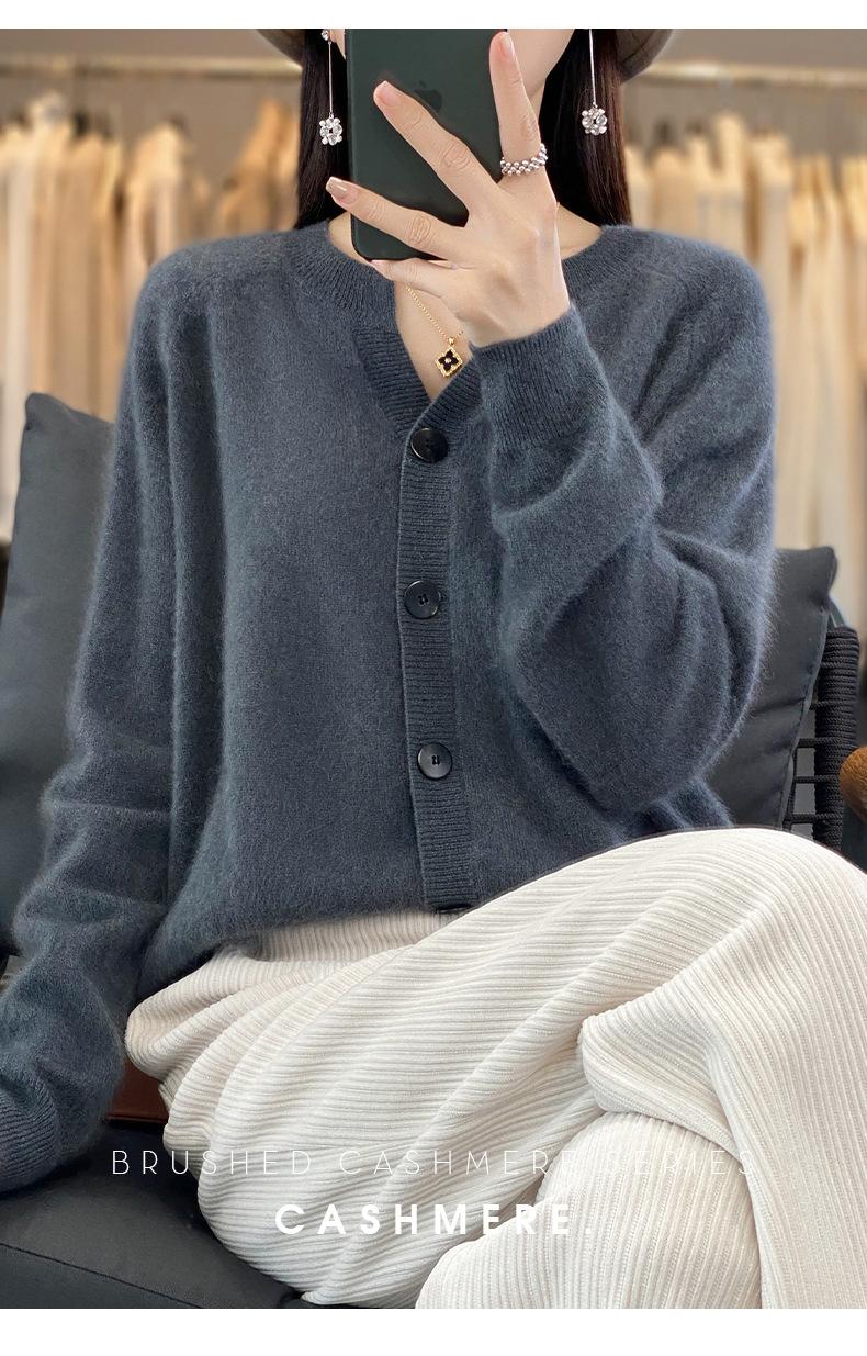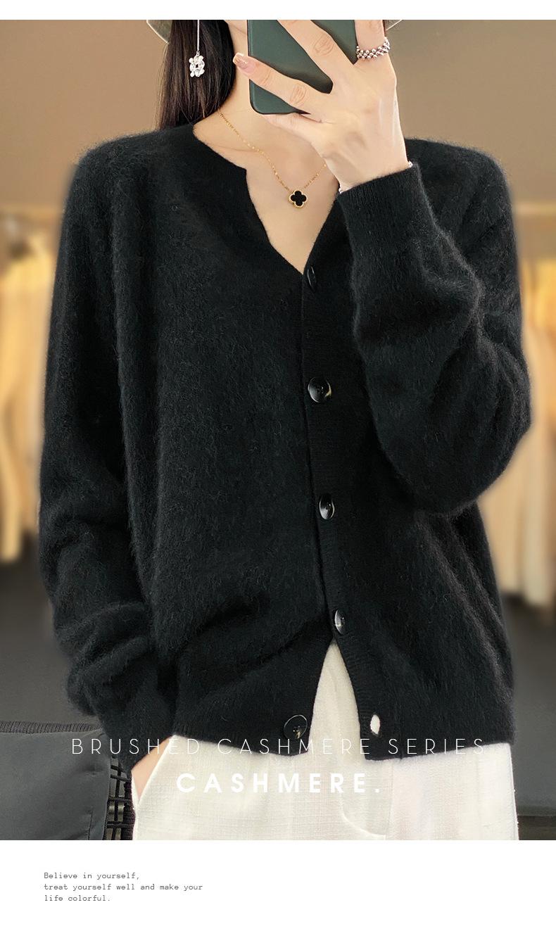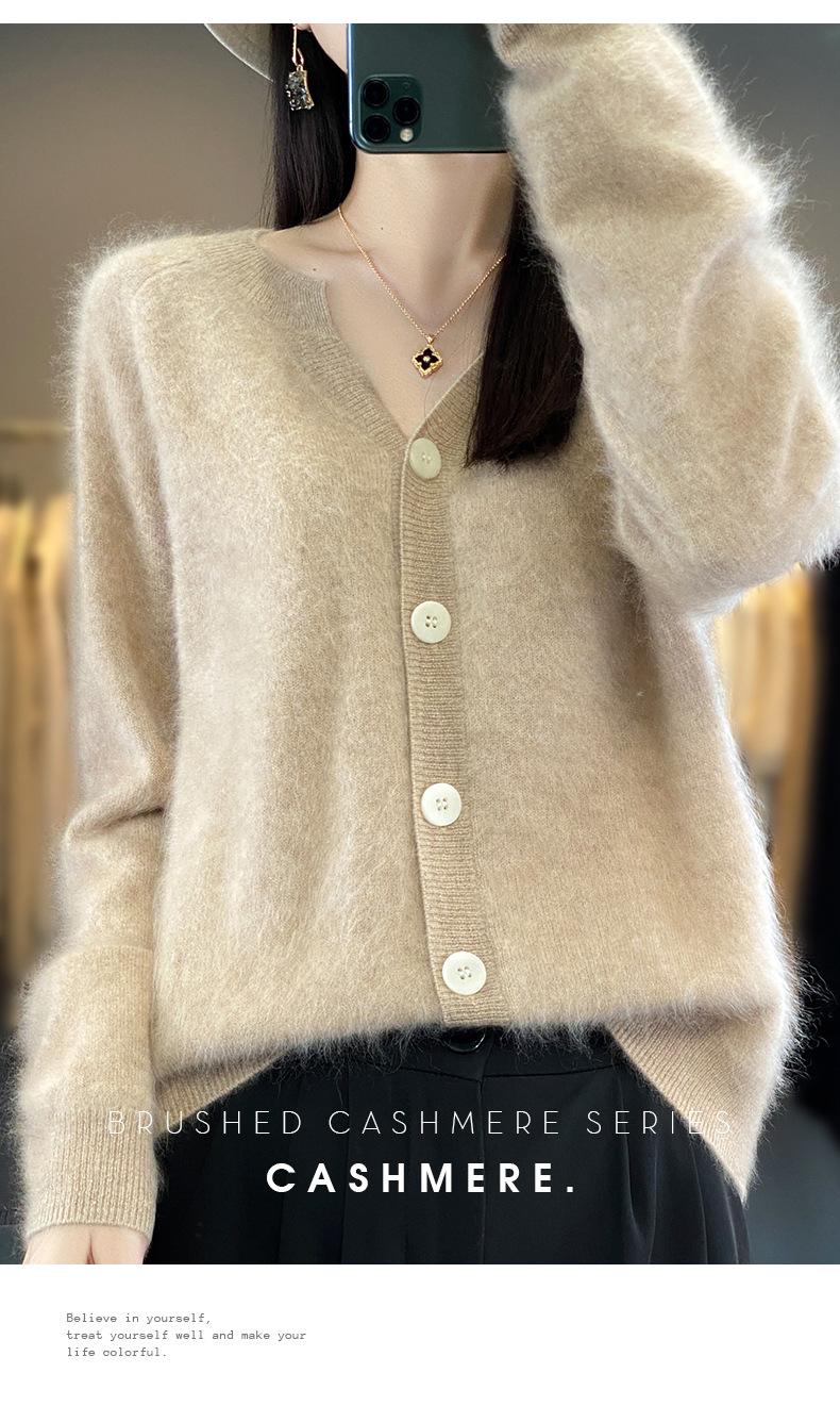 Cárdigan de punto de cachemira cepillada para otoño e invierno, abrigo holgado con cuello en V medio abierto para mujer, top de punto ajustado