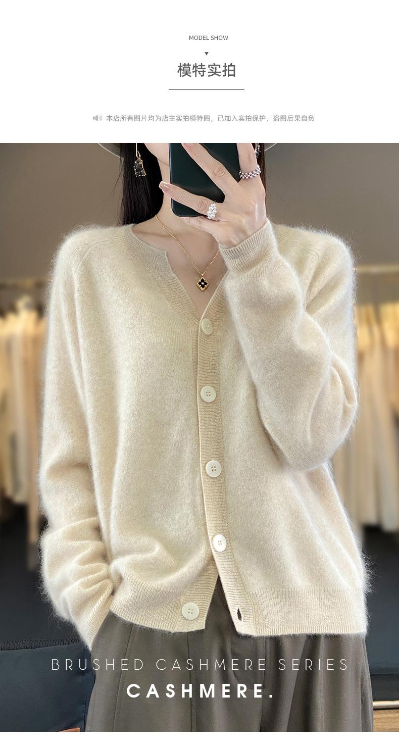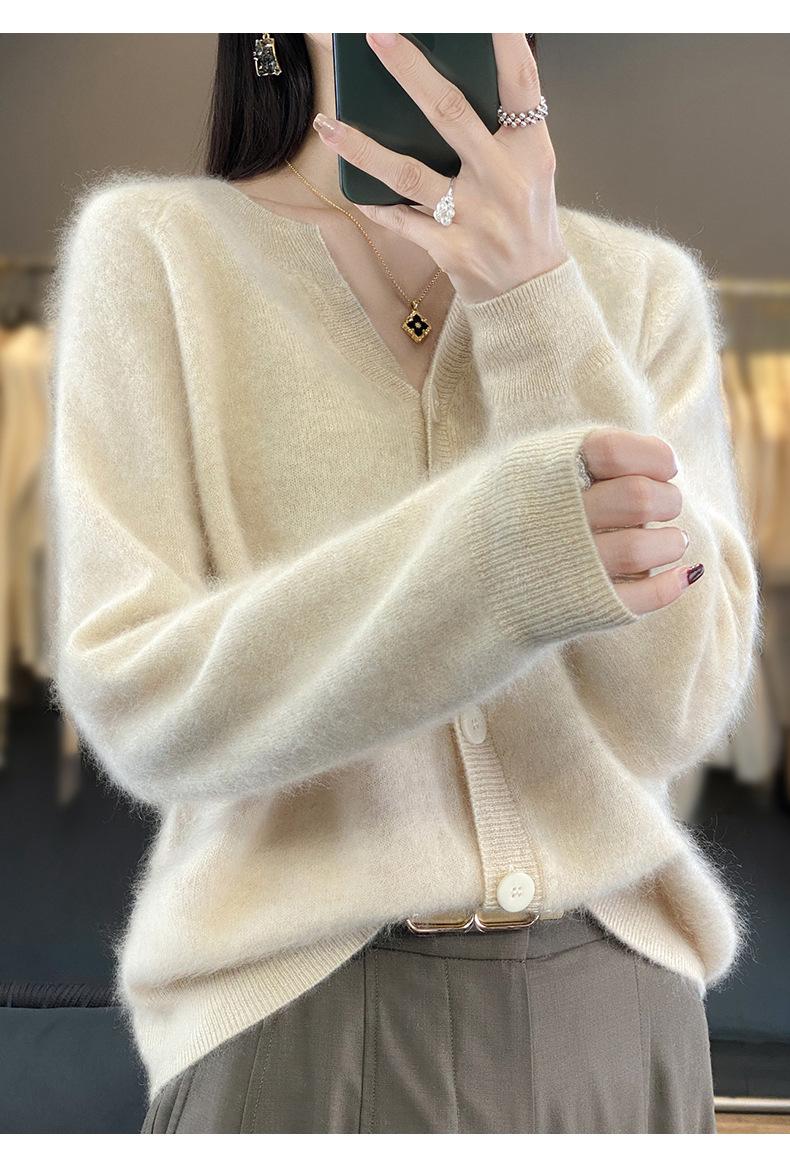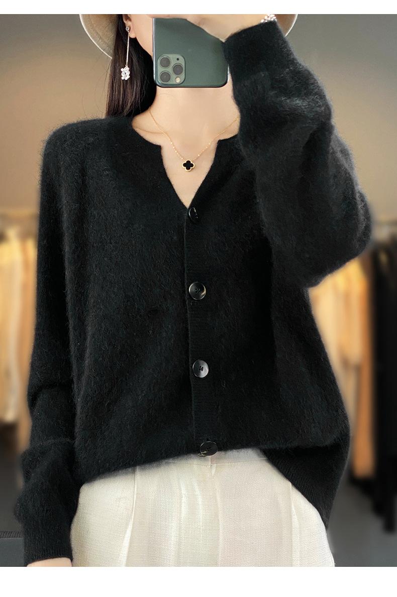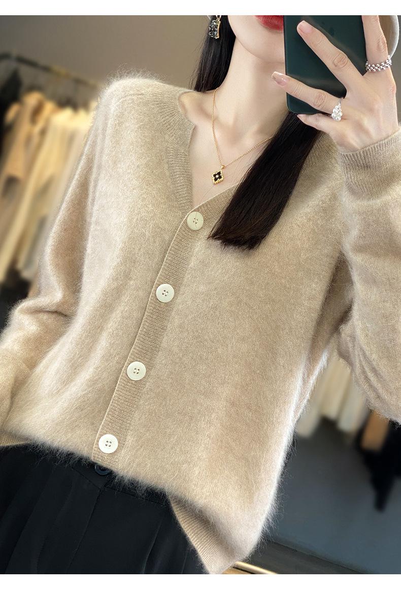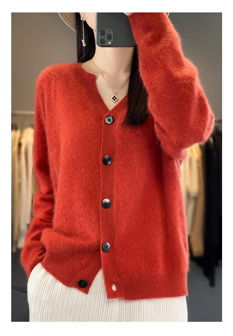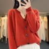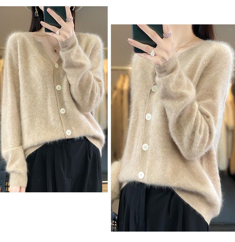Cárdigan de punto de cachemira cepillada para otoño e invierno, abrigo holgado con cuello en V medio abierto para mujer, top de punto ajustado