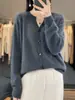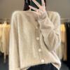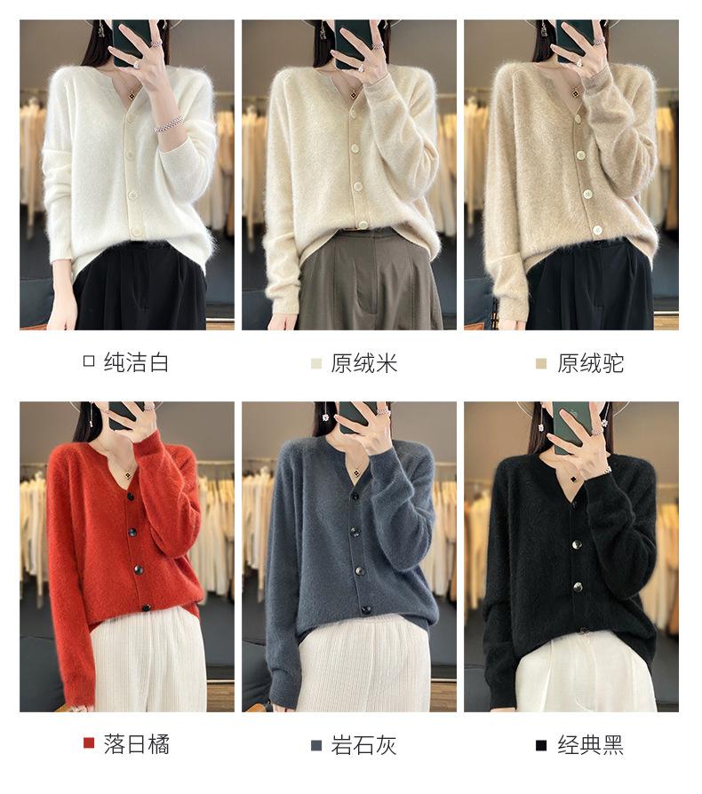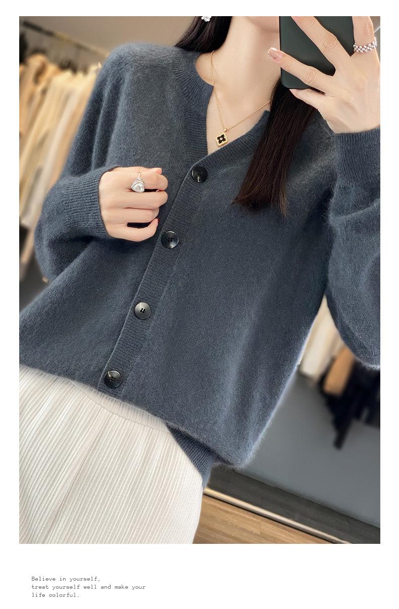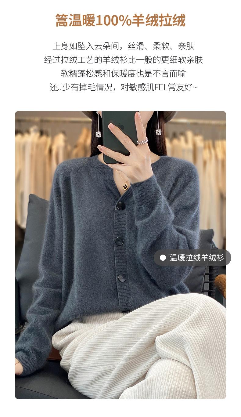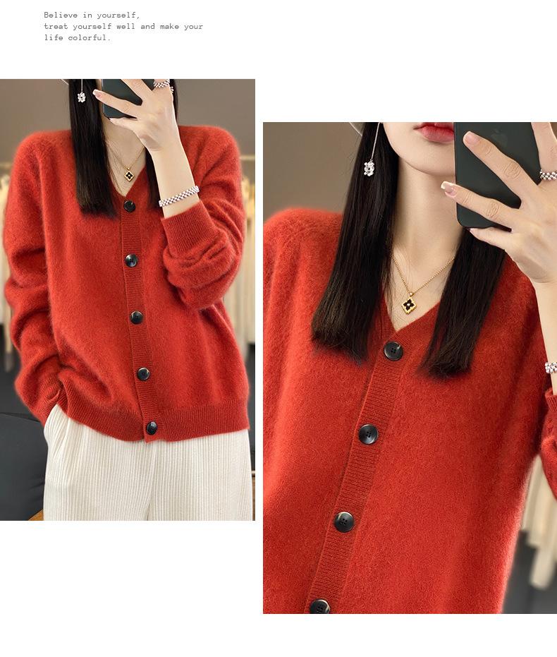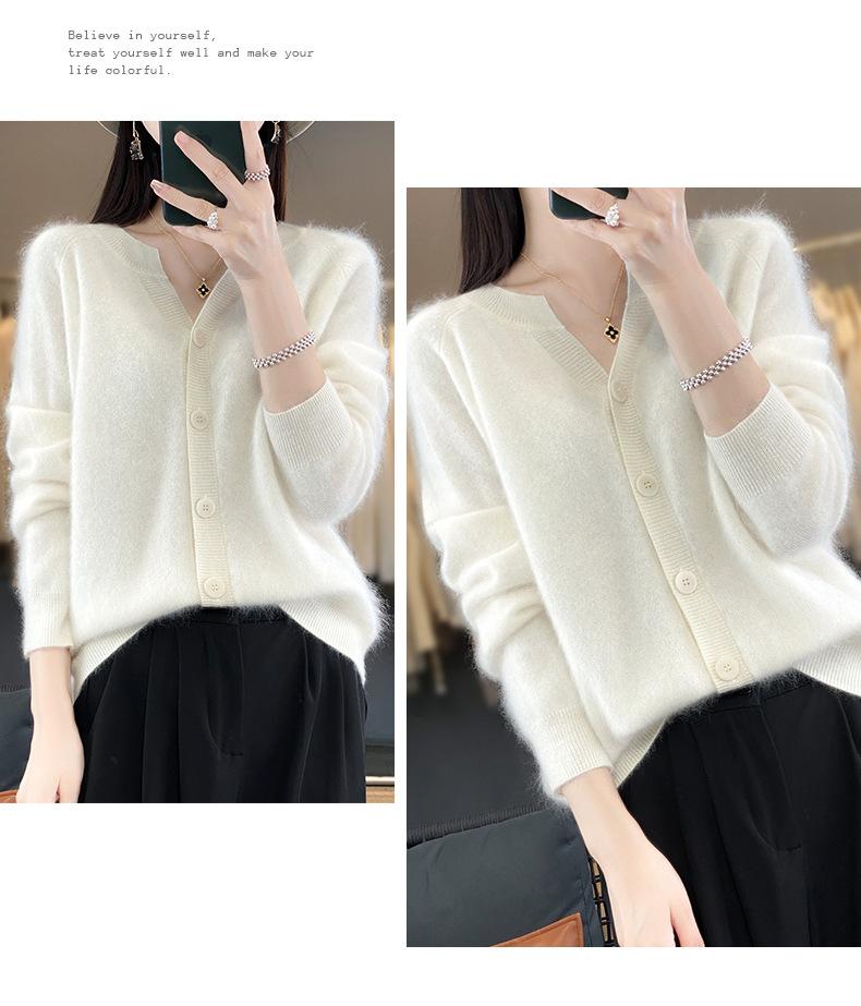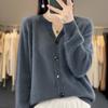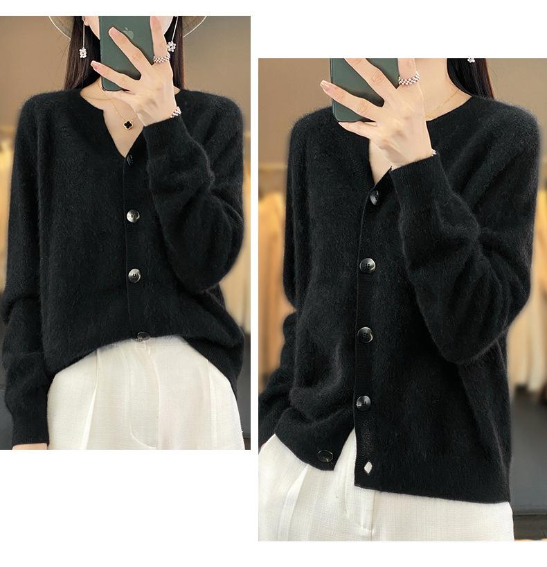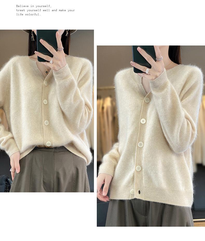 Cárdigan de punto de cachemira cepillada para otoño e invierno, abrigo holgado con cuello en V medio abierto para mujer, top de punto ajustado