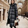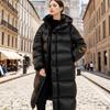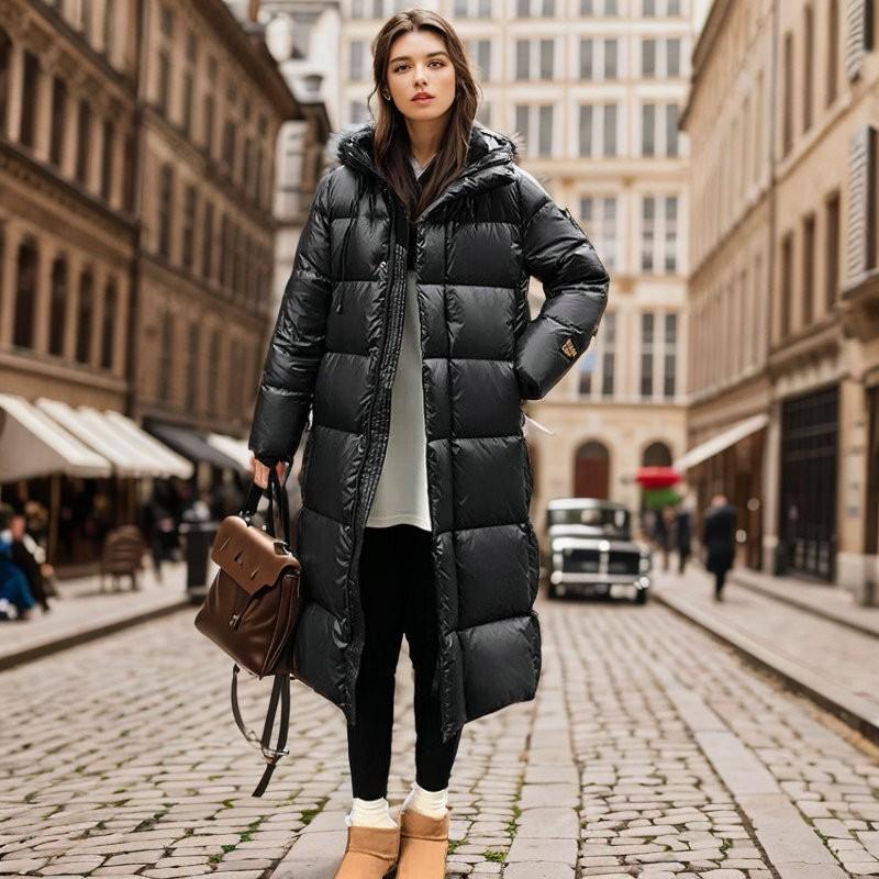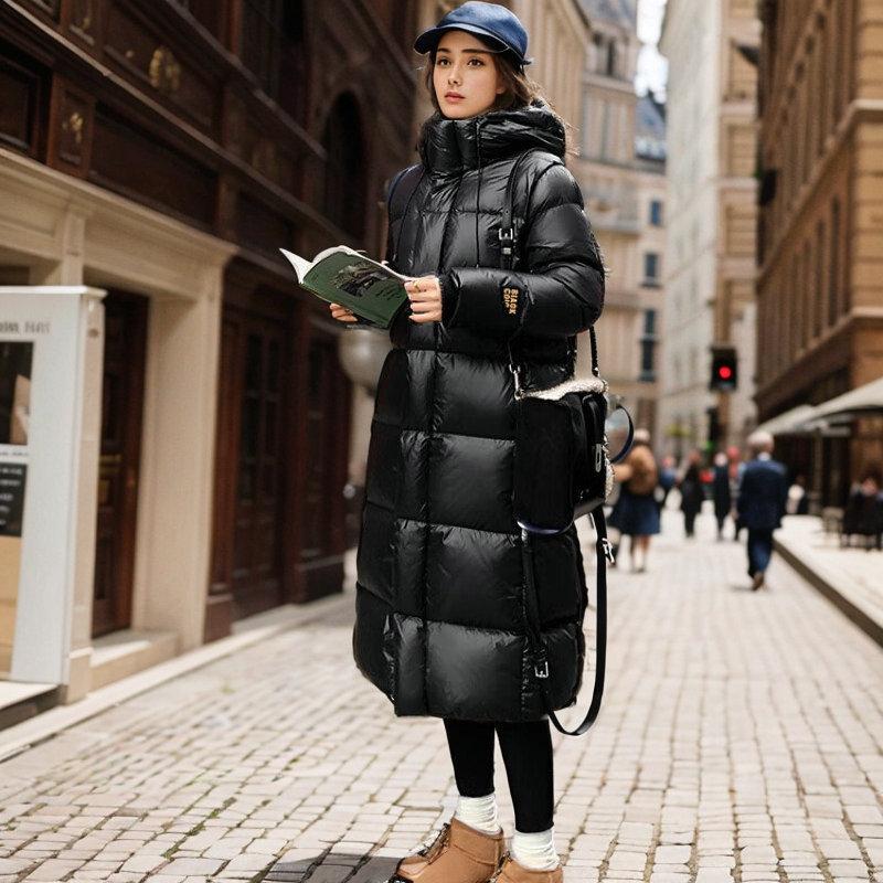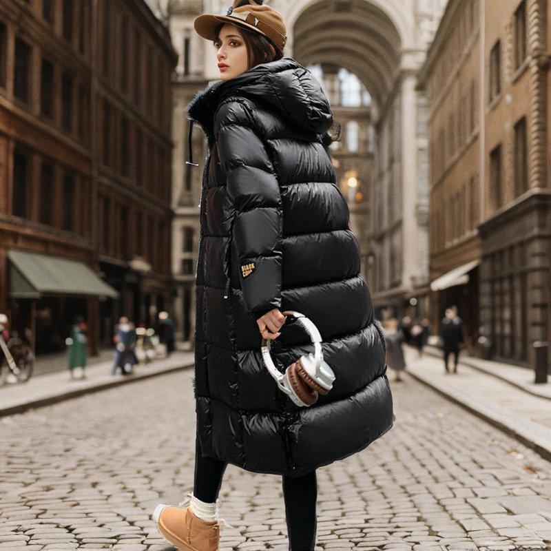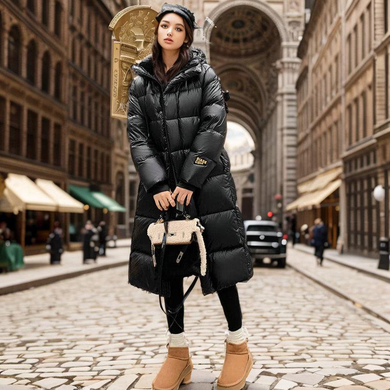 Chamarra de plumón Negro Dorado para Mujer de Alta Gama Invierno para Mujer Larga Plana Lago Chamarra de plumón con Capucha Plumón de Pato Invierno Ropa Exterior