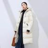 Chaqueta de plumón color crema de longitud media para mujer, chaqueta de invierno de alta gama para mujer, estilo coreano, plumón de pato blanco, fábrica de chaquetas de plumón Pinghuyenes120