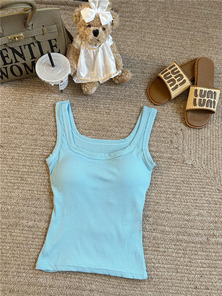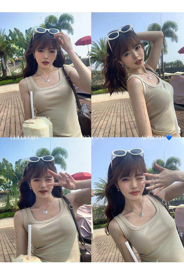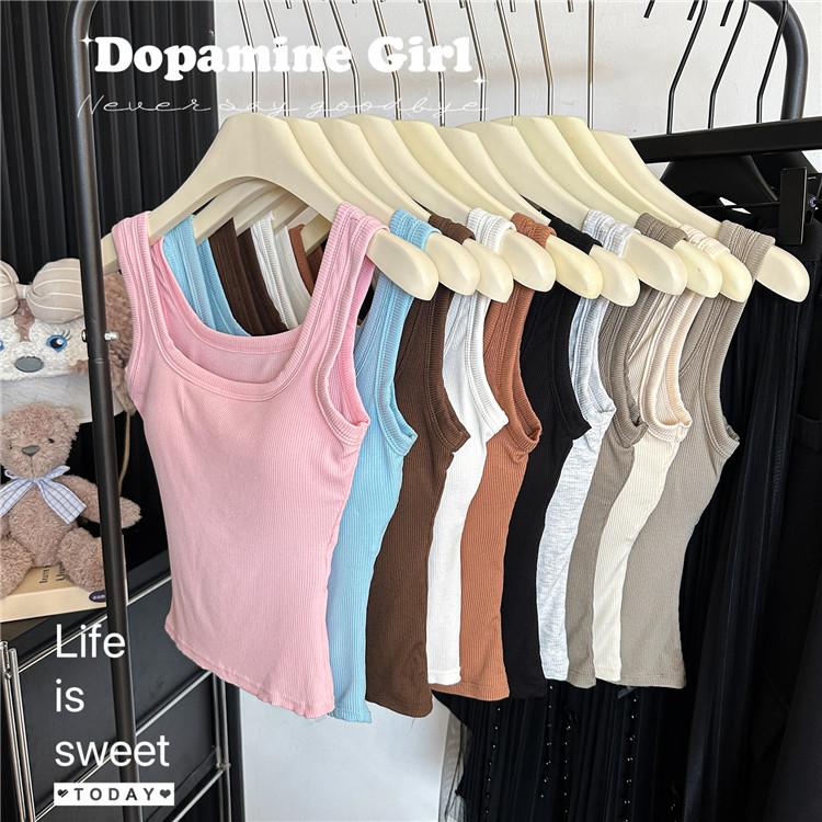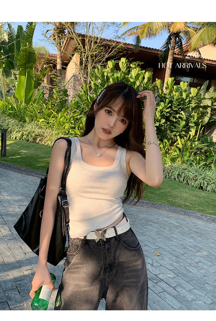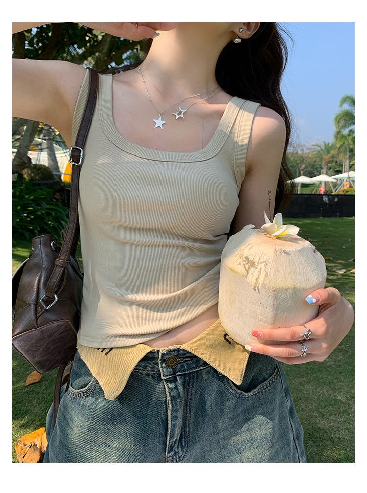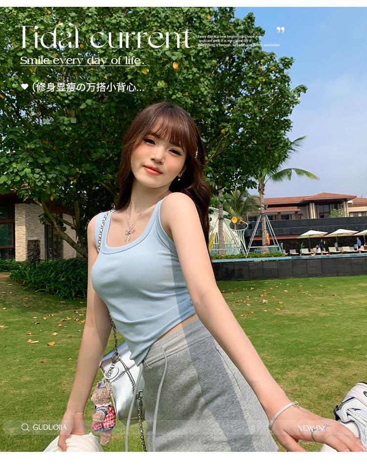 Camisola de cuello cuadrado estilo coreano, novedad de verano 2024, prenda exterior sencilla y combinable de estilo Spice Girl, top básico sin mangas