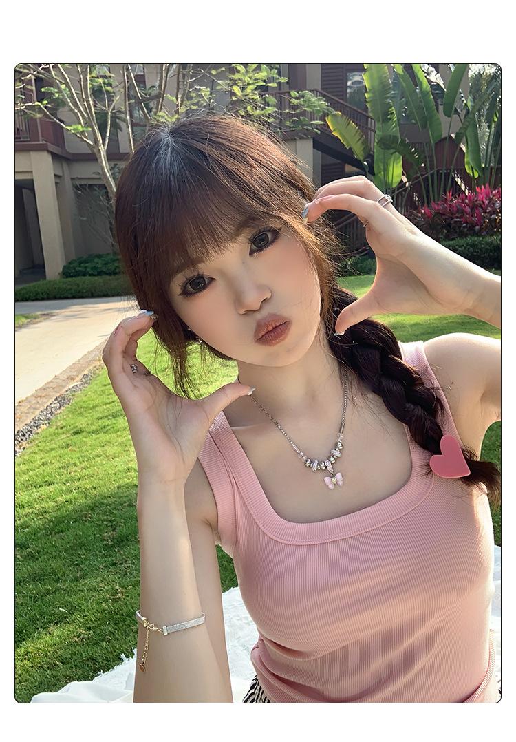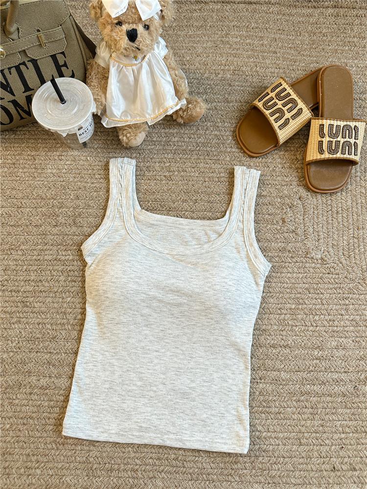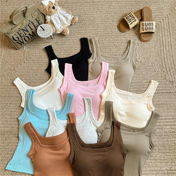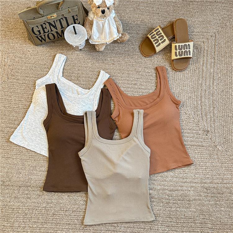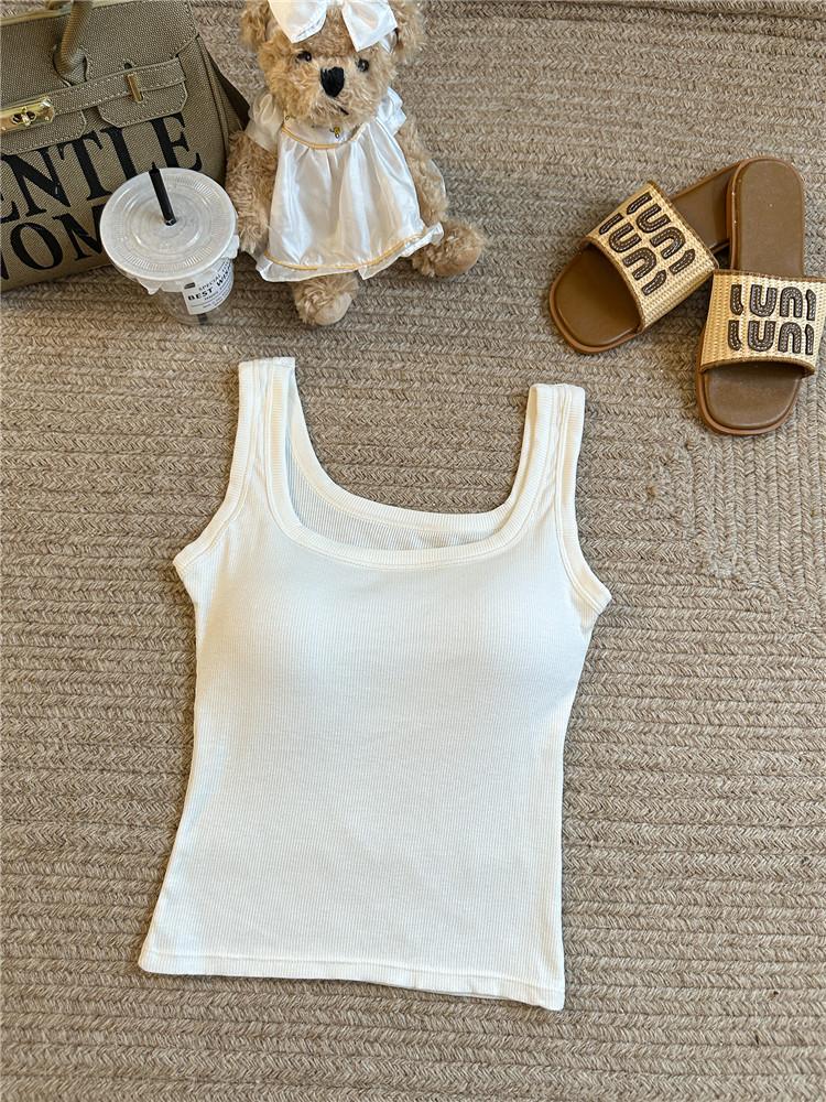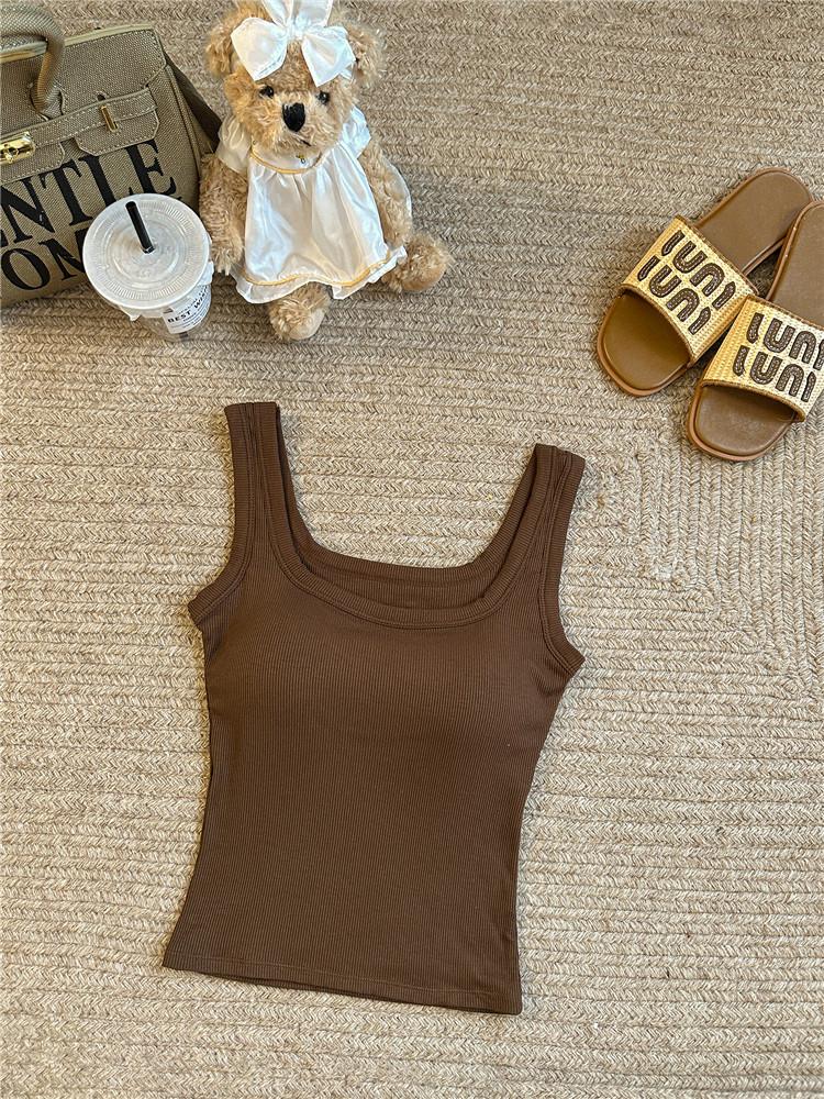 Camisola de cuello cuadrado estilo coreano, novedad de verano 2024, prenda exterior sencilla y combinable de estilo Spice Girl, top básico sin mangas