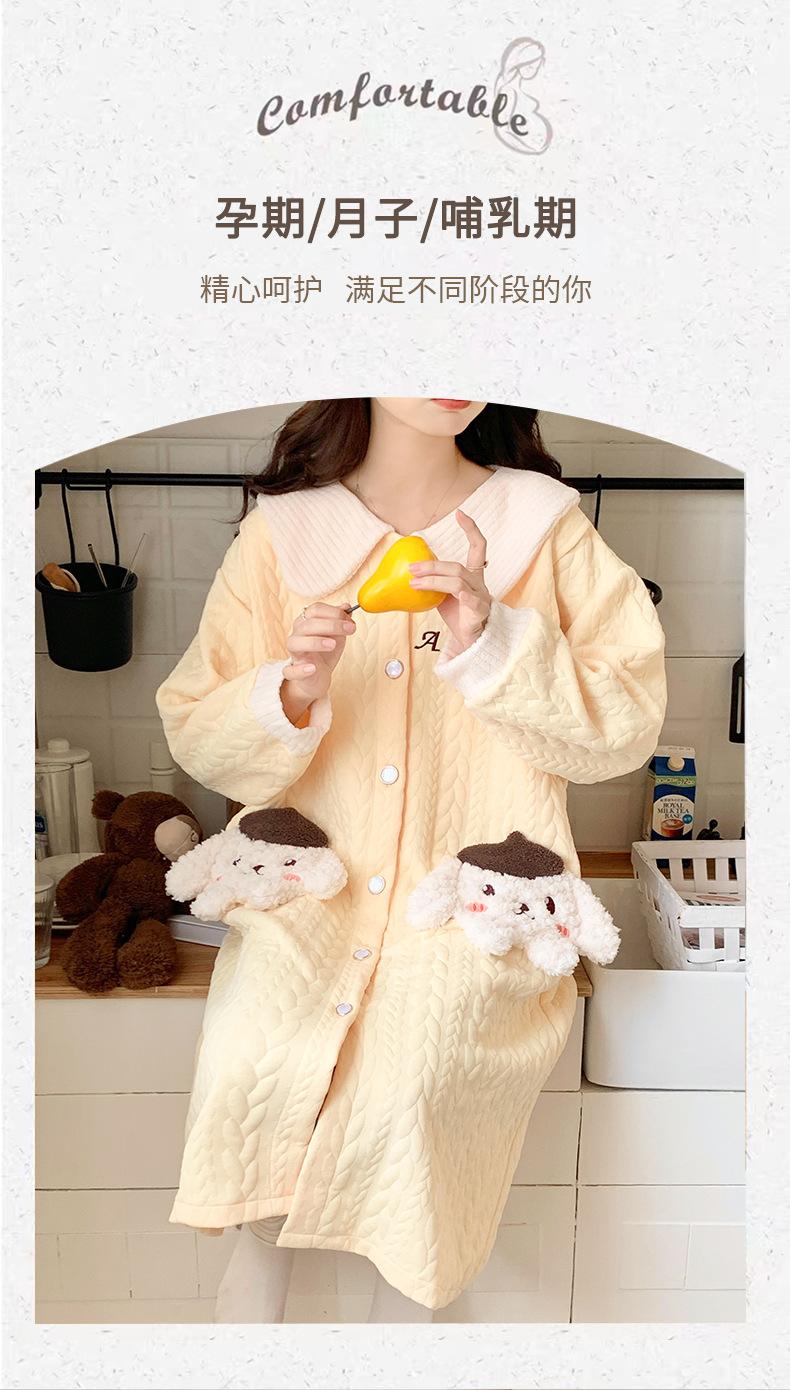 Falda de lactancia materna de otoño e invierno para embarazadas, ropa de luna tipo sándwich, pijamas gruesos para mujeres embarazadas posparto, falda larga de algodón de aire para el hogar