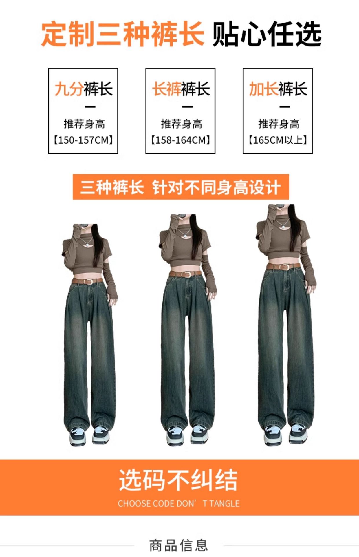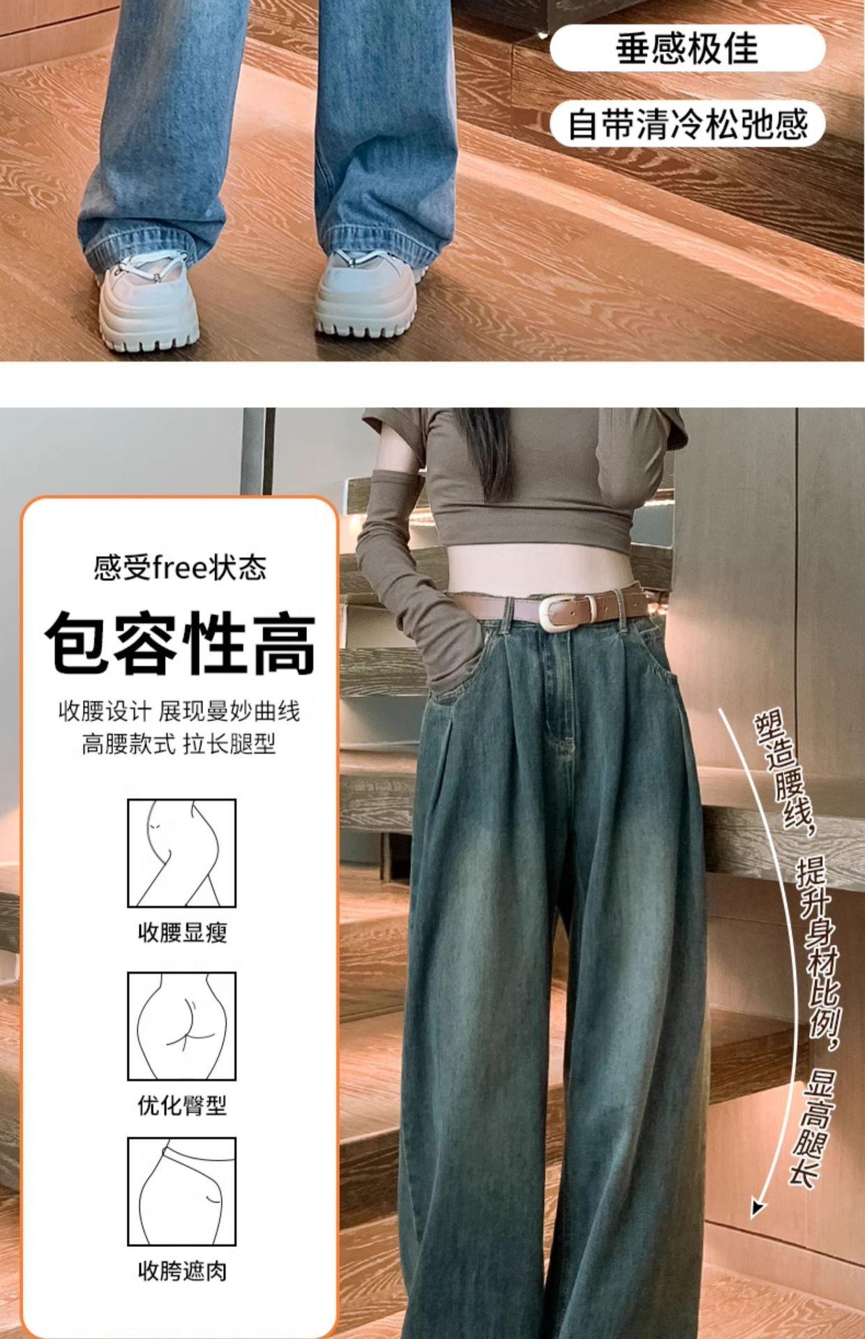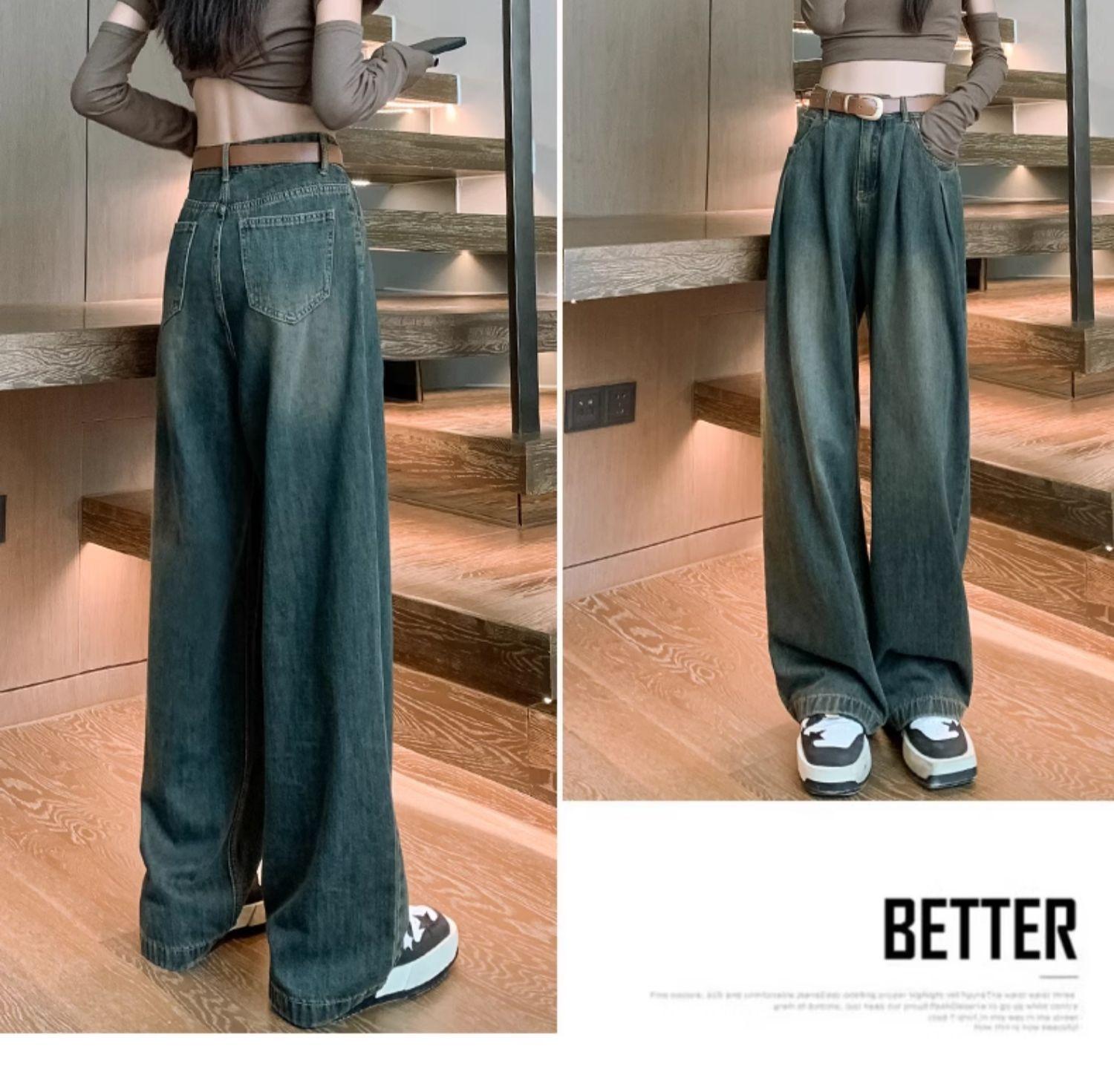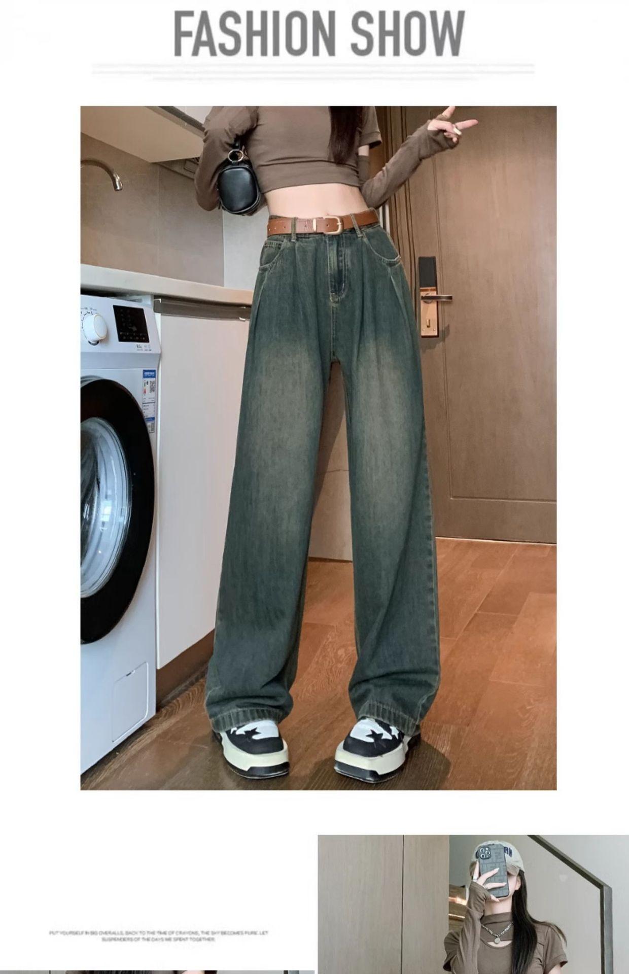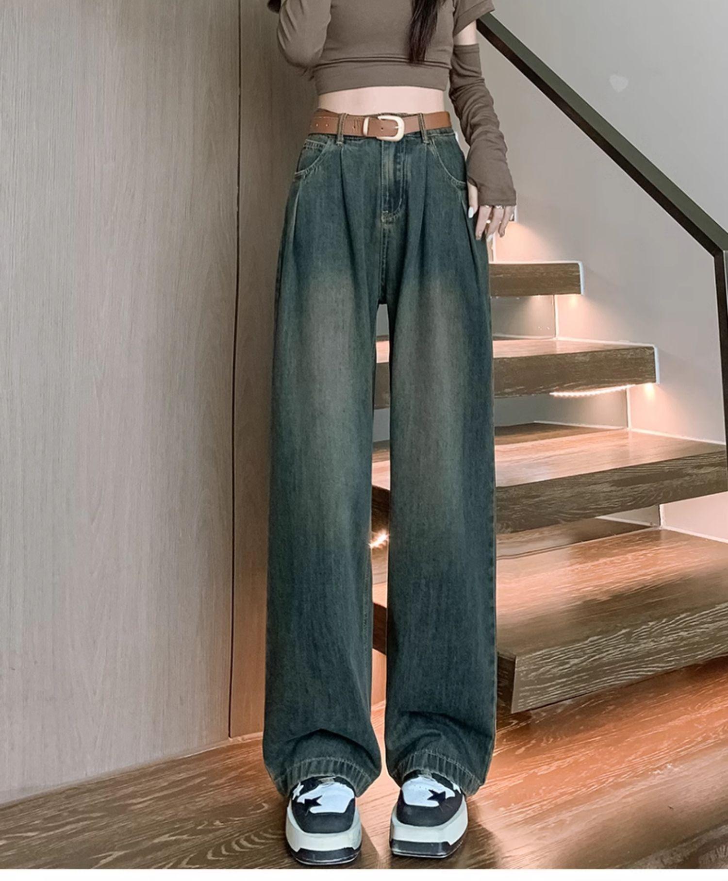 Vaqueros de cintura alta y pierna ancha para mujer, primavera y otoño 2024, holgados, adelgazantes, estilo americano, retro, rectos.