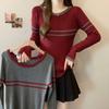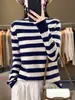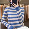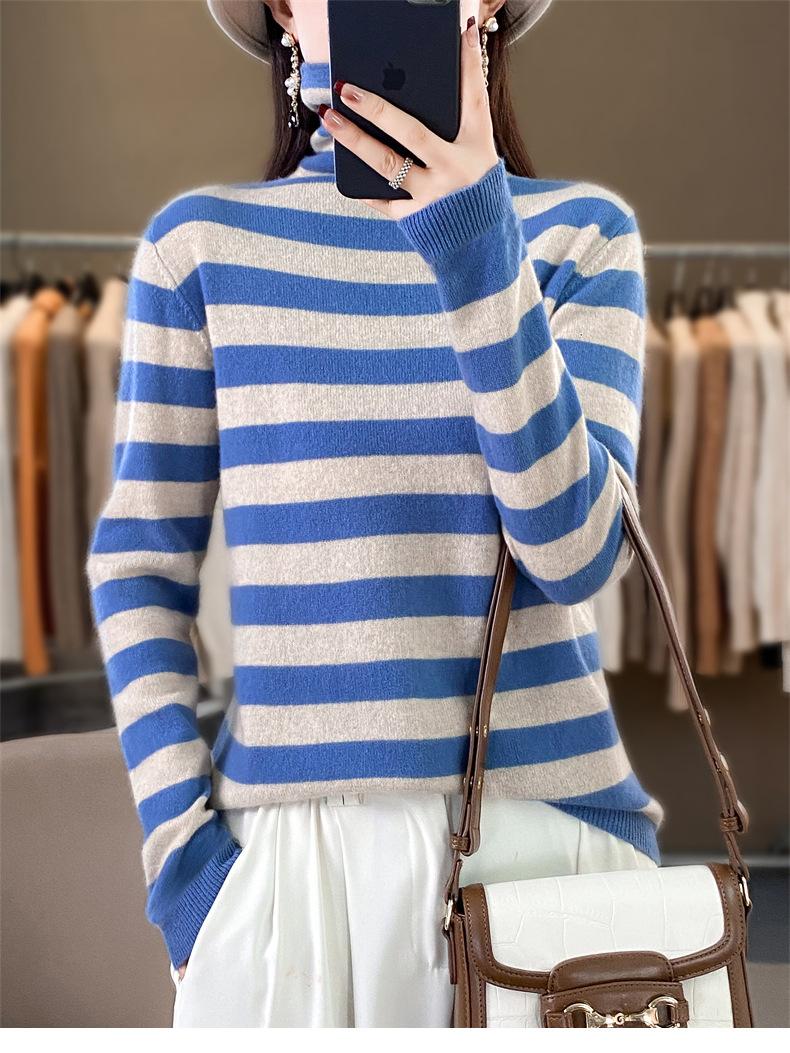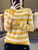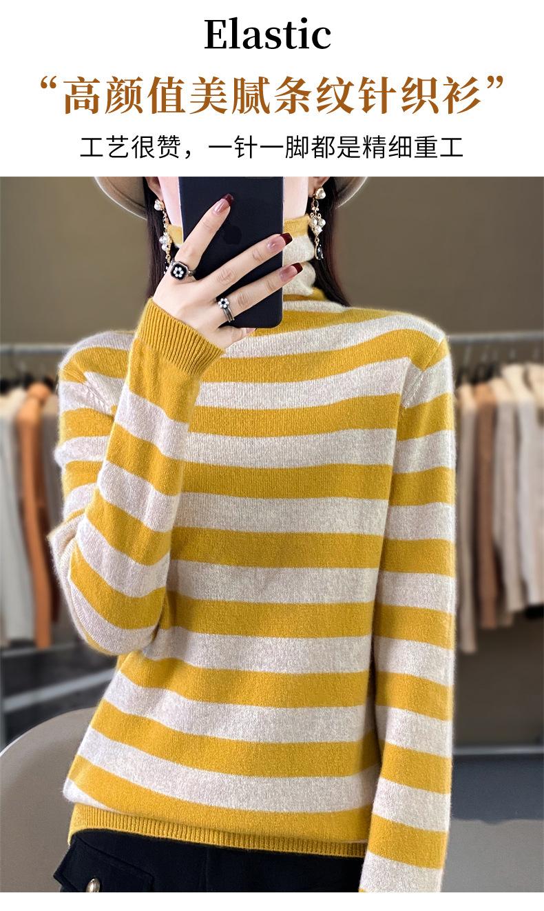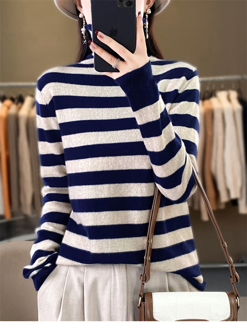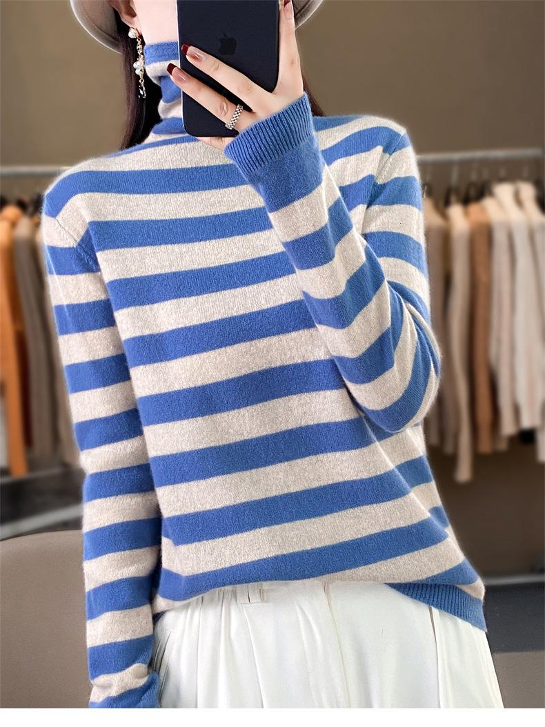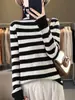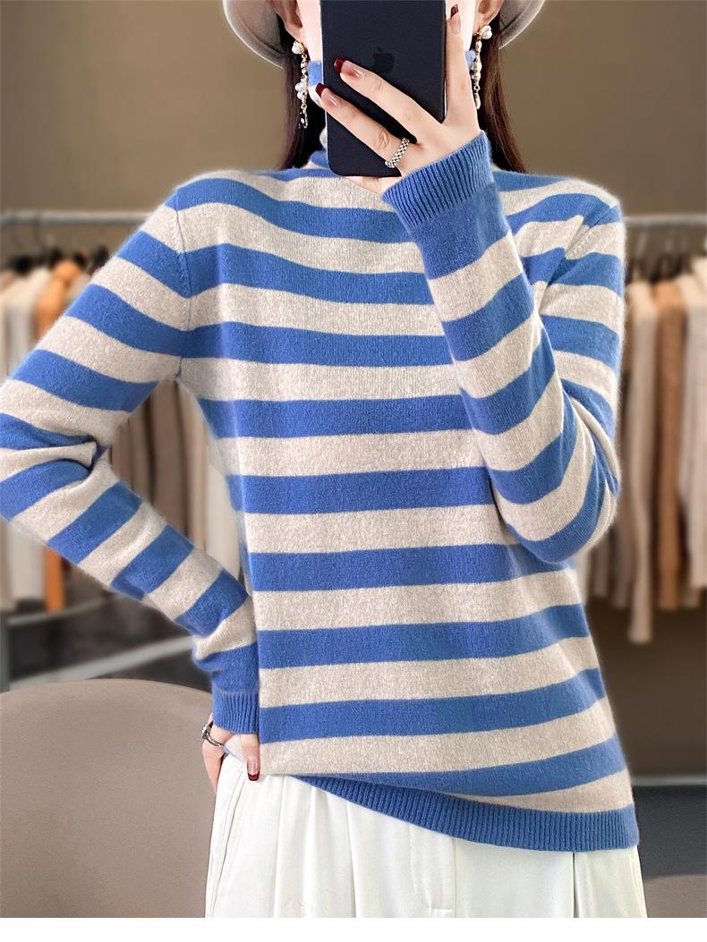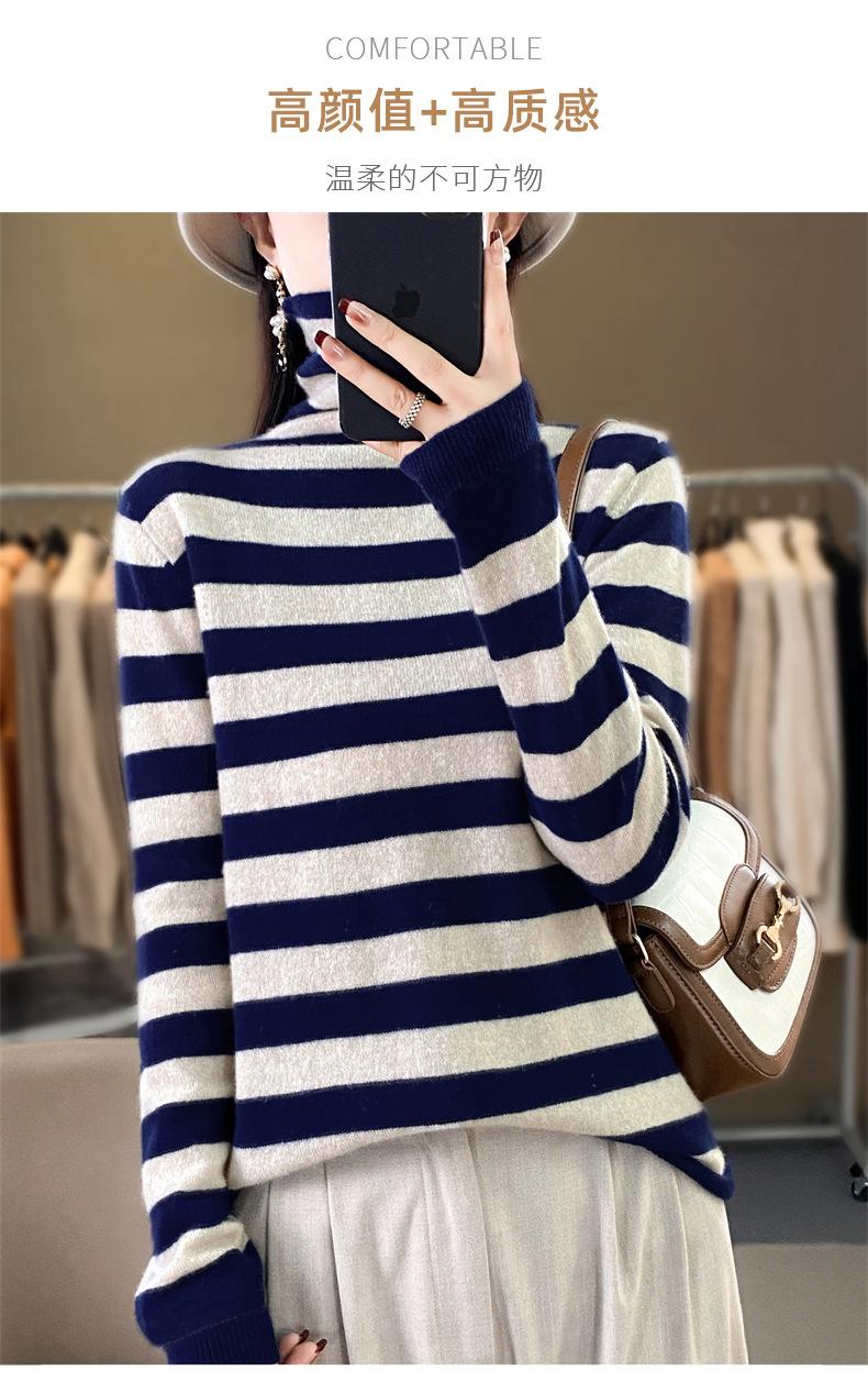 Otoño e Invierno Nuevo Suéter de Base de Cuello Alto de Pila a Rayas Negro y Blanco de Manga Larga para Mujer Suéter de Cuello Alto Holgado Estilo Occidental para Mujer