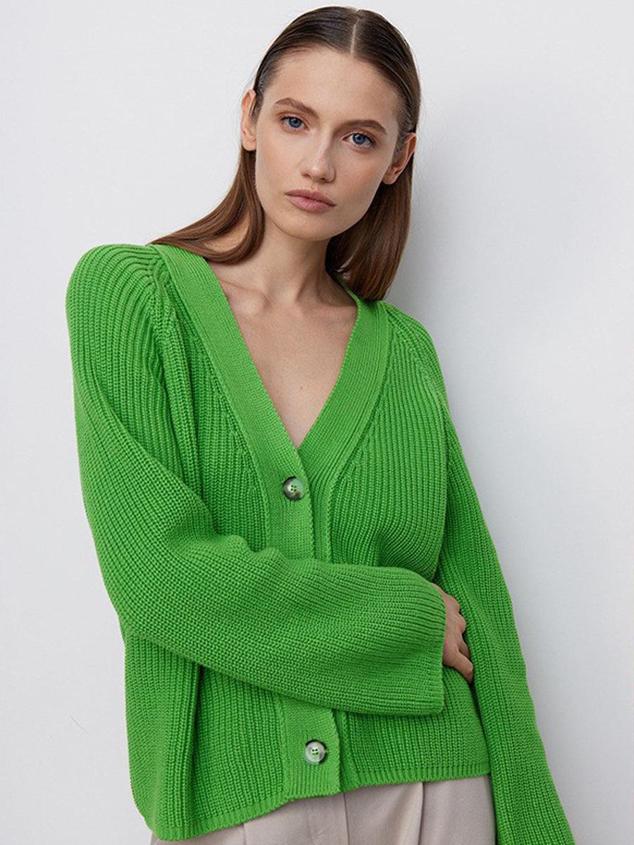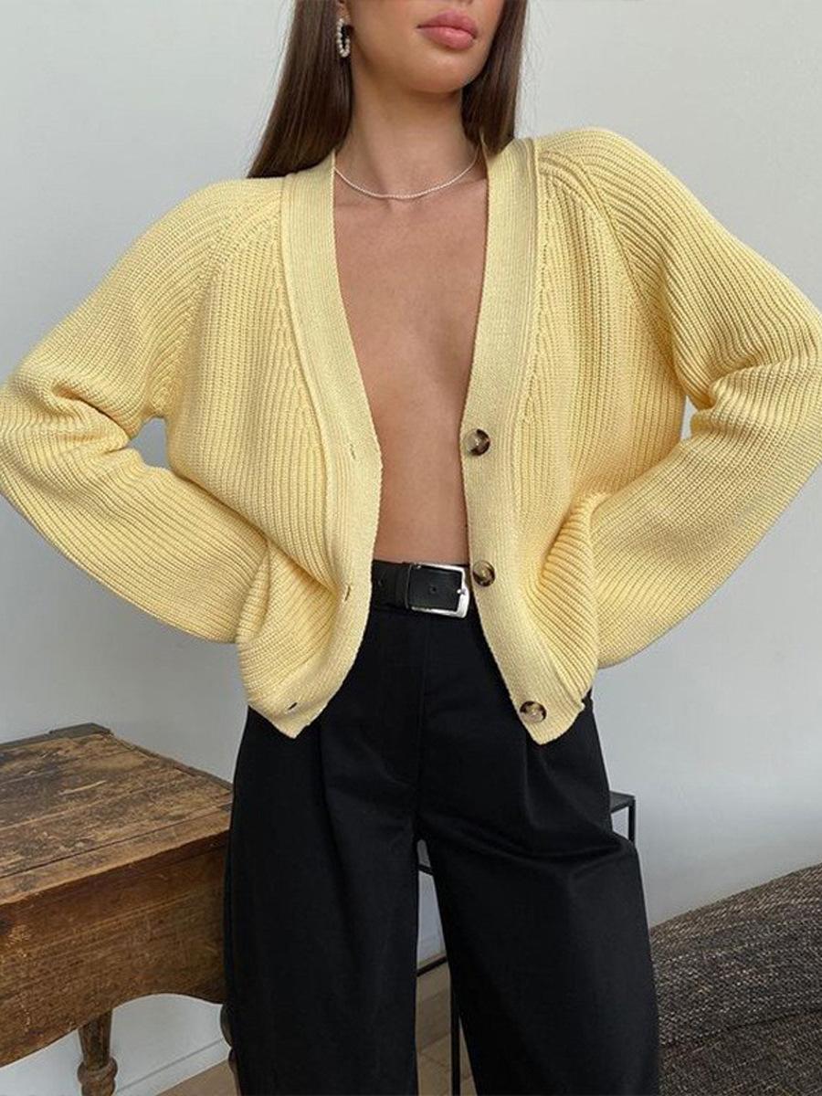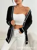 Cárdigan Suéter de Punto con Cuello en V Transfronterizo Europeo y Americano Otoño e Invierno para Mujer Elegante Francés Botón Suelto Corto Abrigo Suéter Estilo Europeo y Americano