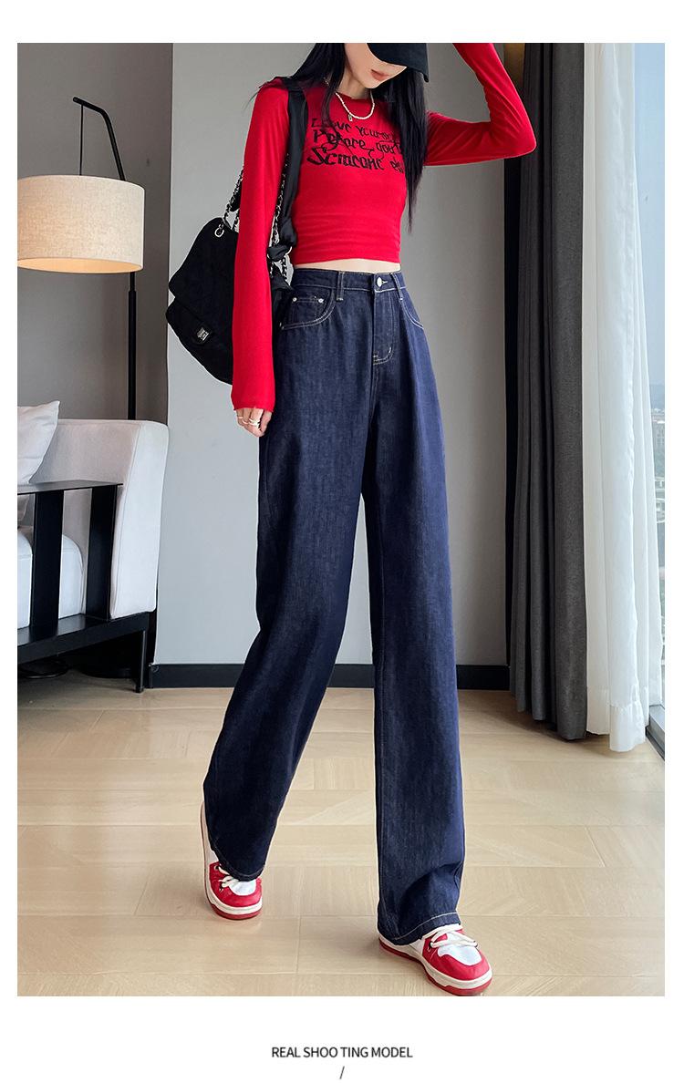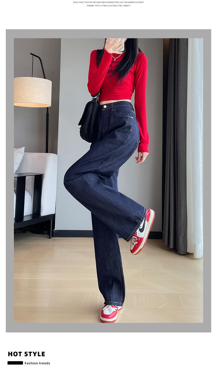 Venta al por mayor de vaqueros rectos de otoño 2024, nueva moda, cintura alta, ajustados, retro, azules, de pierna ancha, A1460