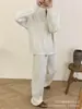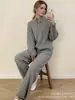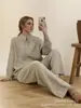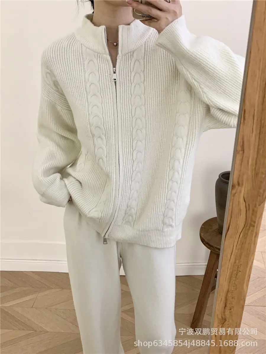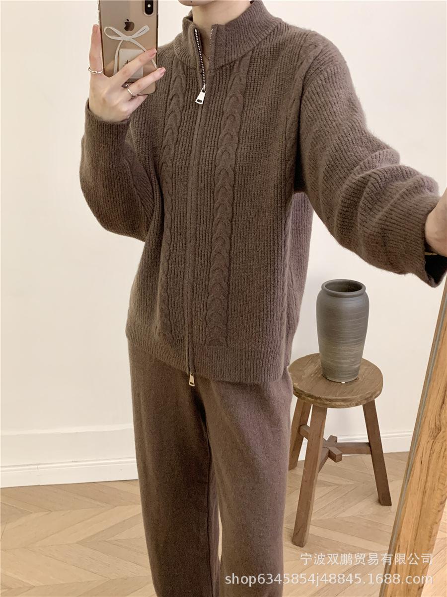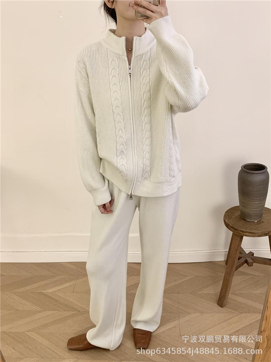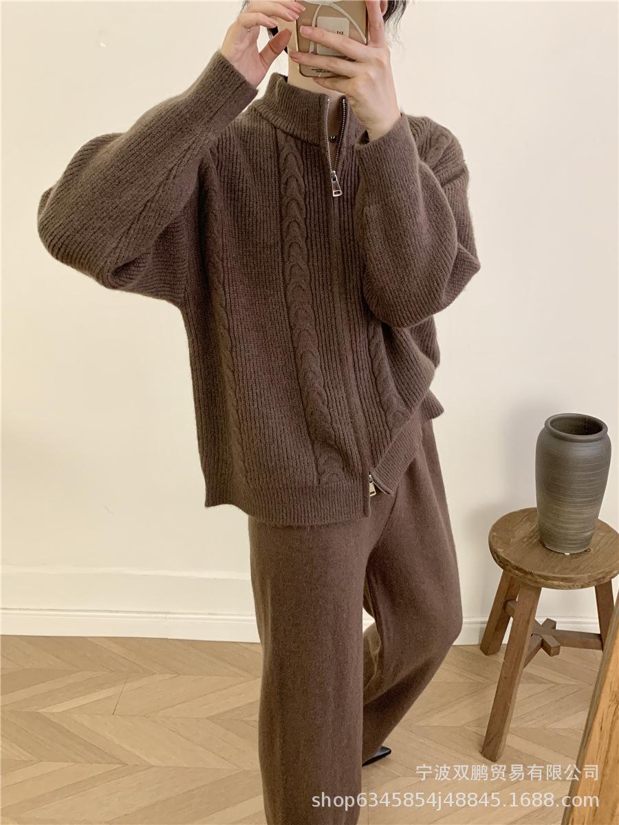Traje de punto suelto de estilo europeo y americano transfronterizo de gran venta para mujer 2025 Otoño e Invierno Nuevo Suéter con cremallera Cárdigan + Pantalones de pierna ancha