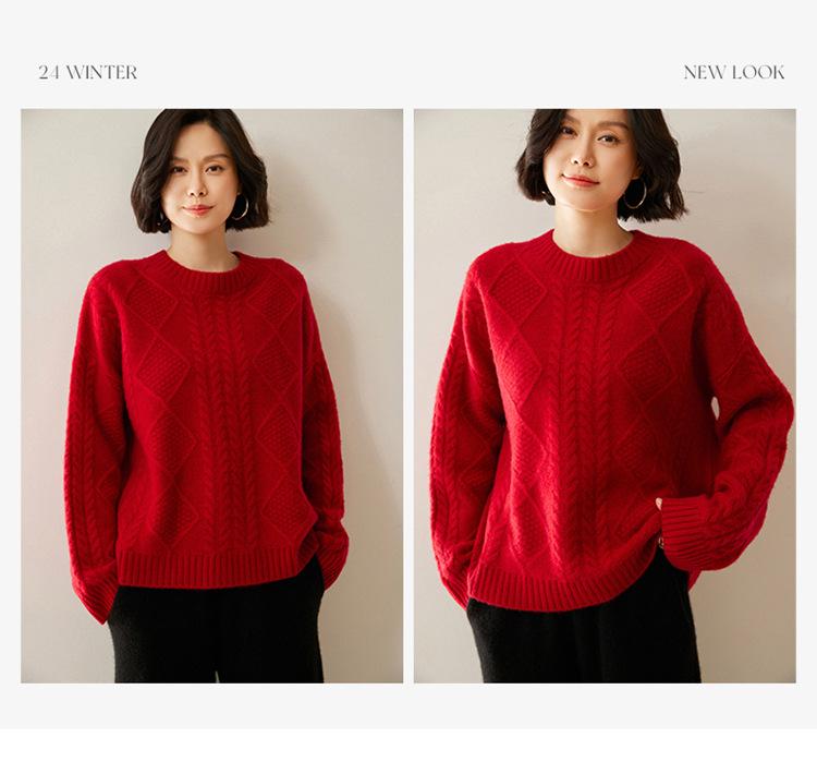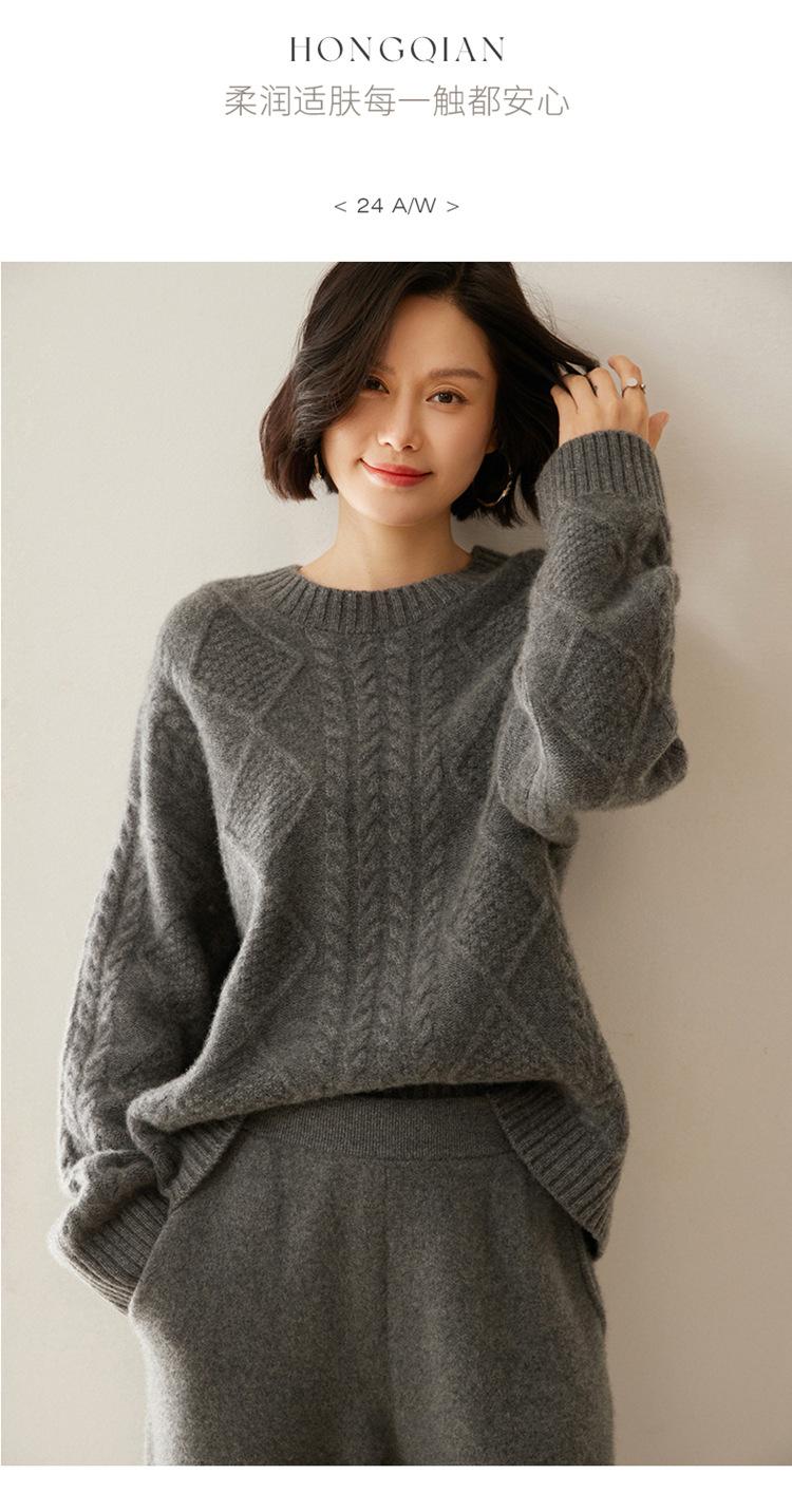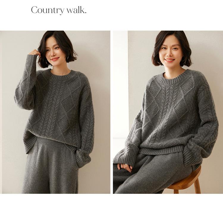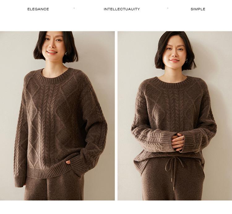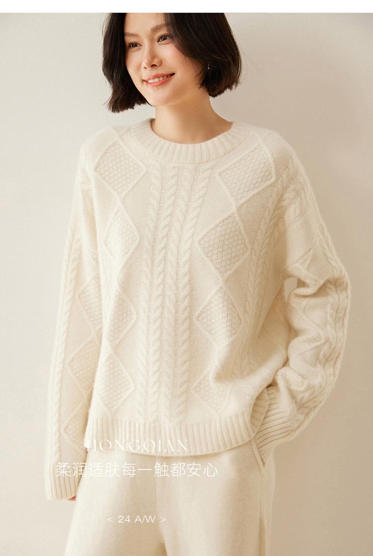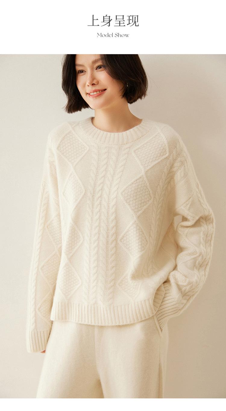 Suéter de cachemira para mujer, 100% cachemira pura, cuello redondo, grueso, para otoño e invierno, camisa de punto suelta, abrigo para mujer