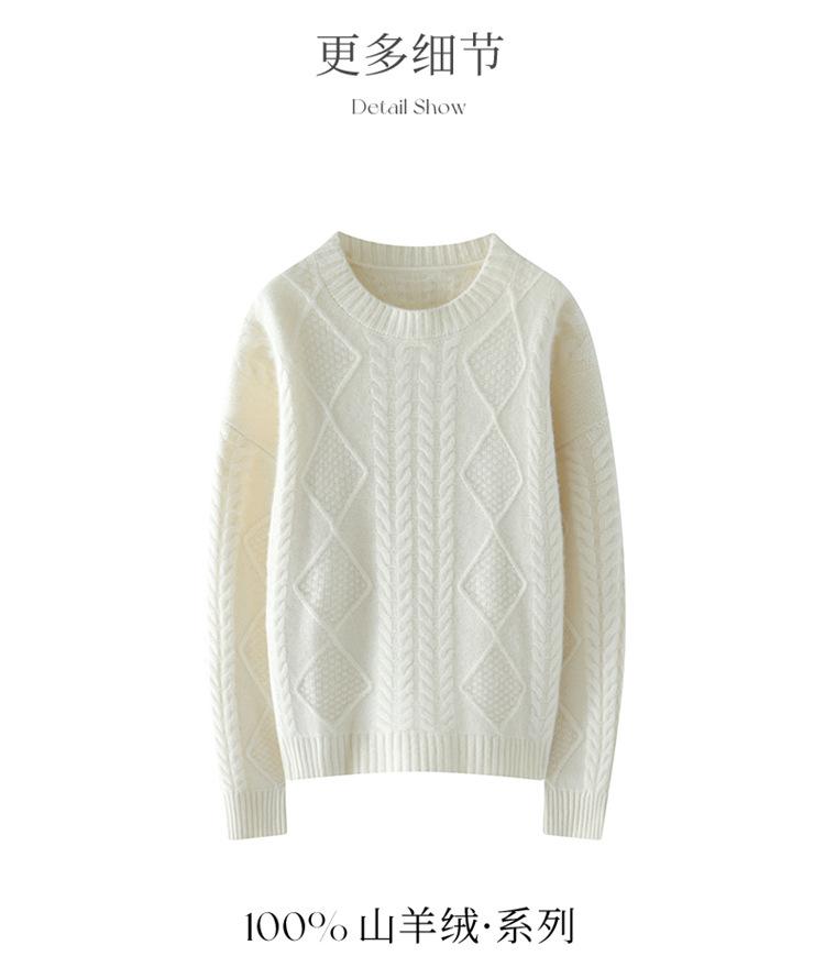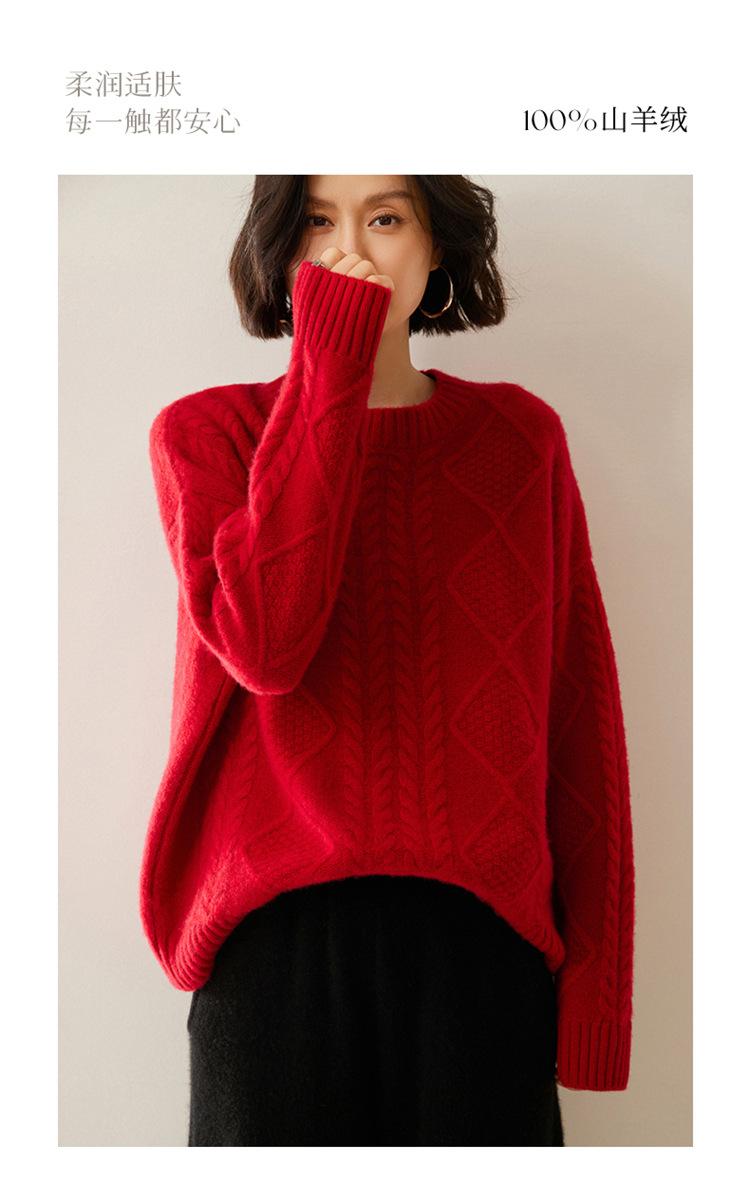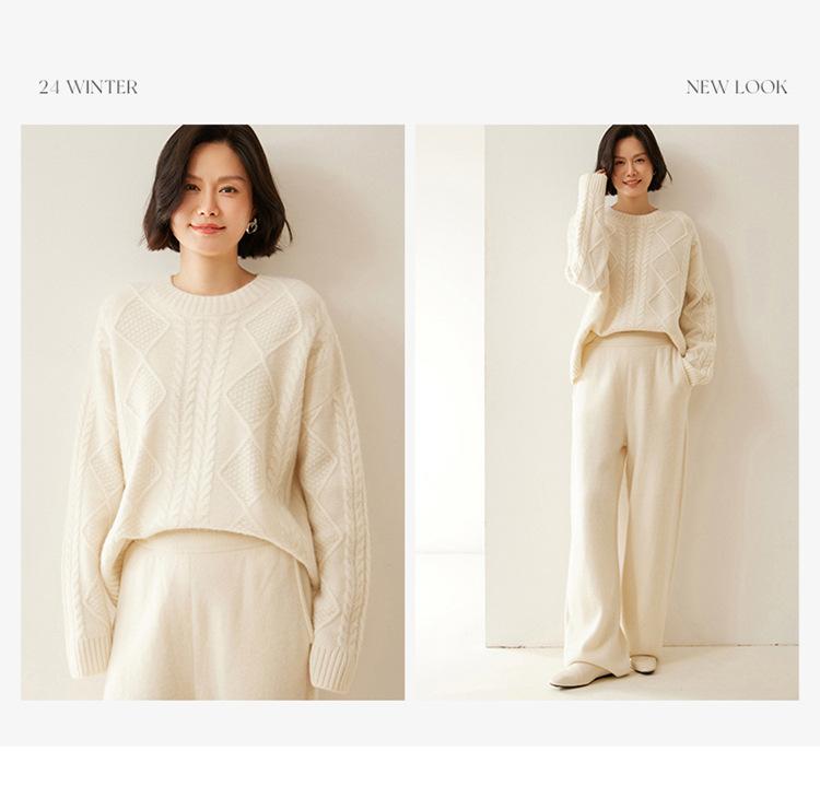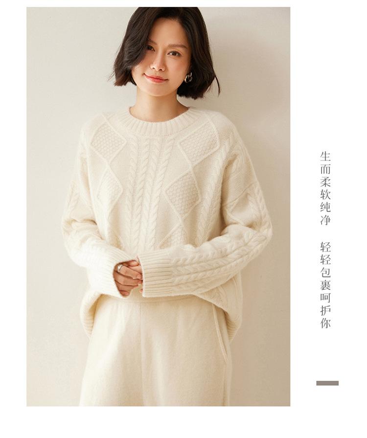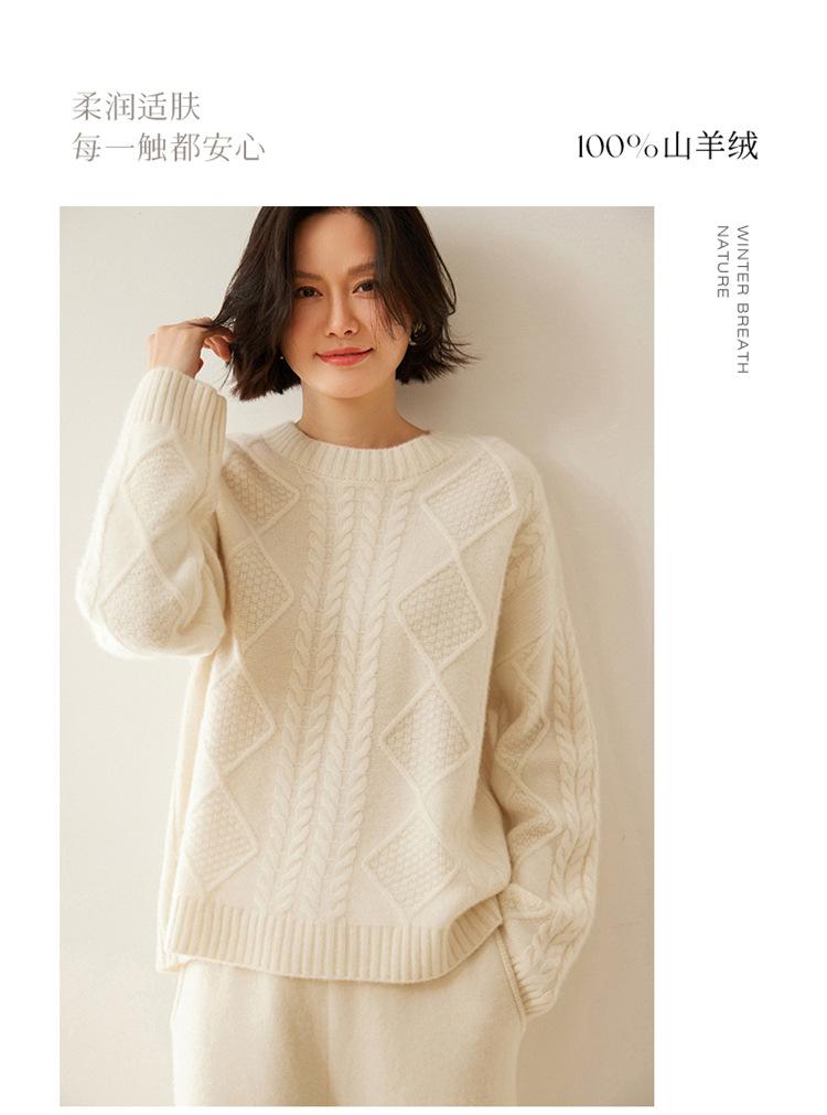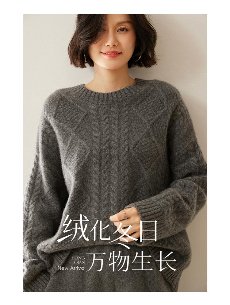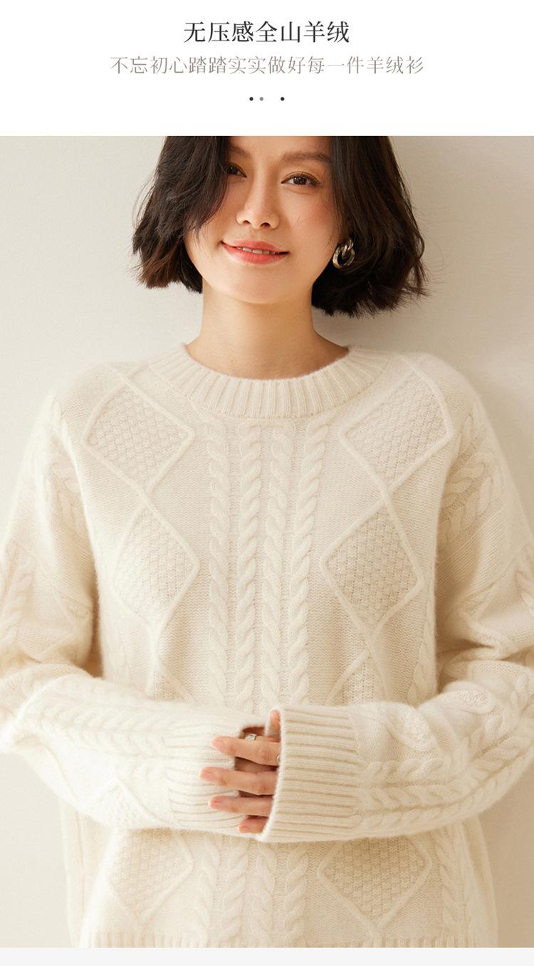 Suéter de cachemira para mujer, 100% cachemira pura, cuello redondo, grueso, para otoño e invierno, camisa de punto suelta, abrigo para mujer