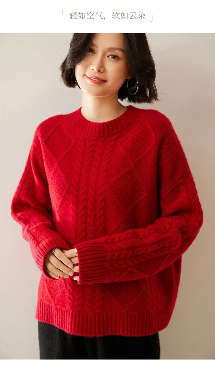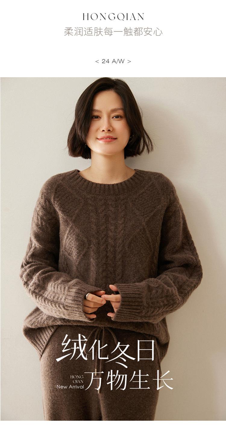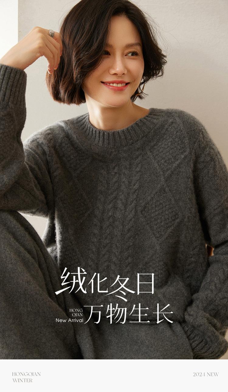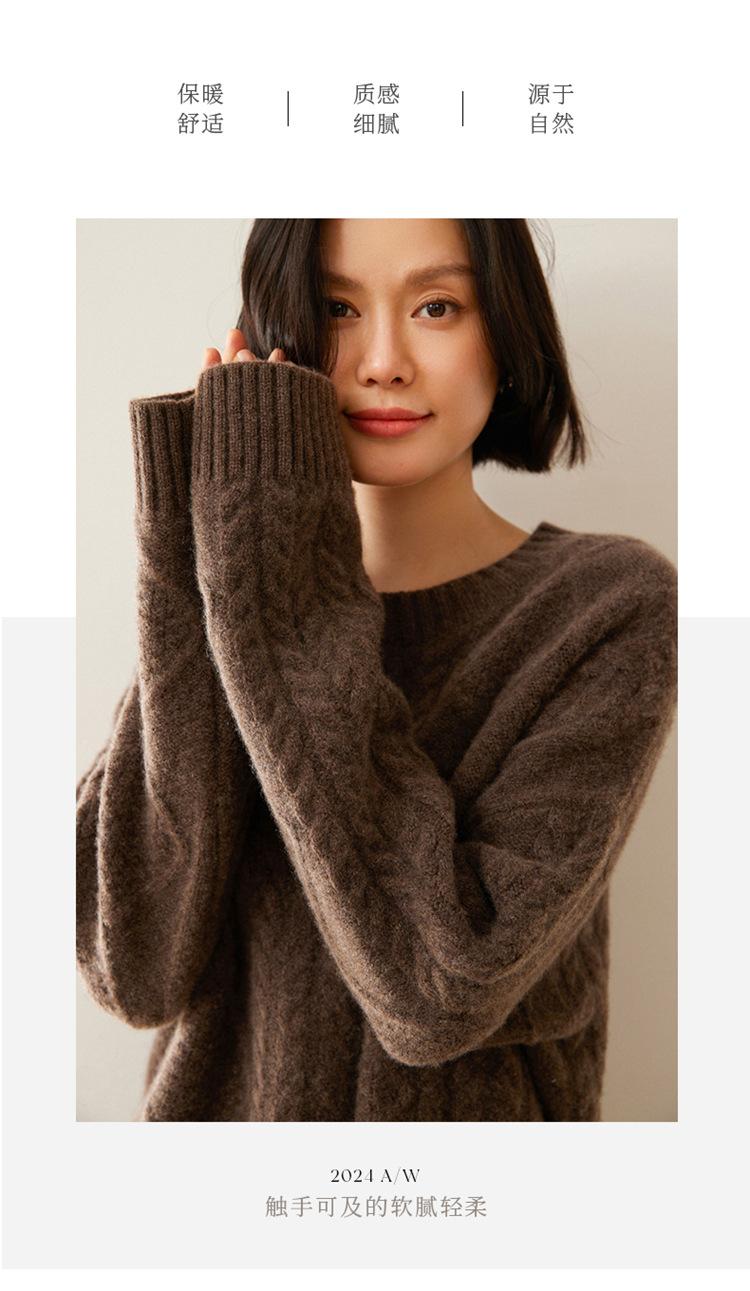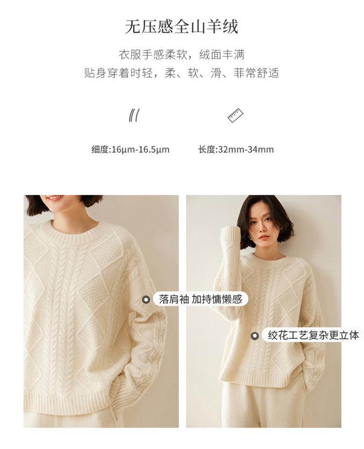 Suéter de cachemira para mujer, 100% cachemira pura, cuello redondo, grueso, para otoño e invierno, camisa de punto suelta, abrigo para mujer