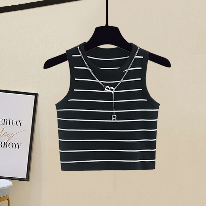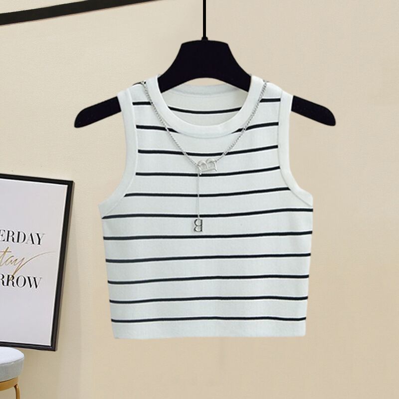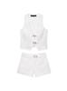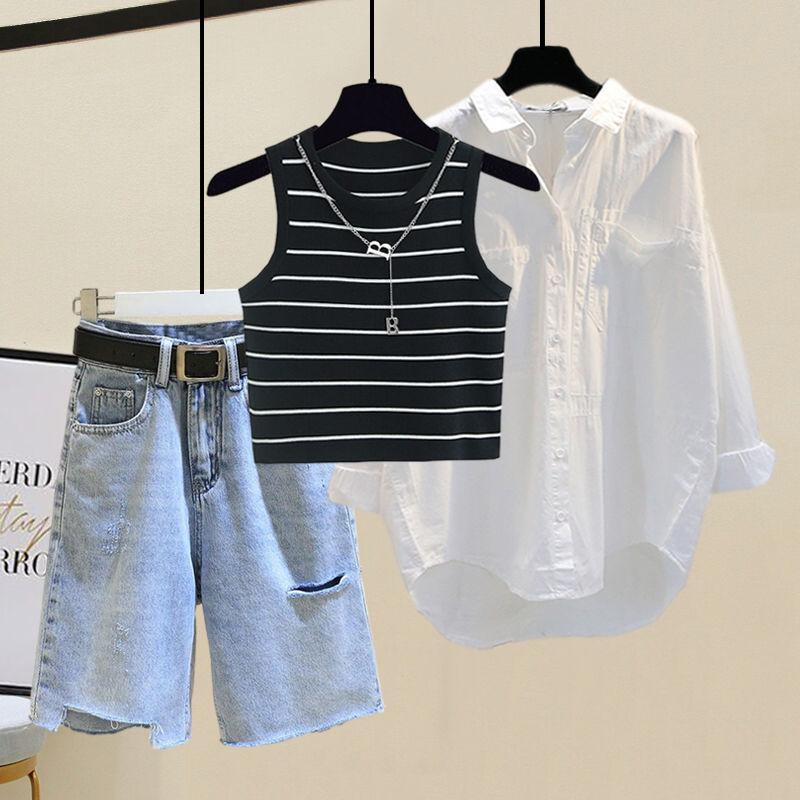 White shirt white striped vest Denim shorts three-piece set, White shirt black striped vest Denim shorts three...