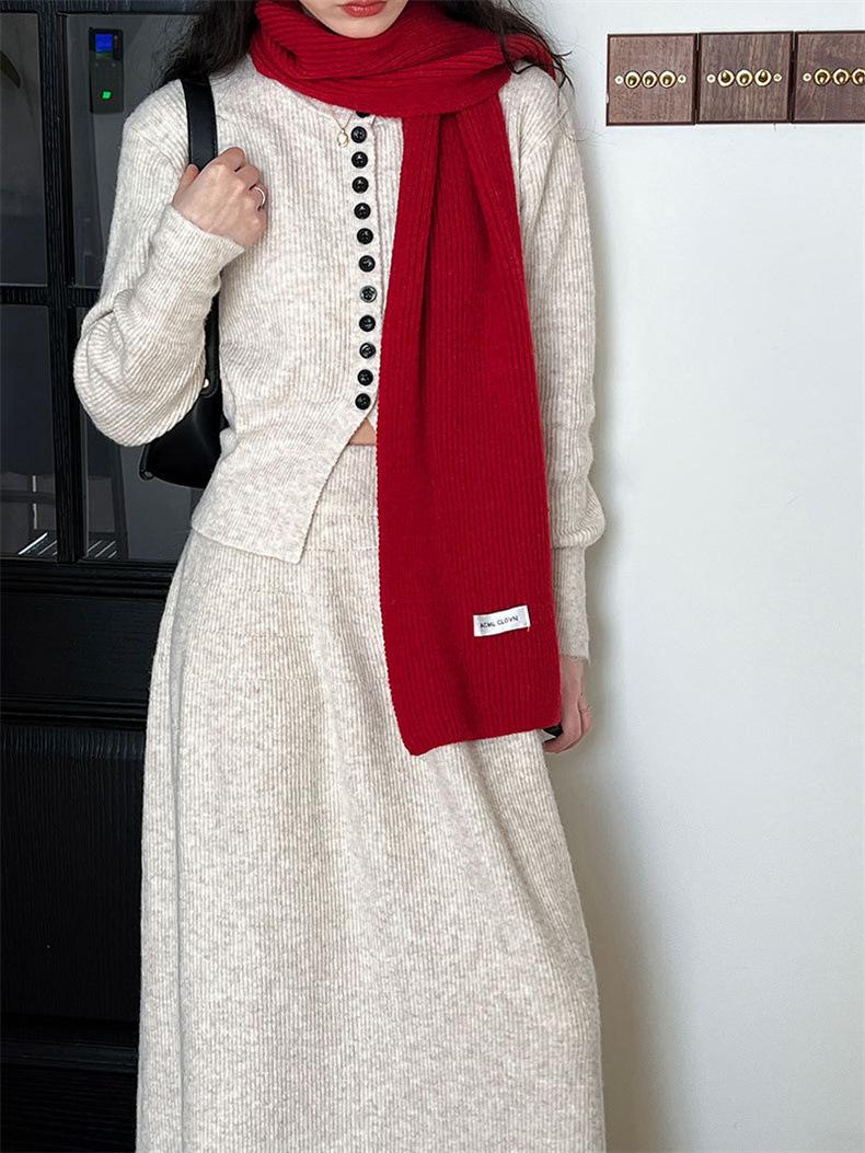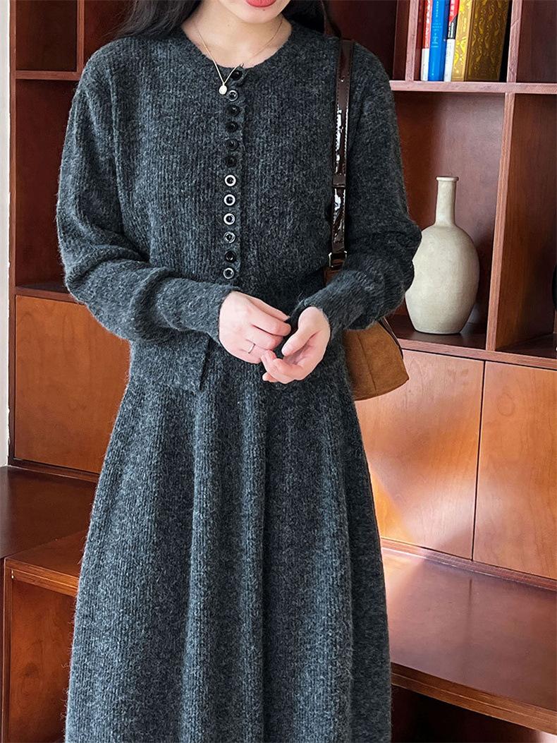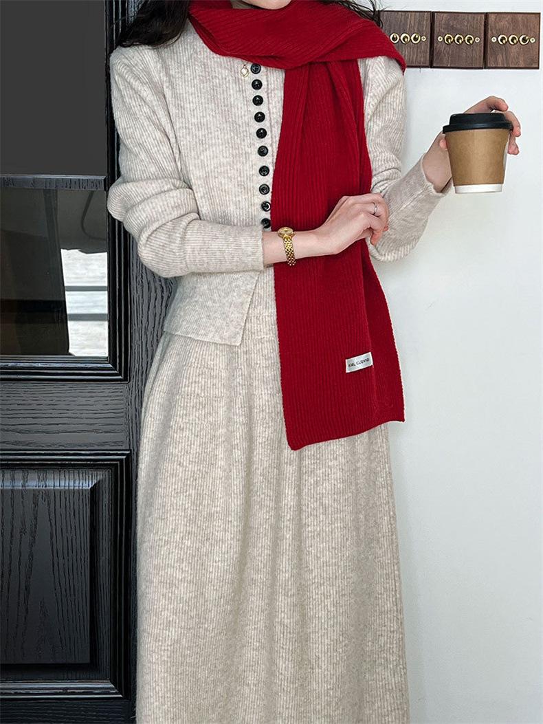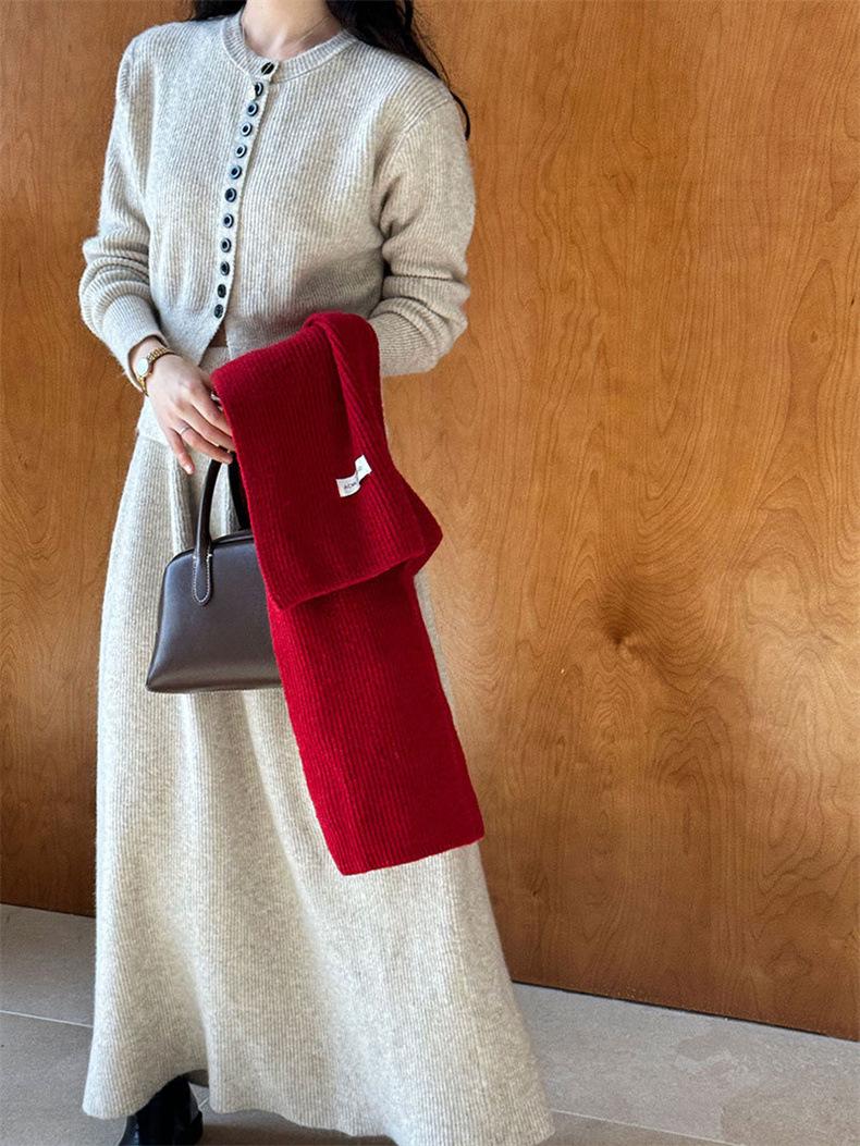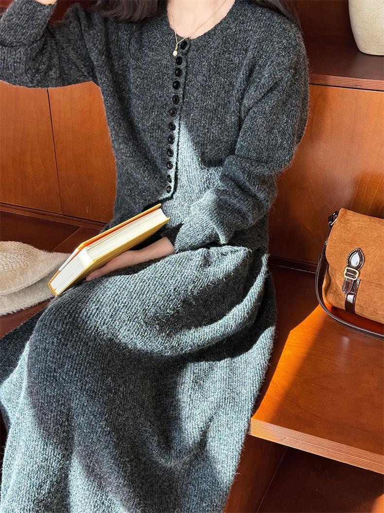 Otoño e invierno nuevo estilo suave traje de punto casual suéter de mujer cárdigan falda moda suave ceroso antiedad conjunto de dos piezas