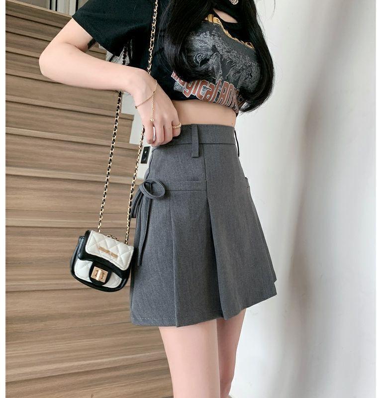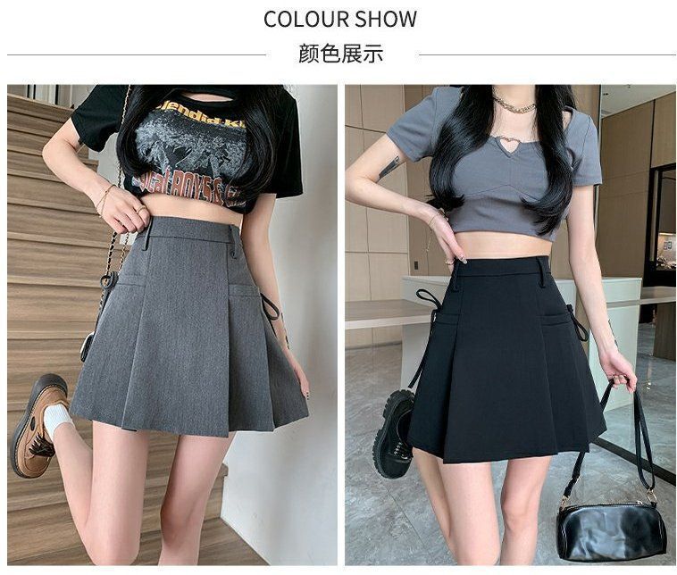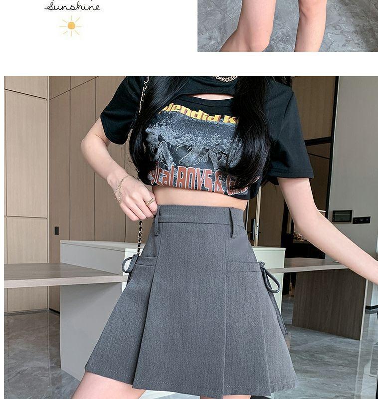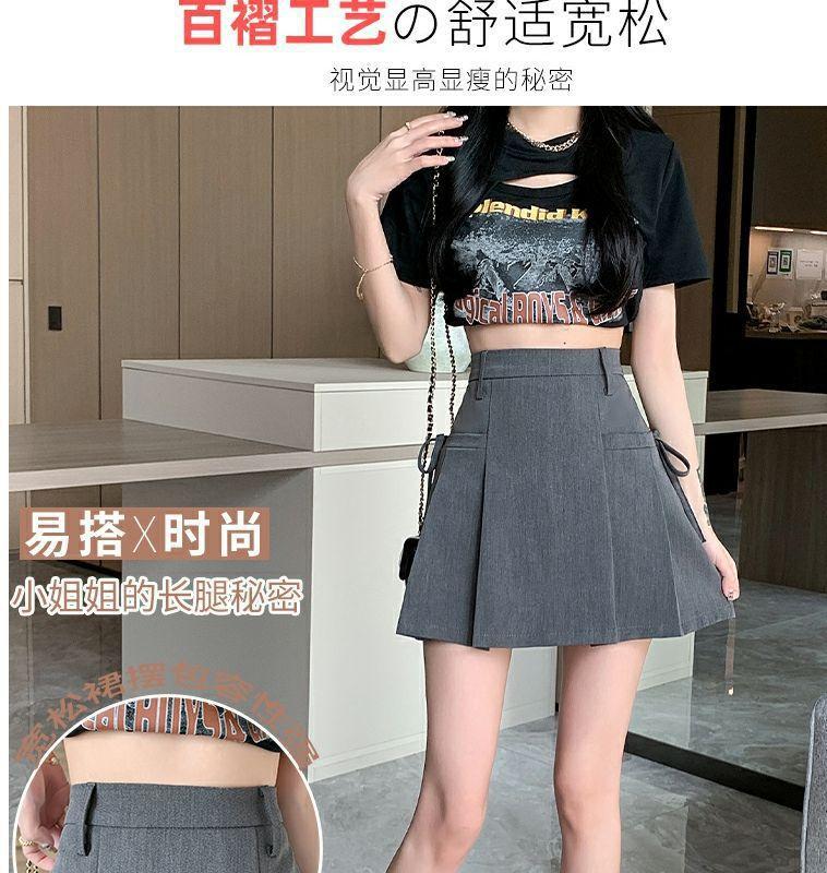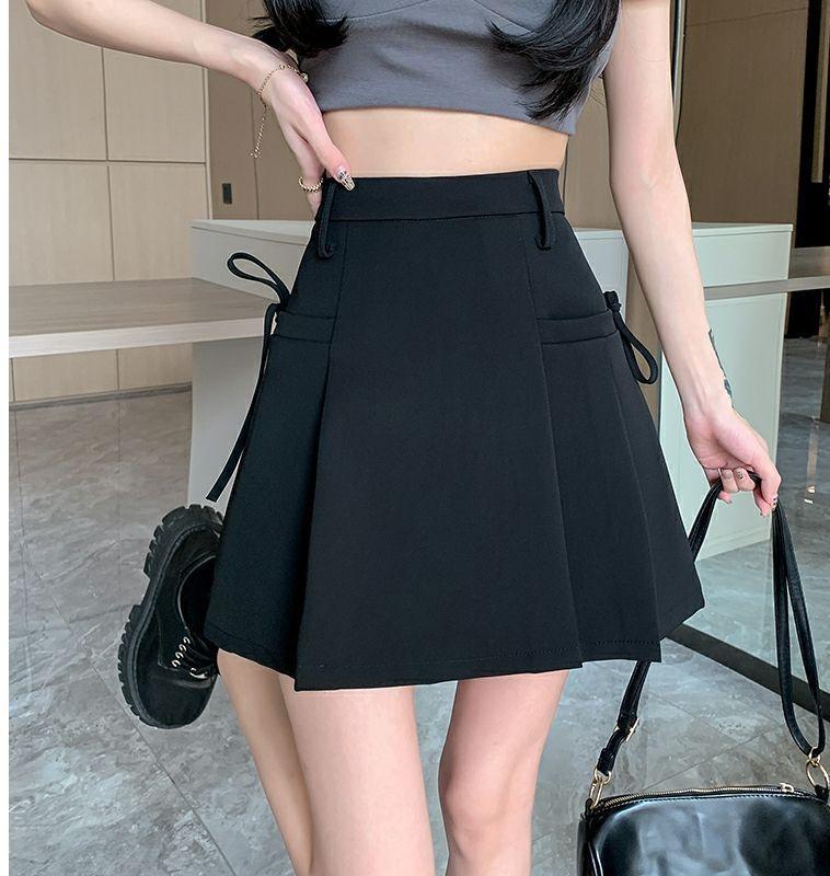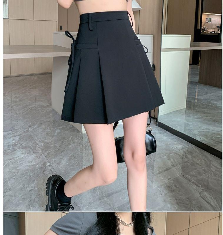 Falda plisada con cordones de diseño Verano Nuevo Estilo coreano Moda Falda corta de línea A de cintura alta Falda antiexposición