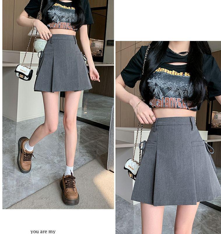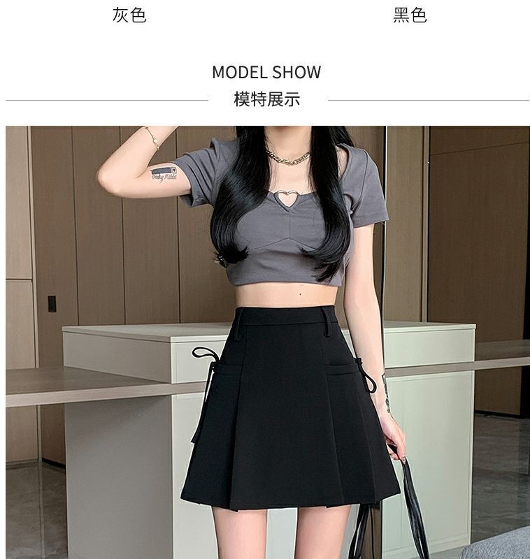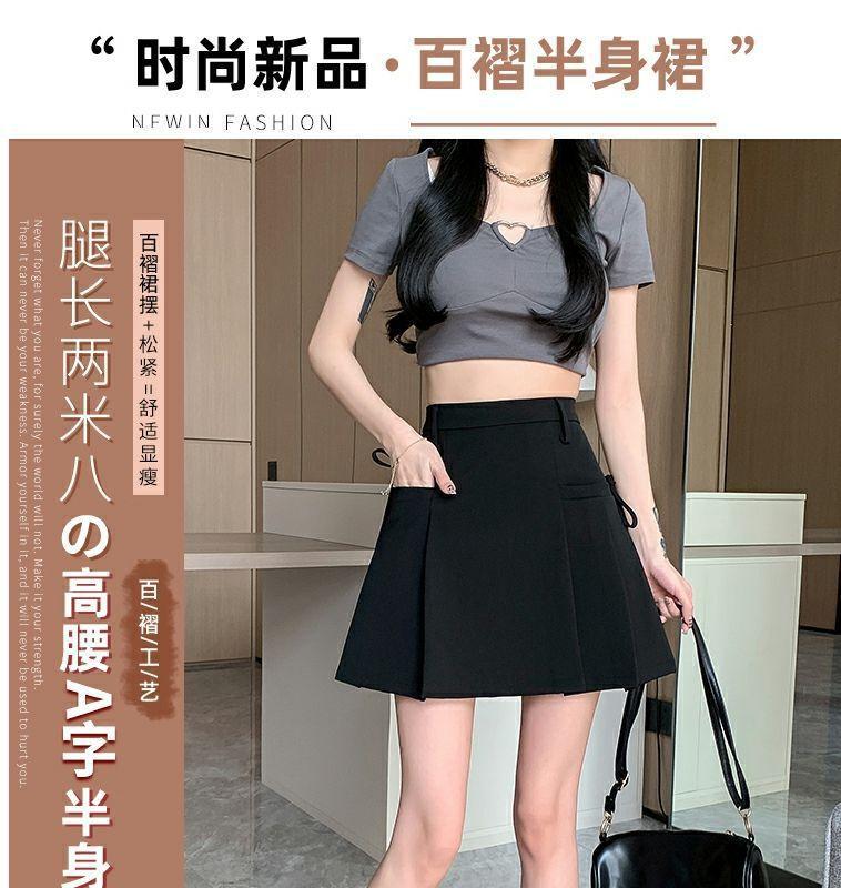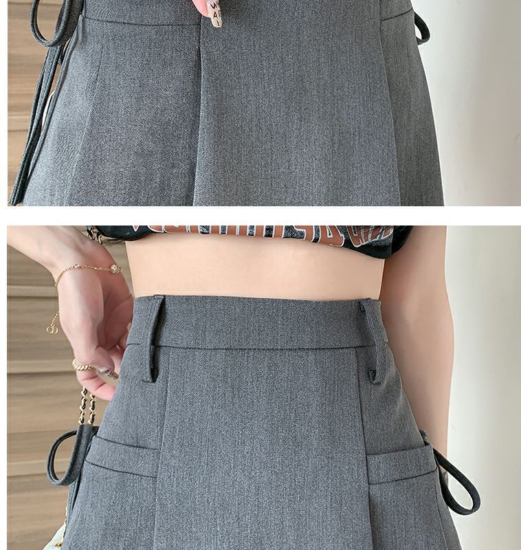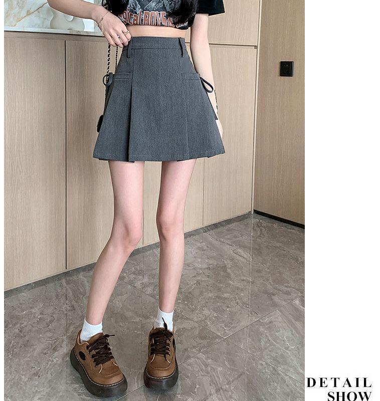 Falda plisada con cordones de diseño Verano Nuevo Estilo coreano Moda Falda corta de línea A de cintura alta Falda antiexposición