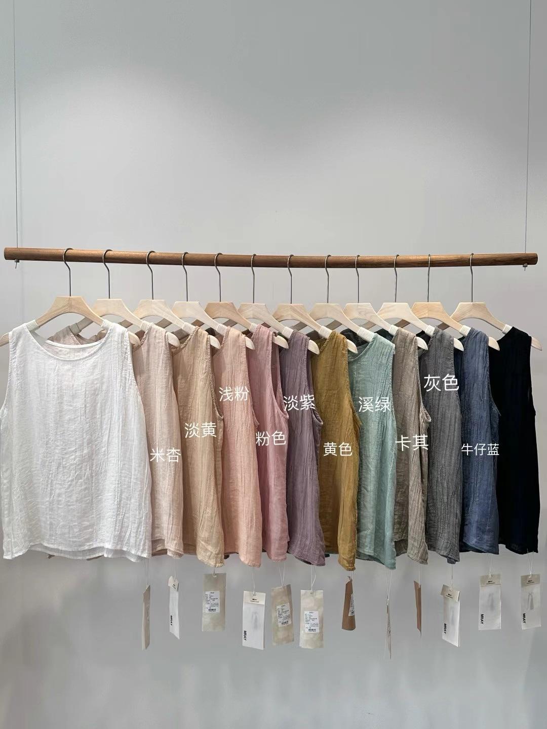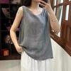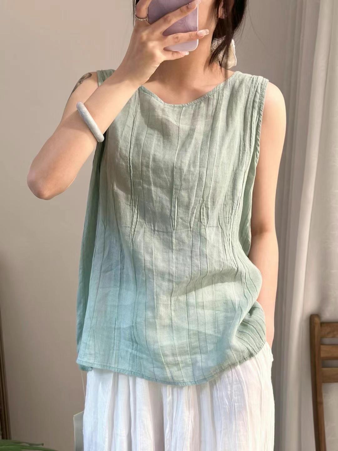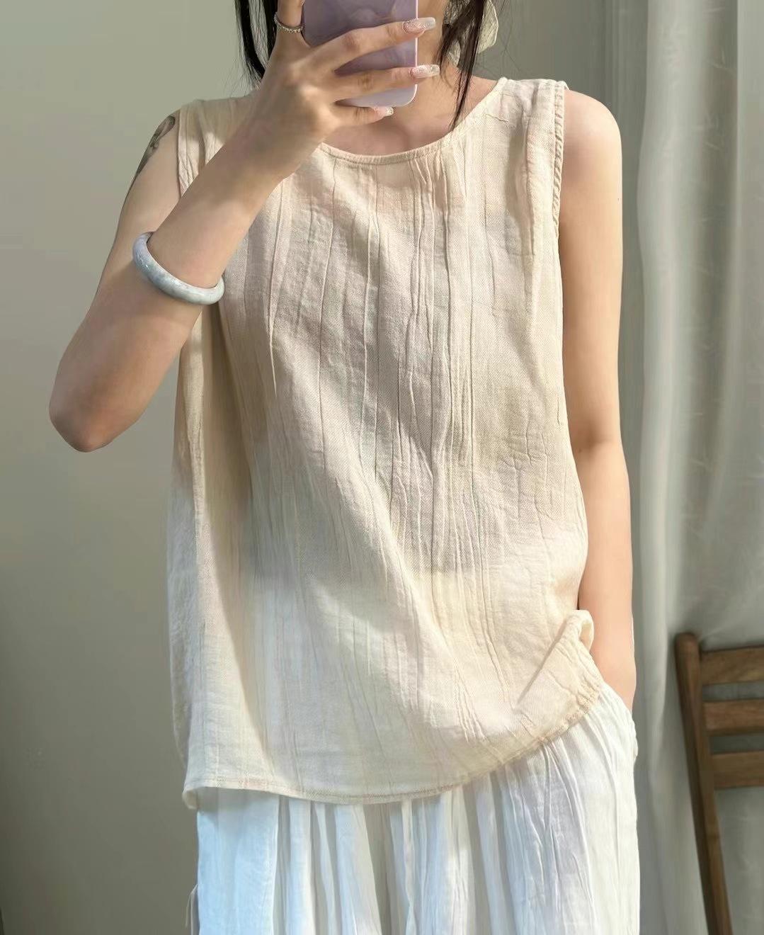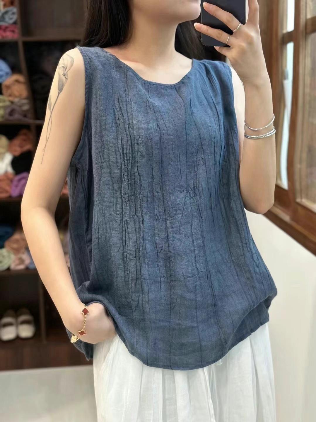 Verano Nuevo Estilo Artístico Cuello Redondo Camisa de Ramio sin Mangas Versión Suelta Camiseta Chaleco Aspecto Adelgazante 2024