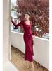 Vestido cruzado de temperamento con lazo lindo en la espalda 2024 otoño para mujer nuevo europeo y americano falda tubo