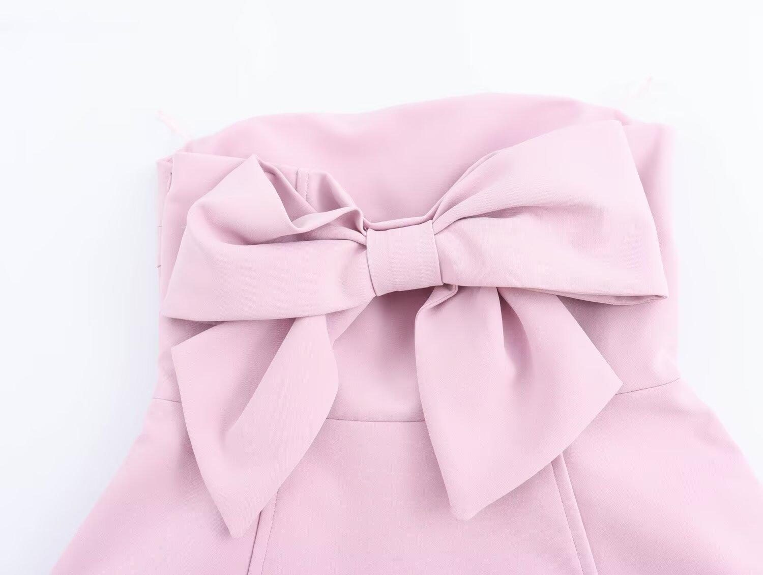 Lindo lazo en la espalda, elegante vestido transfronterizo, falda corta tubo nueva de otoño 2024 para mujer, estilo europeo y americano