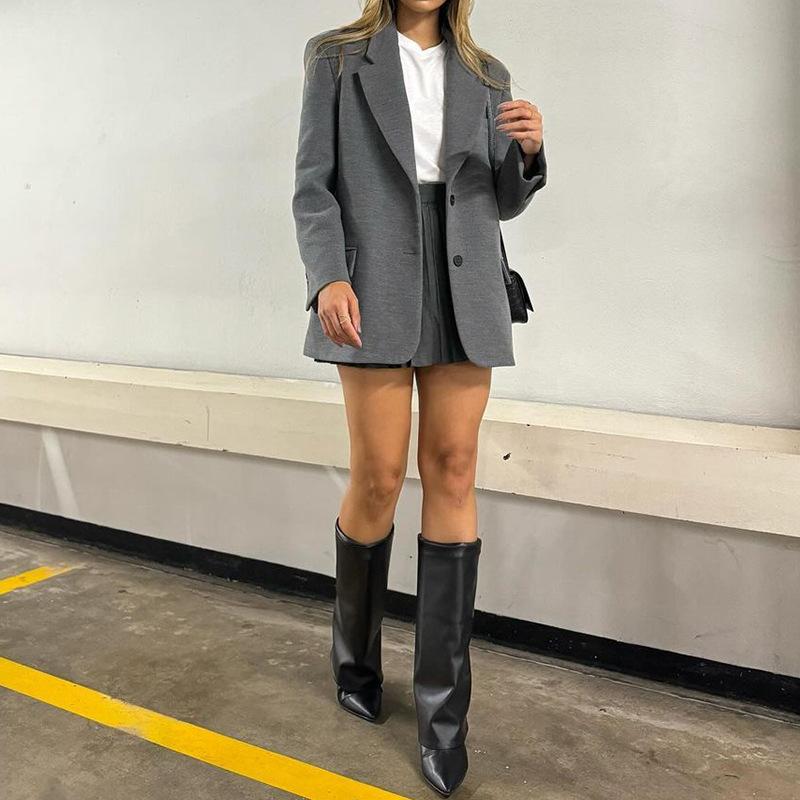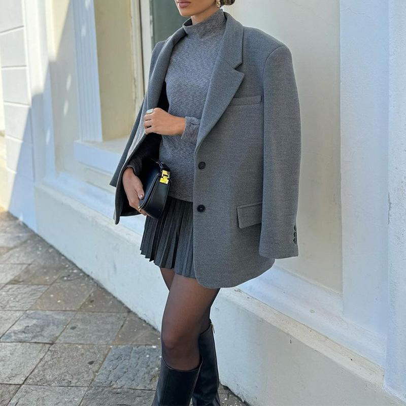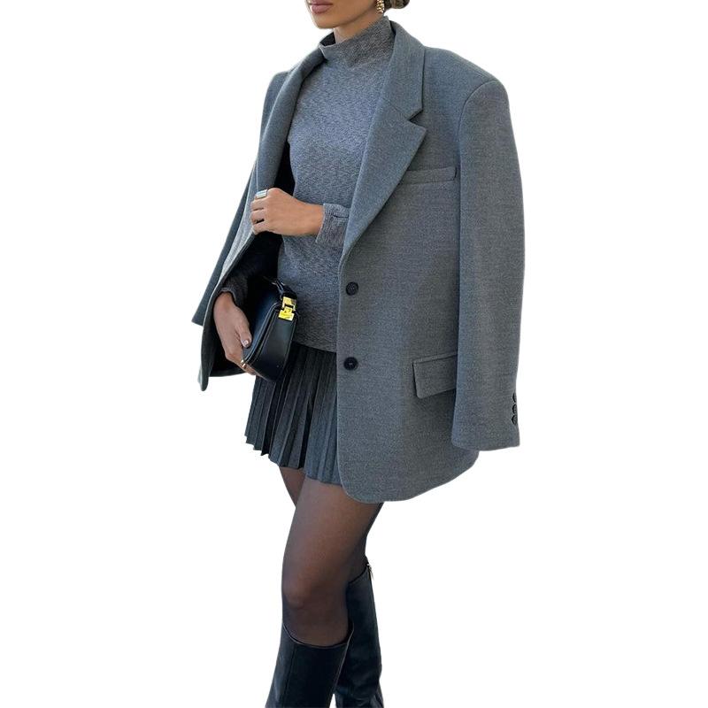 Amazon 2024 Ropa de mujer europea y americana Otoño e Invierno Nueva moda femenina transfronteriza Elegante traje de solapa de tweed de doble cara de color sólido