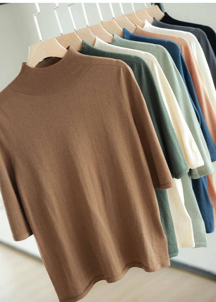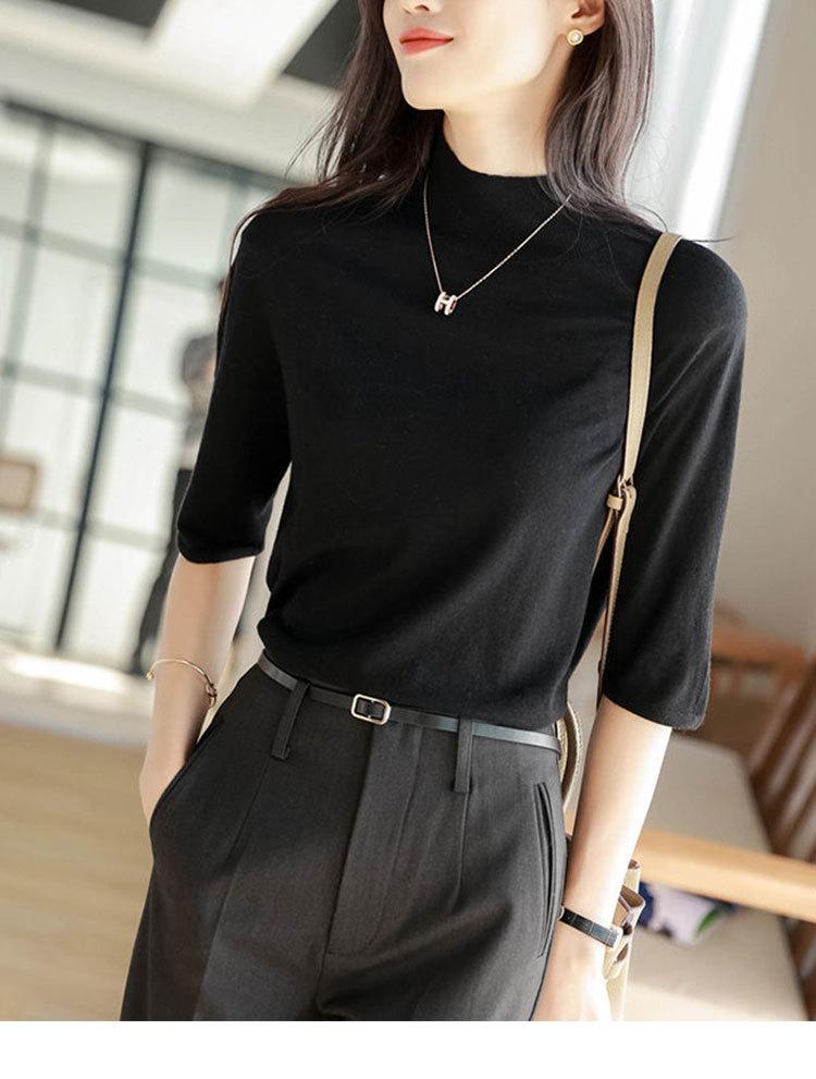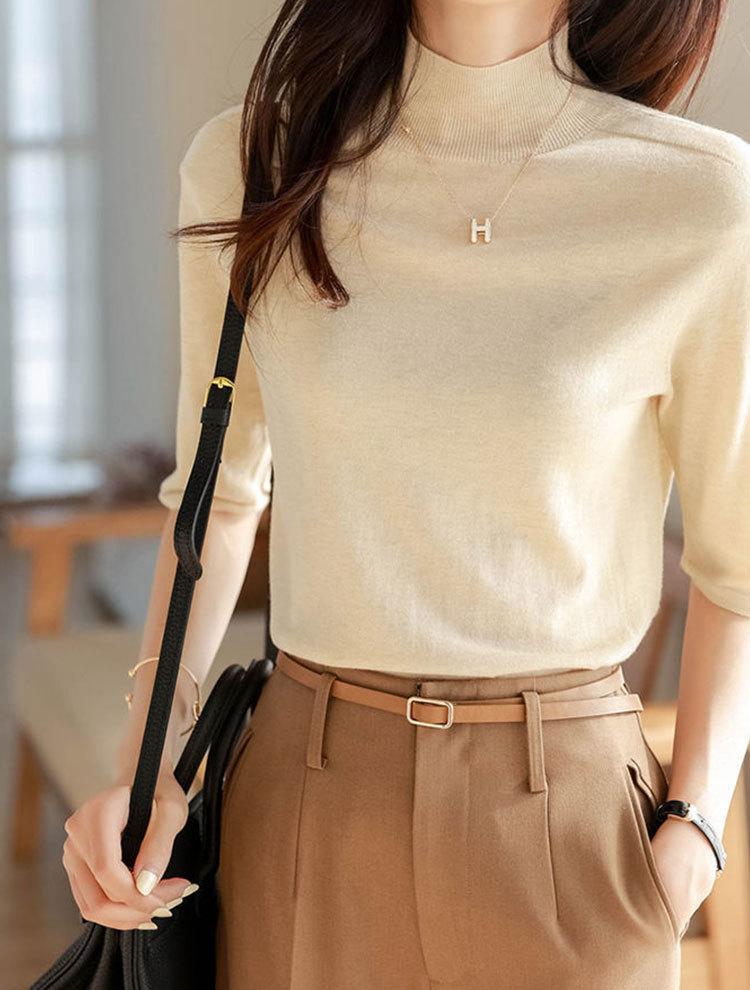 Suéter interior de cuello alto medio para mujer, novedad de primavera y otoño de 2023, suéter fino para mujer, camisa base superior de primavera de manga media para mujer