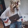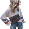Suéter Sexy de Punto Calado Transfronterizo Europeo y Americano para Mujer Otoño e Invierno Cuello Redondo Manga Larga Contraste de Color Suelto Top de Suéter de Punto para Mujer
