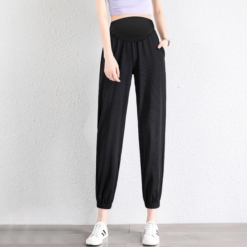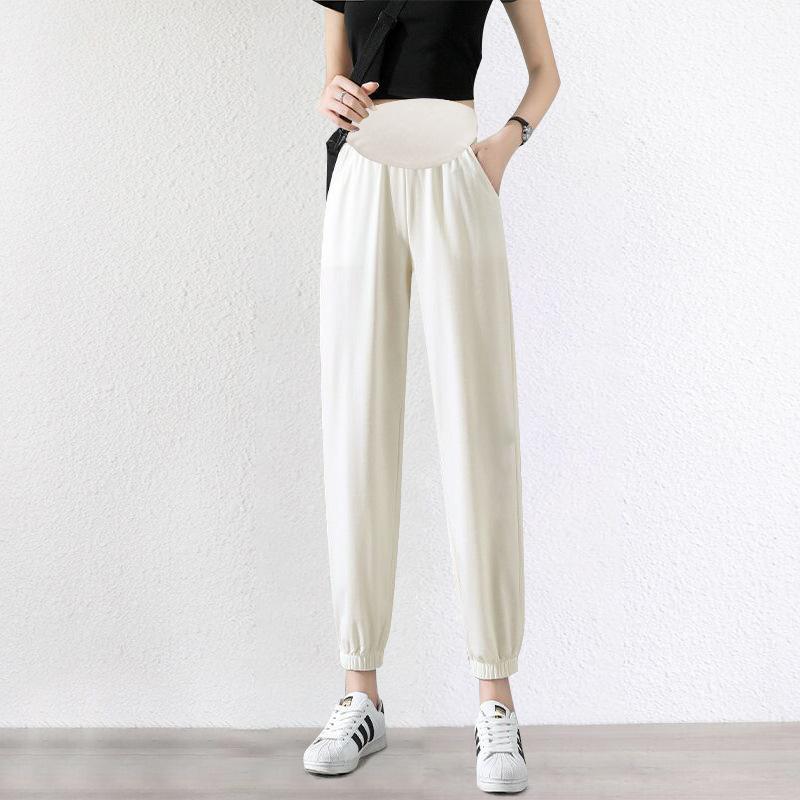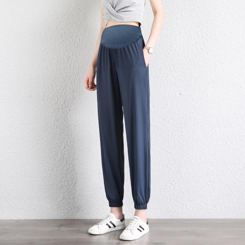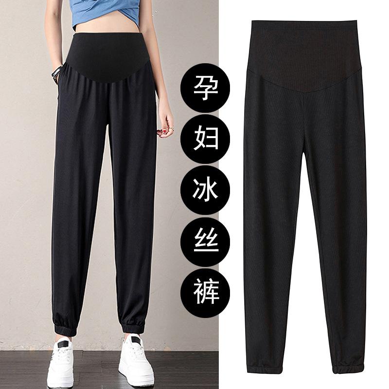 Pantalones de seda de hielo para embarazadas, leggings de primavera y verano, pantalones finos de talla grande, pantalones casuales sueltos, ropa de maternidad