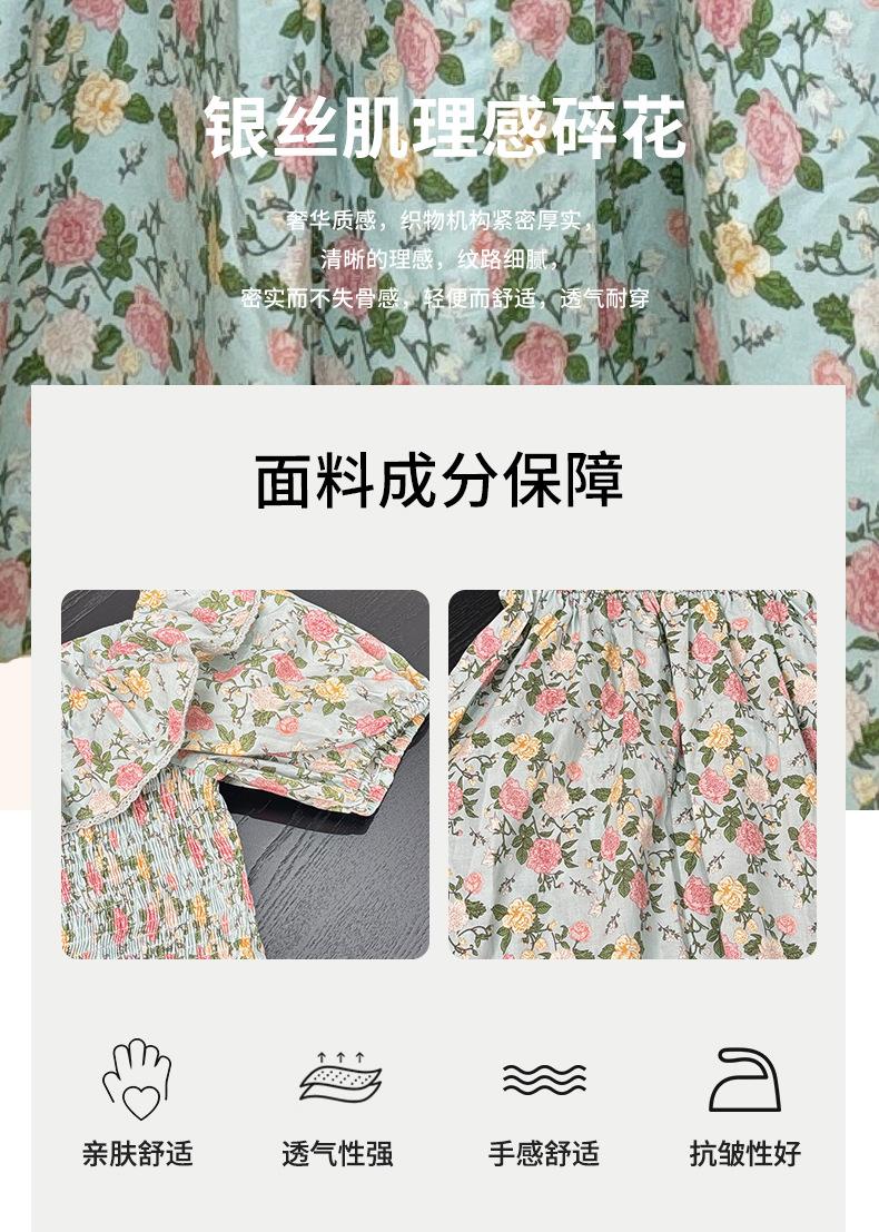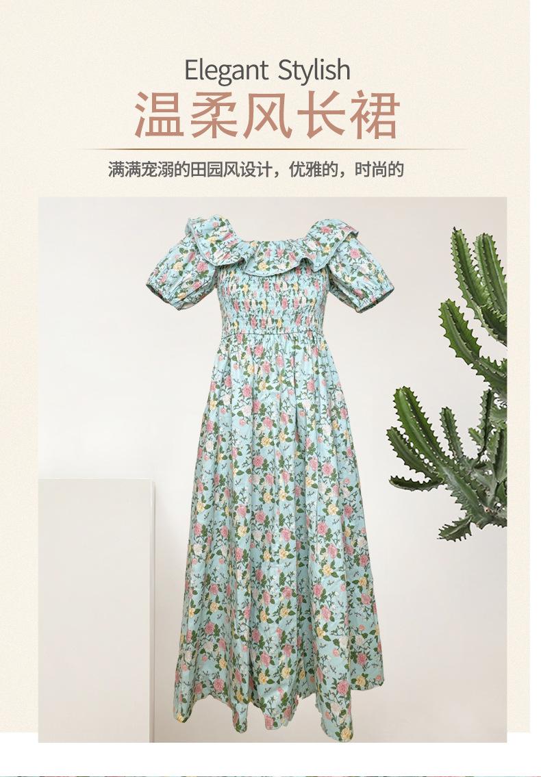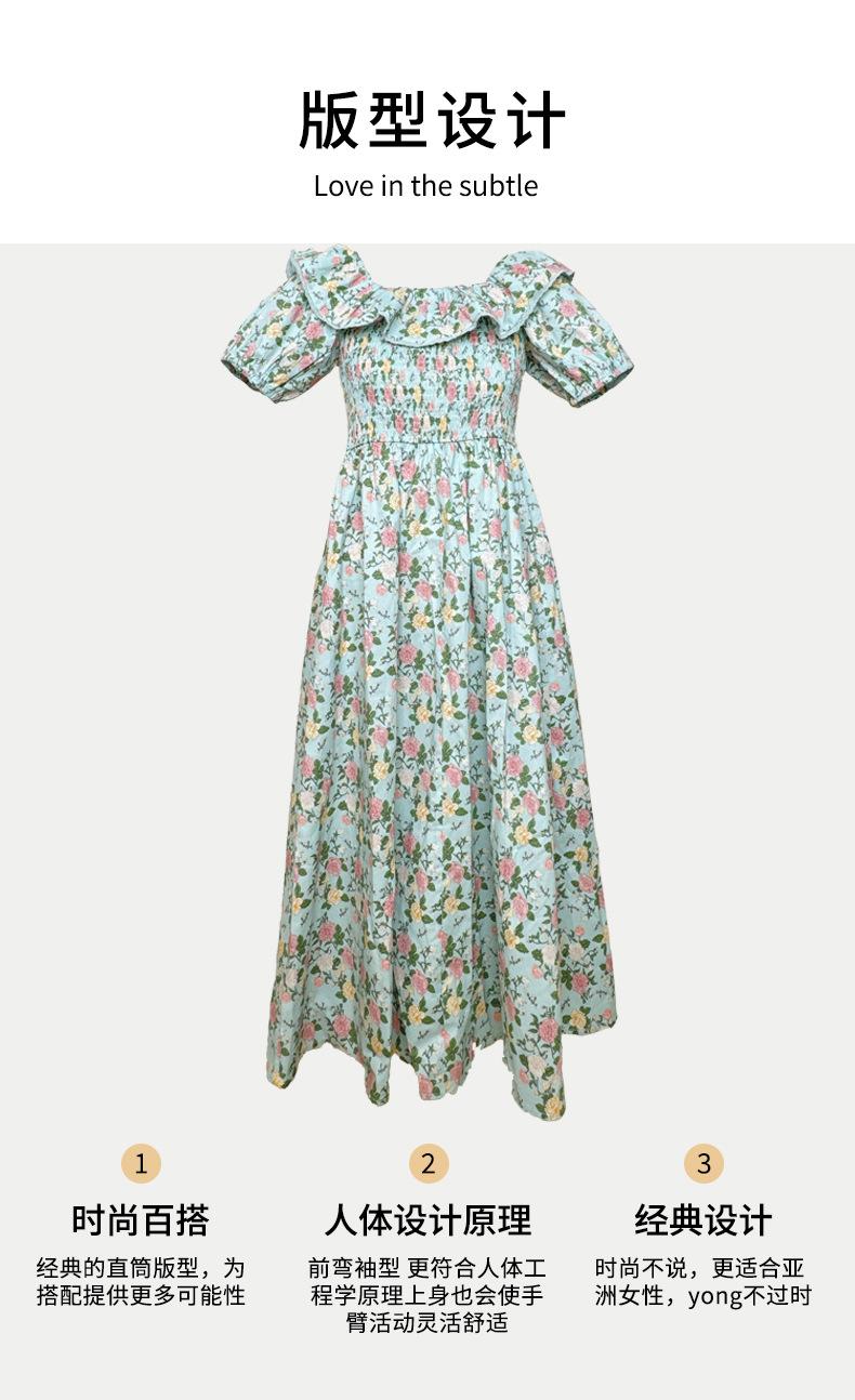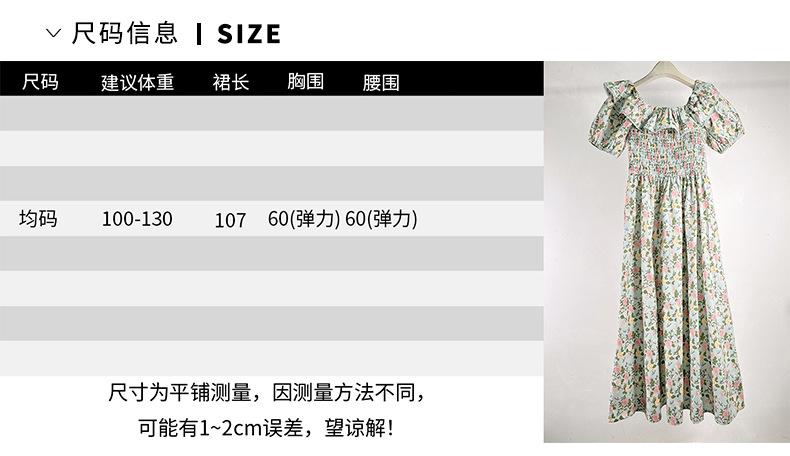 Vestido francés dulce con escote cuadrado, hombros descubiertos, estampado floral, mangas abullonadas, cintura plisada y elástico, estilo retro de verano