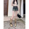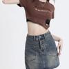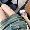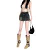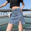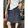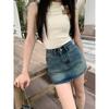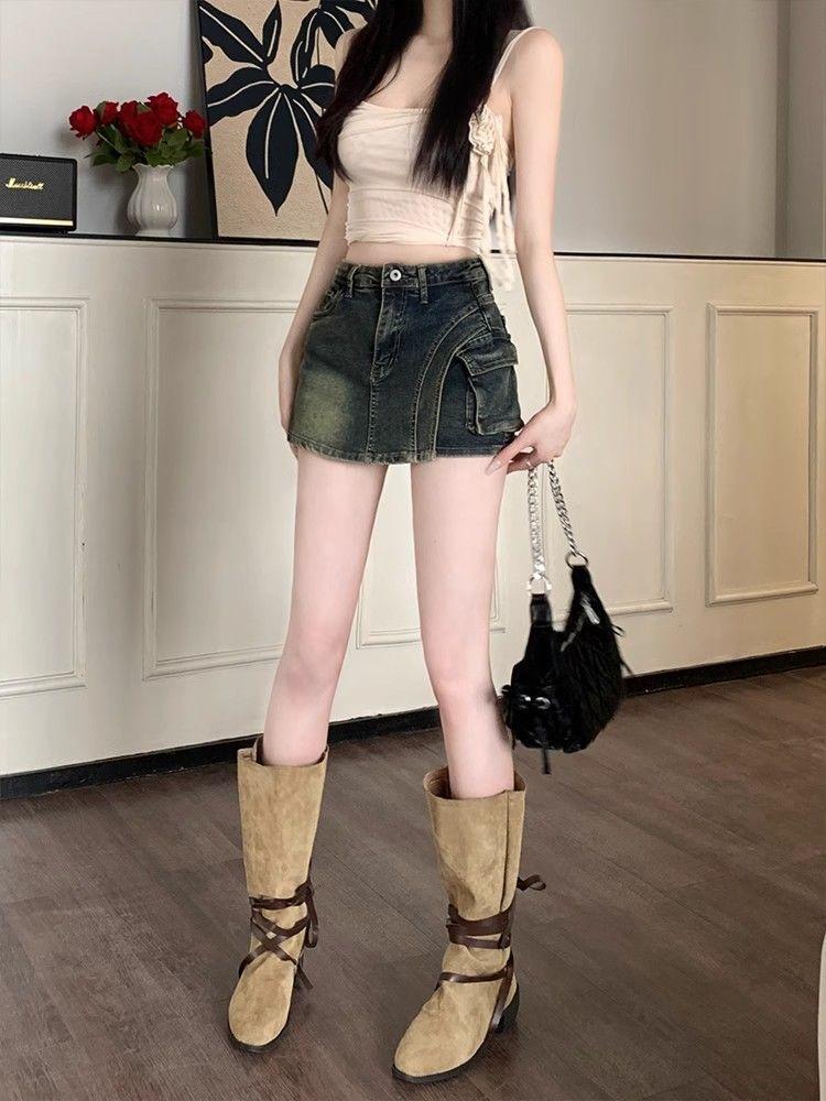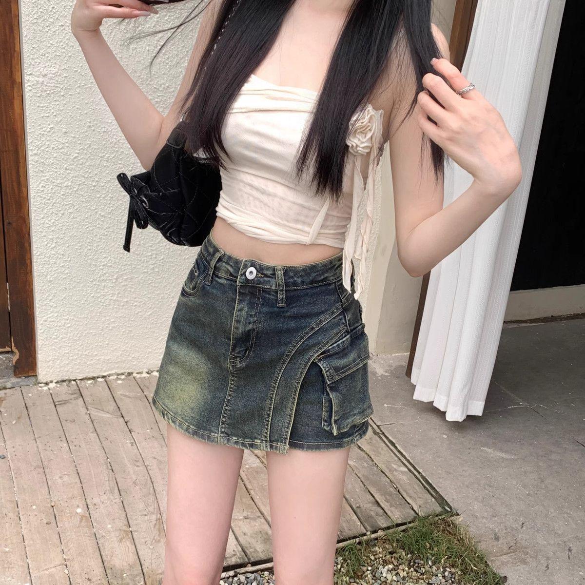 Falda de mezclilla Falda plisada Antitransparente Diseño chic para mujer Bolsillo Cintura alta Elástica Cadera Falda estilo americano para chica hot