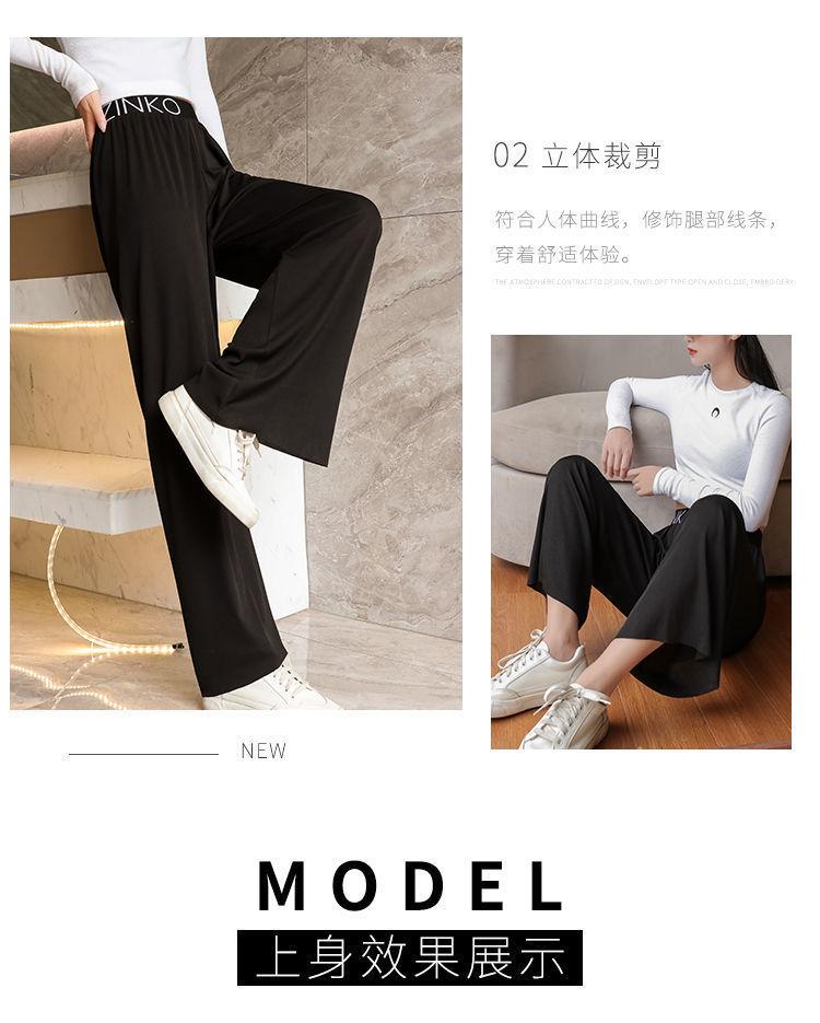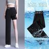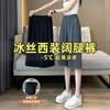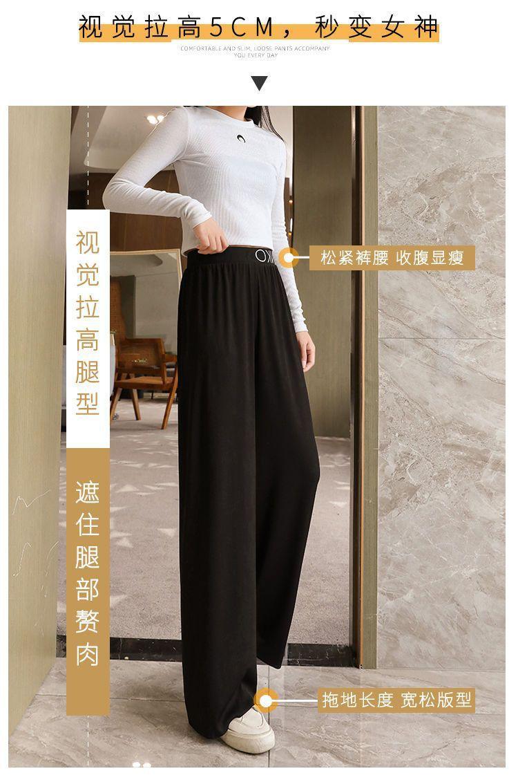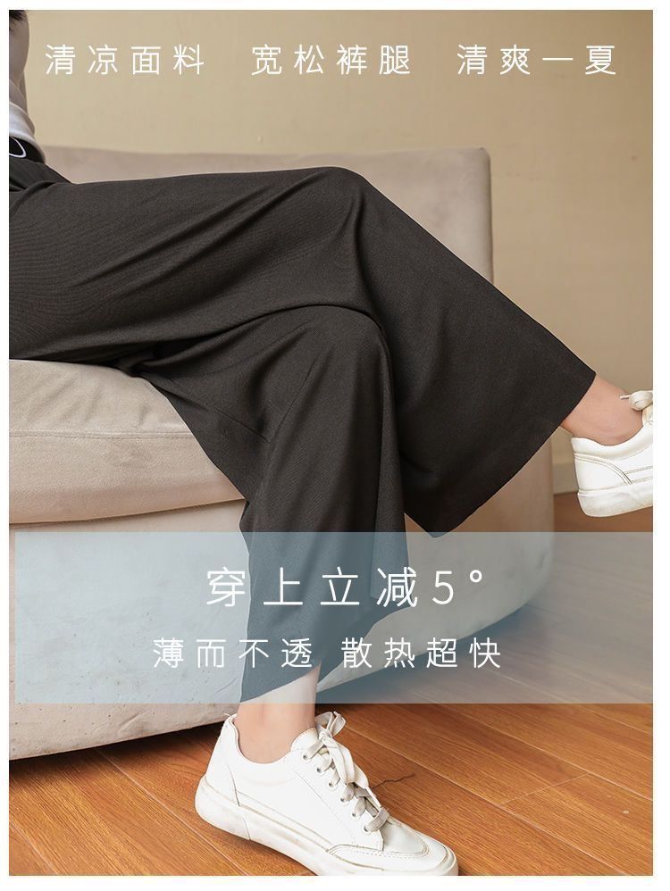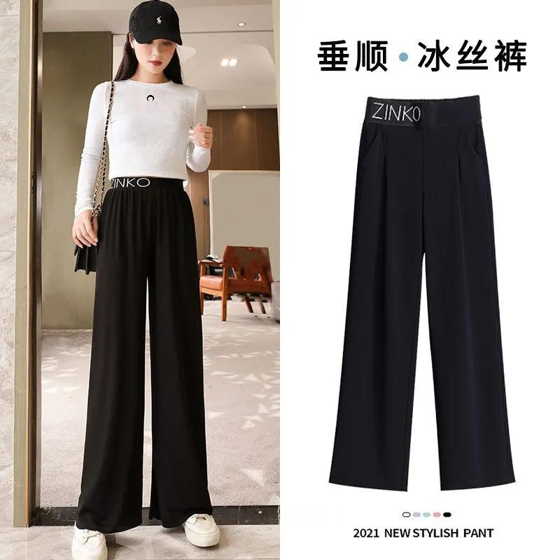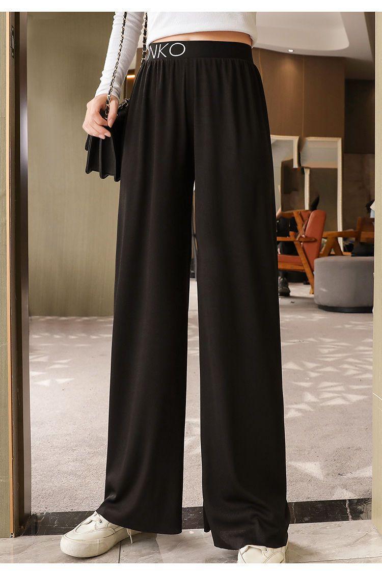 Pantalones casuales de traje de seda de hielo, pantalones de pierna ancha para mujer, verano 2024, finos, nuevos, sueltos, tallas grandes, negros, rectos, tubo, chica gordita