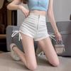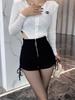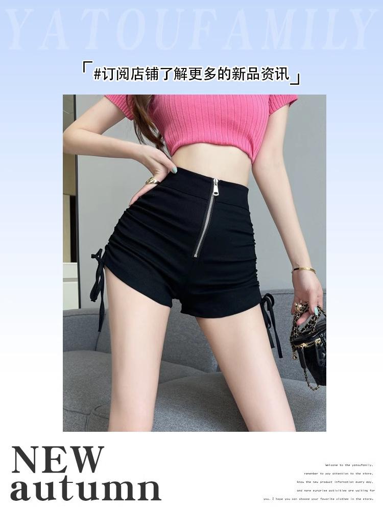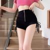 Pantalones cortos de verano 2024 para mujer, nuevo diseño, con cremallera, cintura alta, ajustados, en forma de A, elegantes, con cordón, plisados.