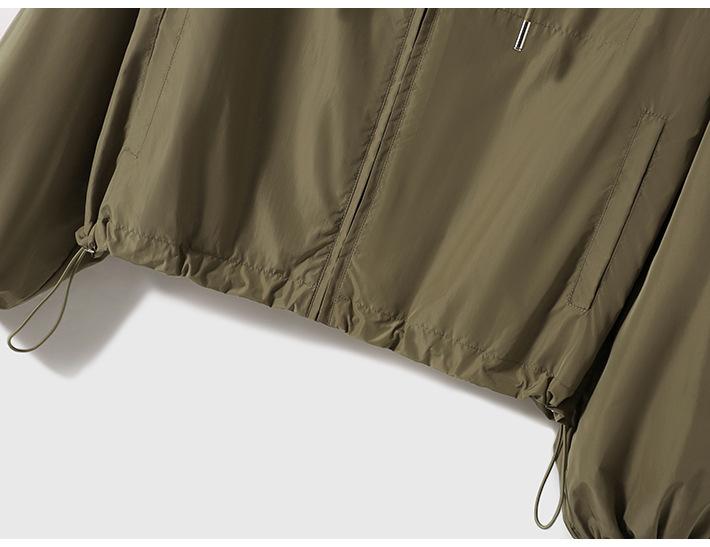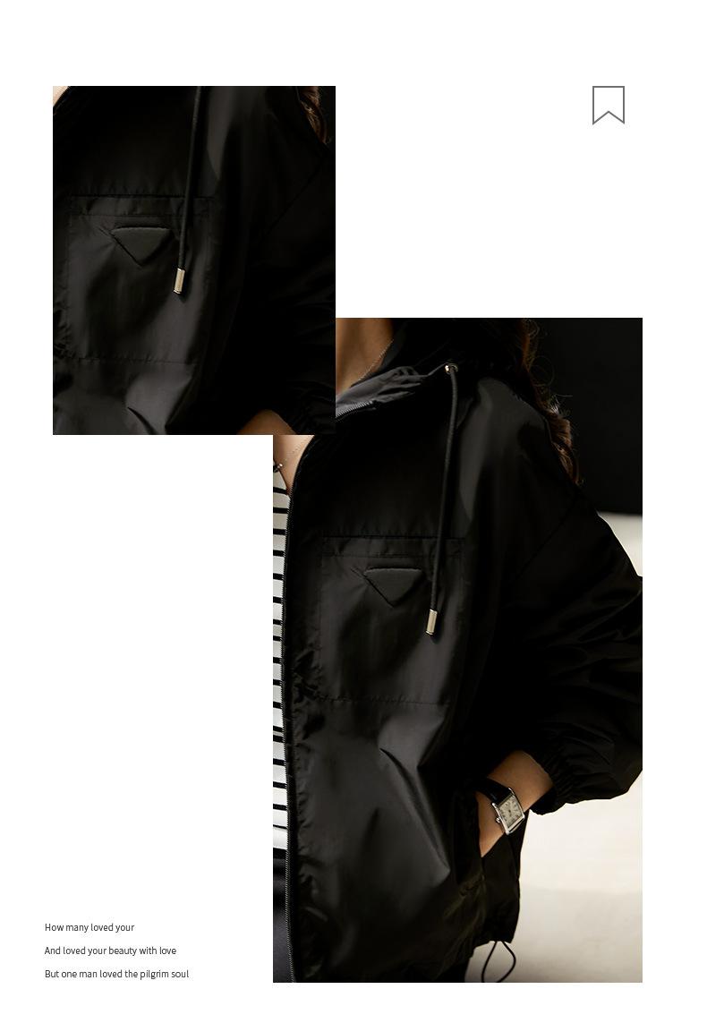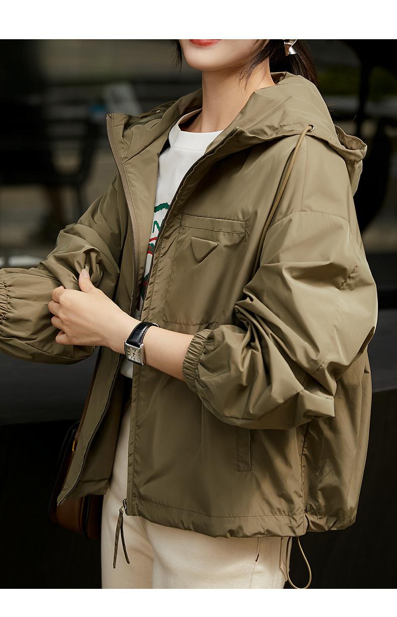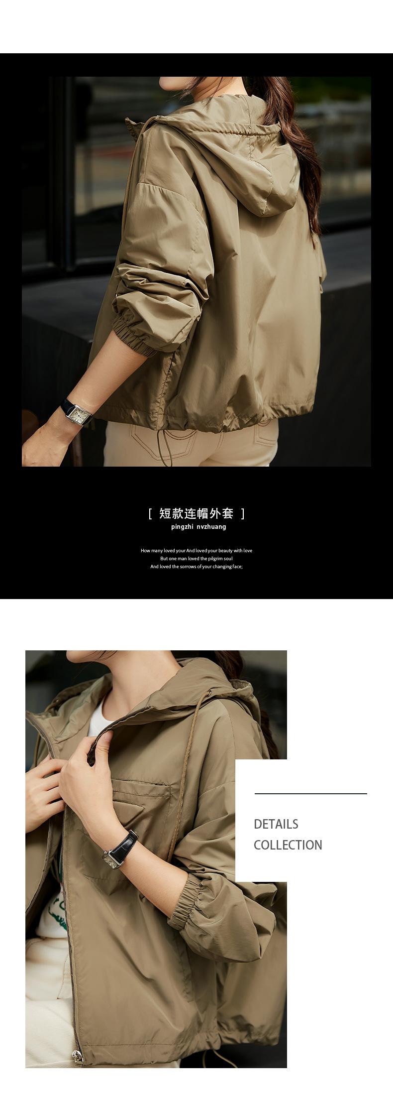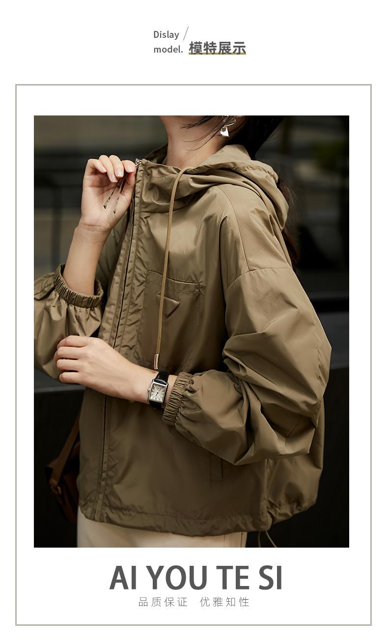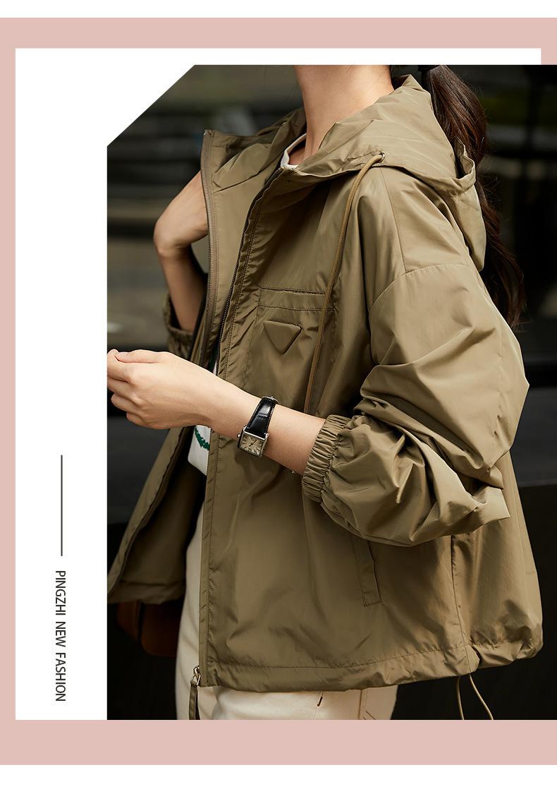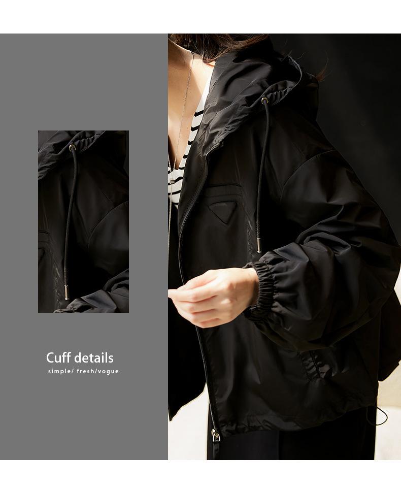 Chaqueta Casual Ligera Antiarrugas de Tela Memory con Capucha Corta para Exterior Cortavientos para Mujer Negro Otoño Nuevo Estilo