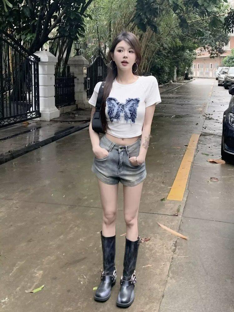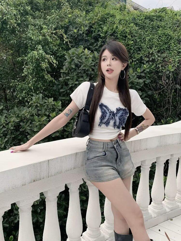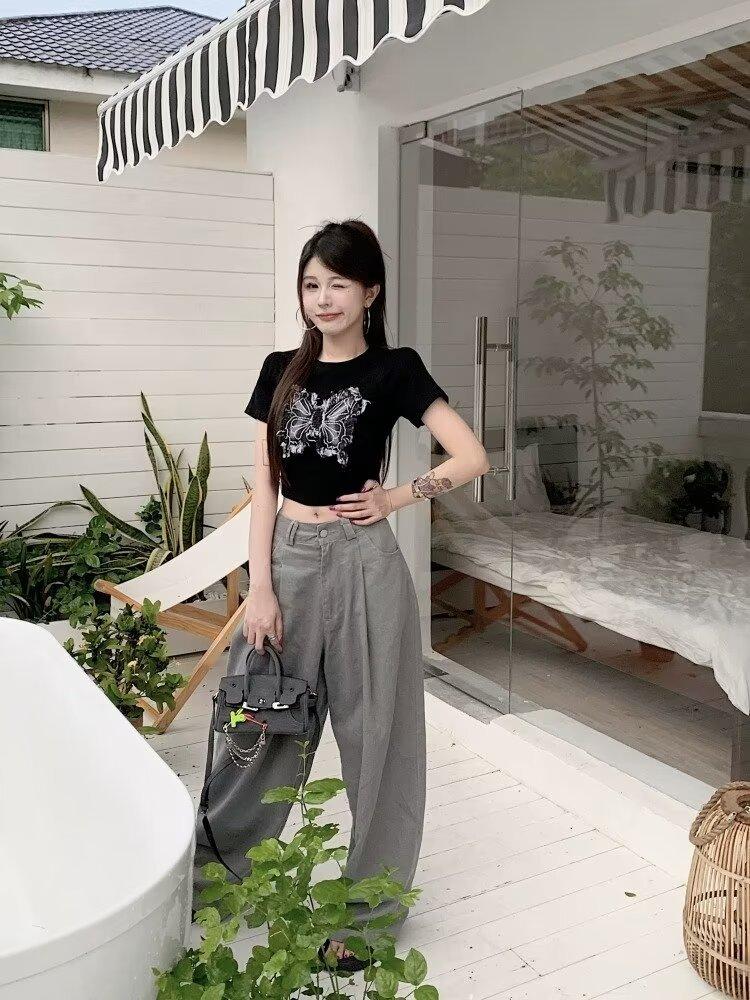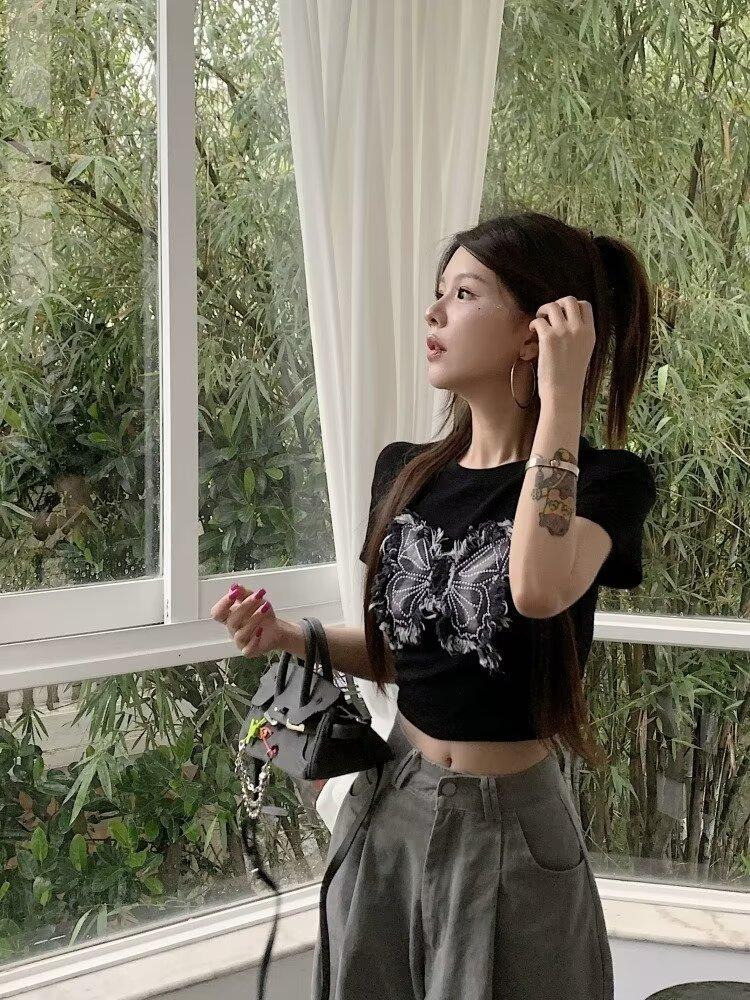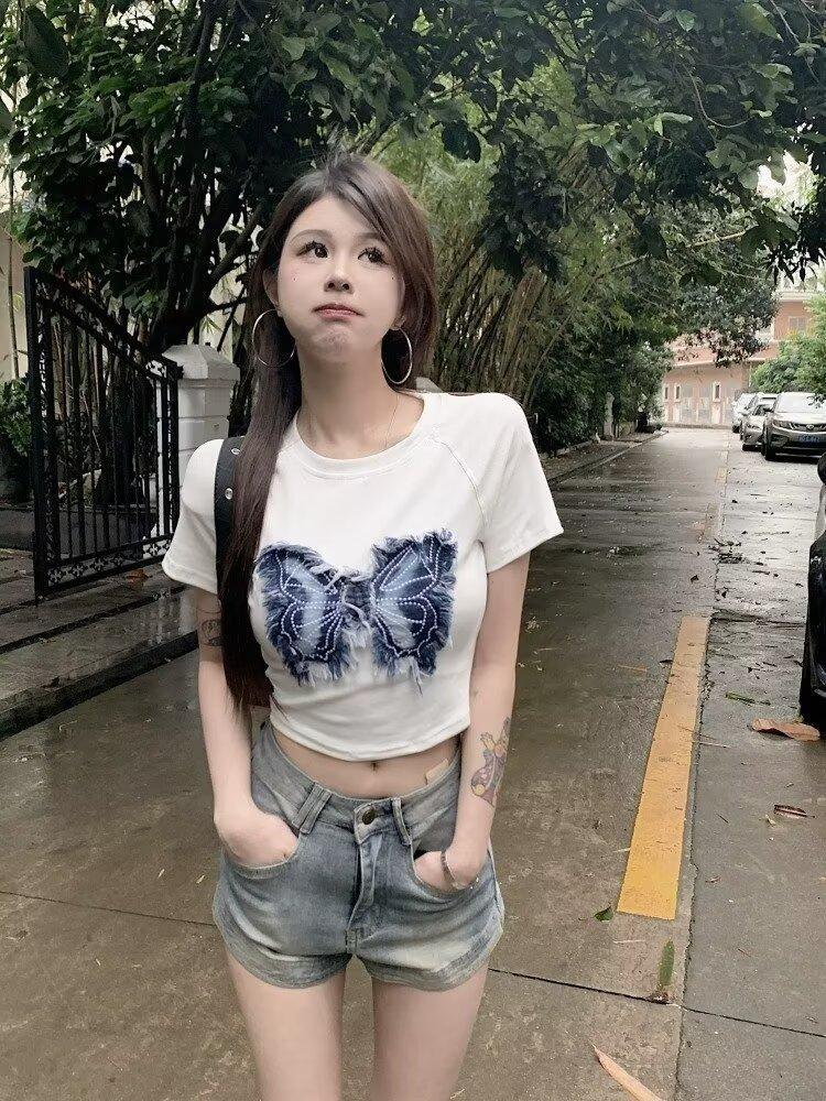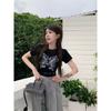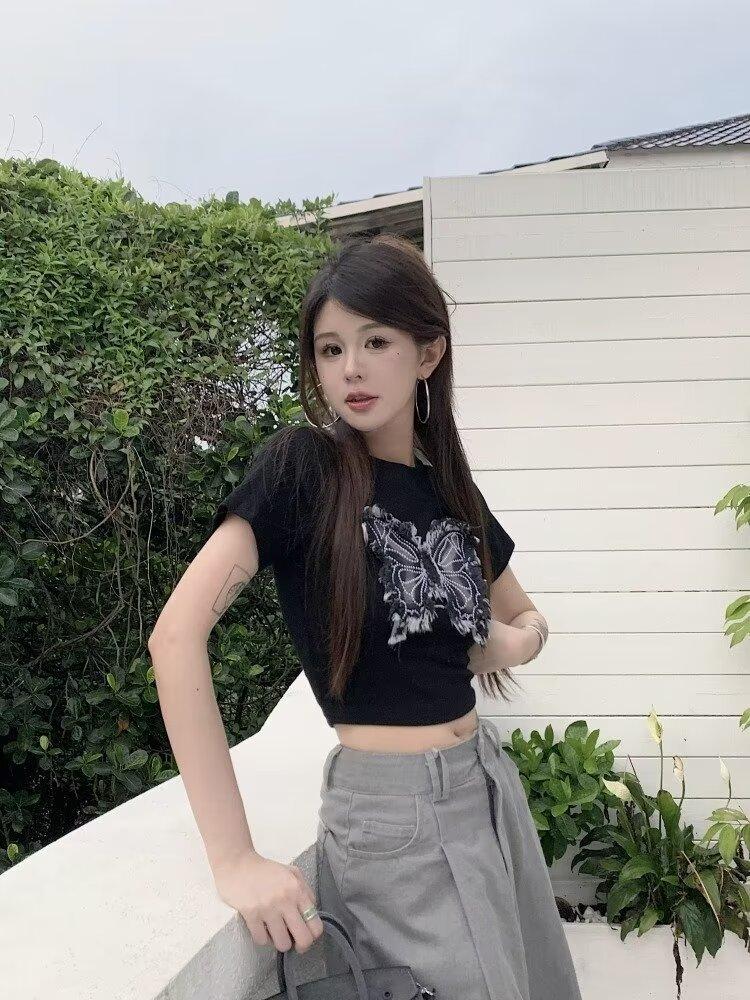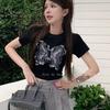 Camiseta de mariposa tridimensional estilo americano para mujer, diseño retro, estilo nicho, corte entallado, novedad de 2024, top corto dulce y sexy de manga corta.