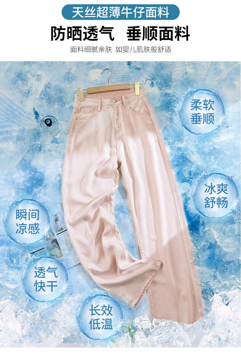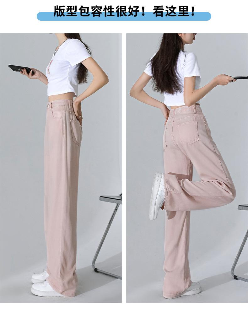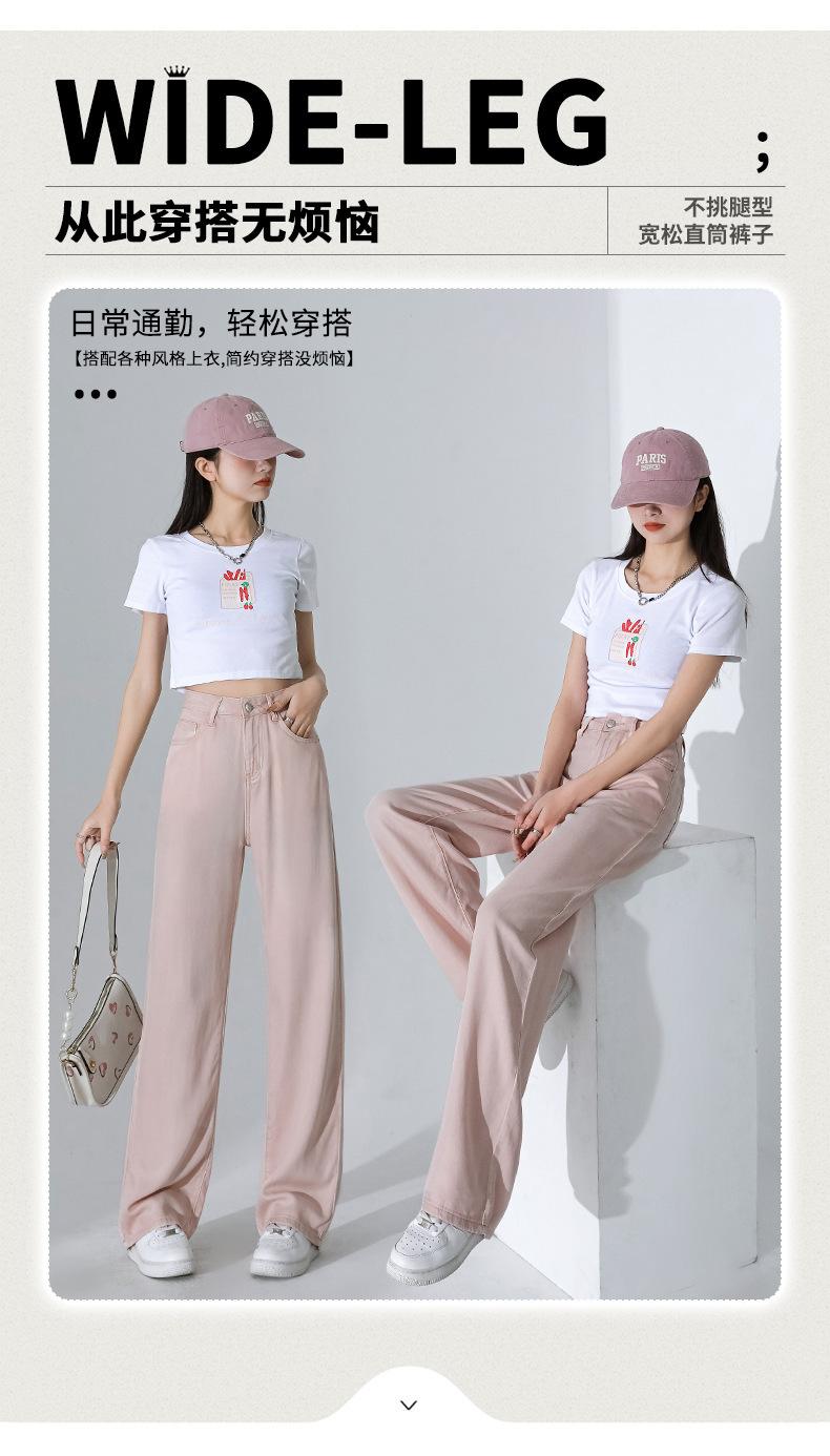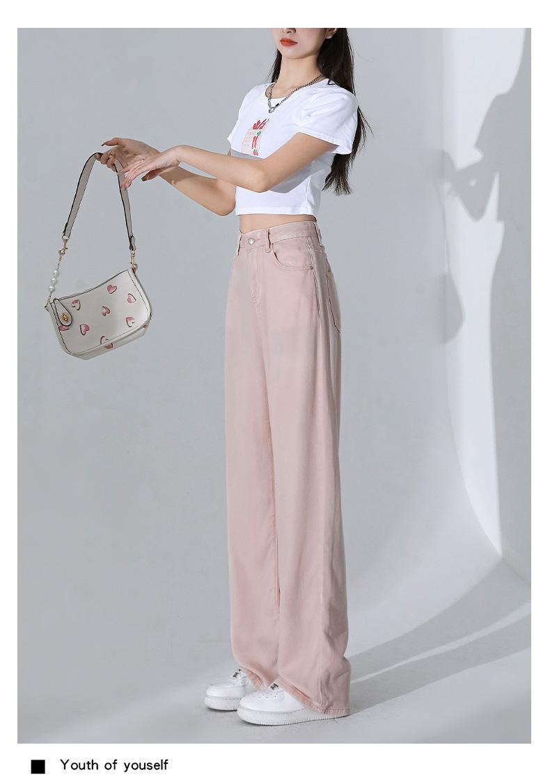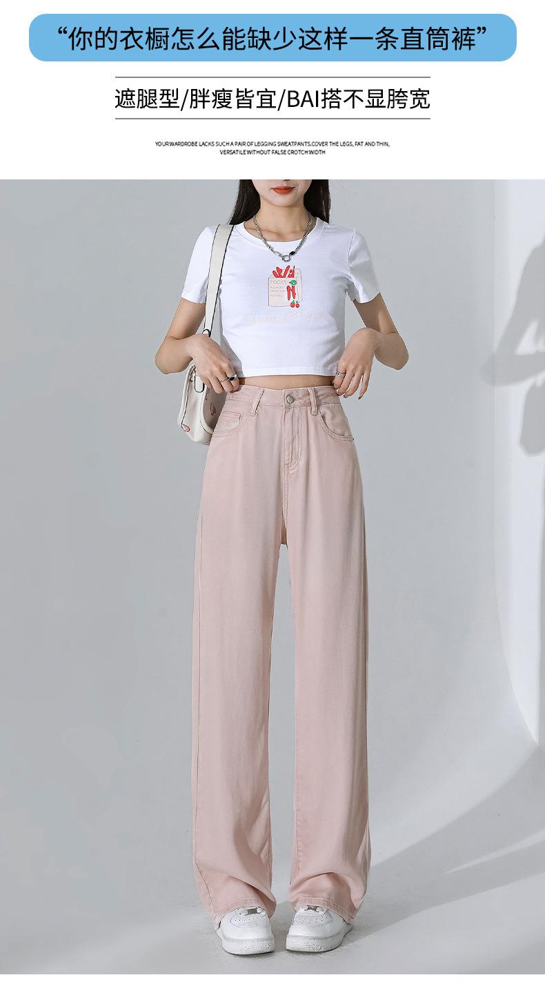 Jeans de pierna ancha de lyocell Tencel rosa de moda para mujer, delgados, suaves y delgados, pantalones rectos de seda de hielo de verano