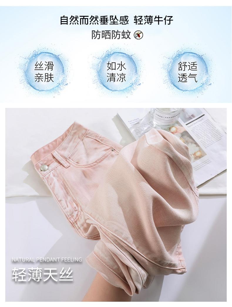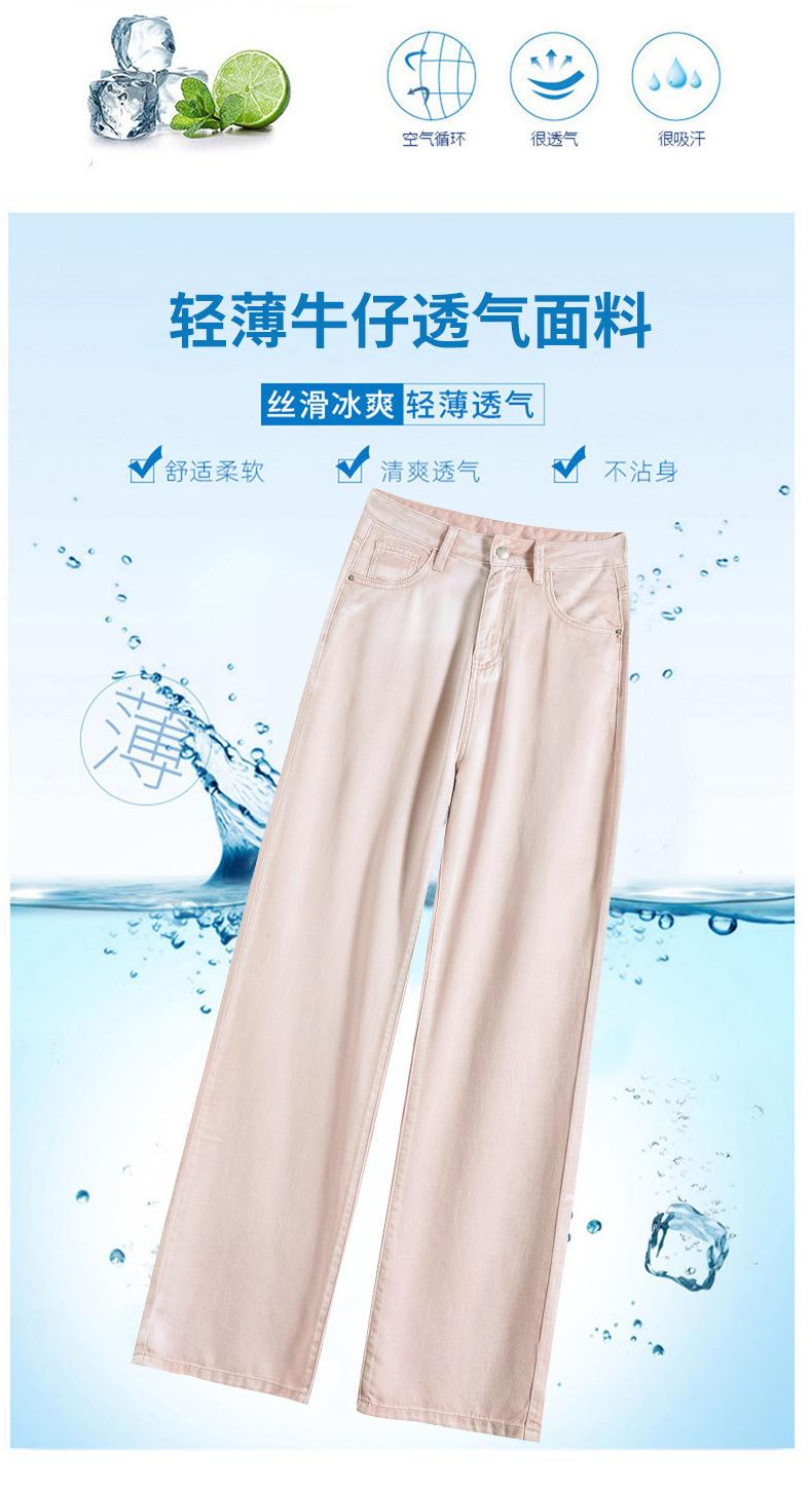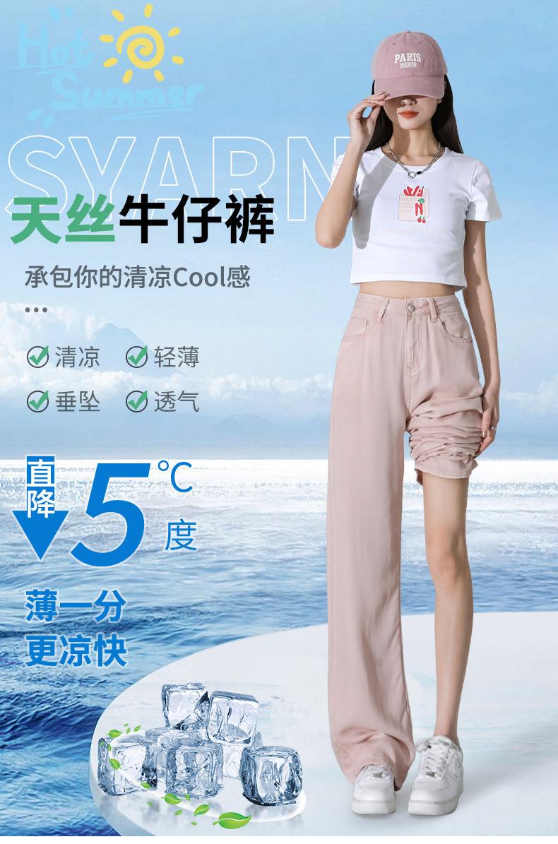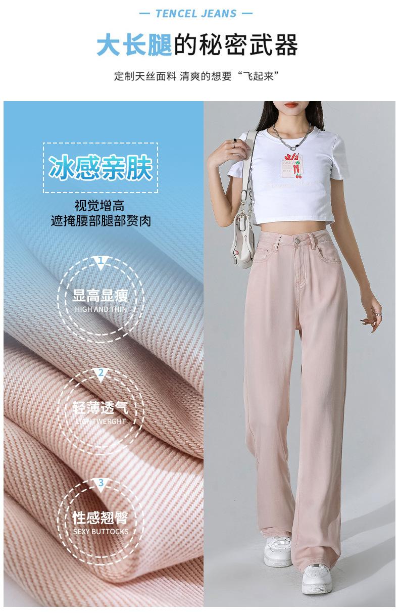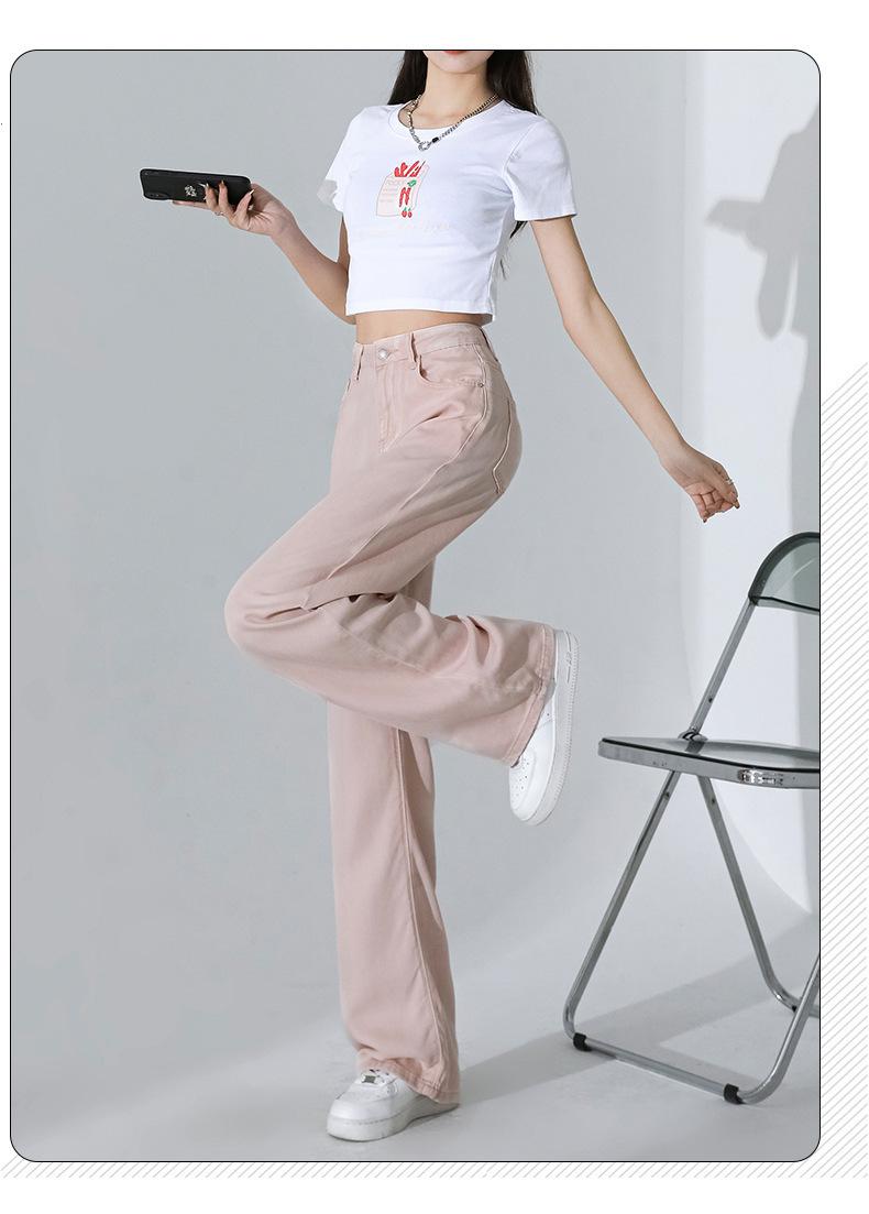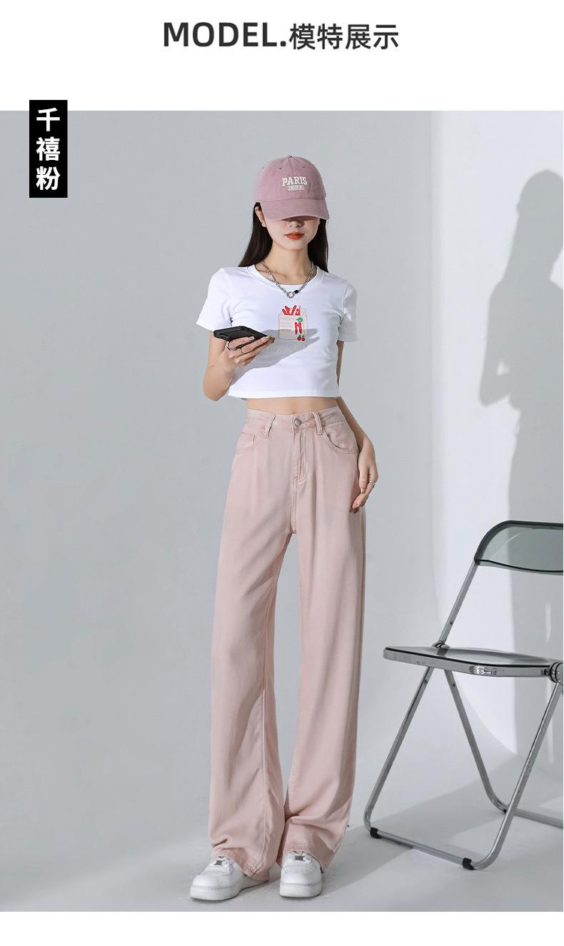 Jeans de pierna ancha de lyocell Tencel rosa de moda para mujer, delgados, suaves y delgados, pantalones rectos de seda de hielo de verano