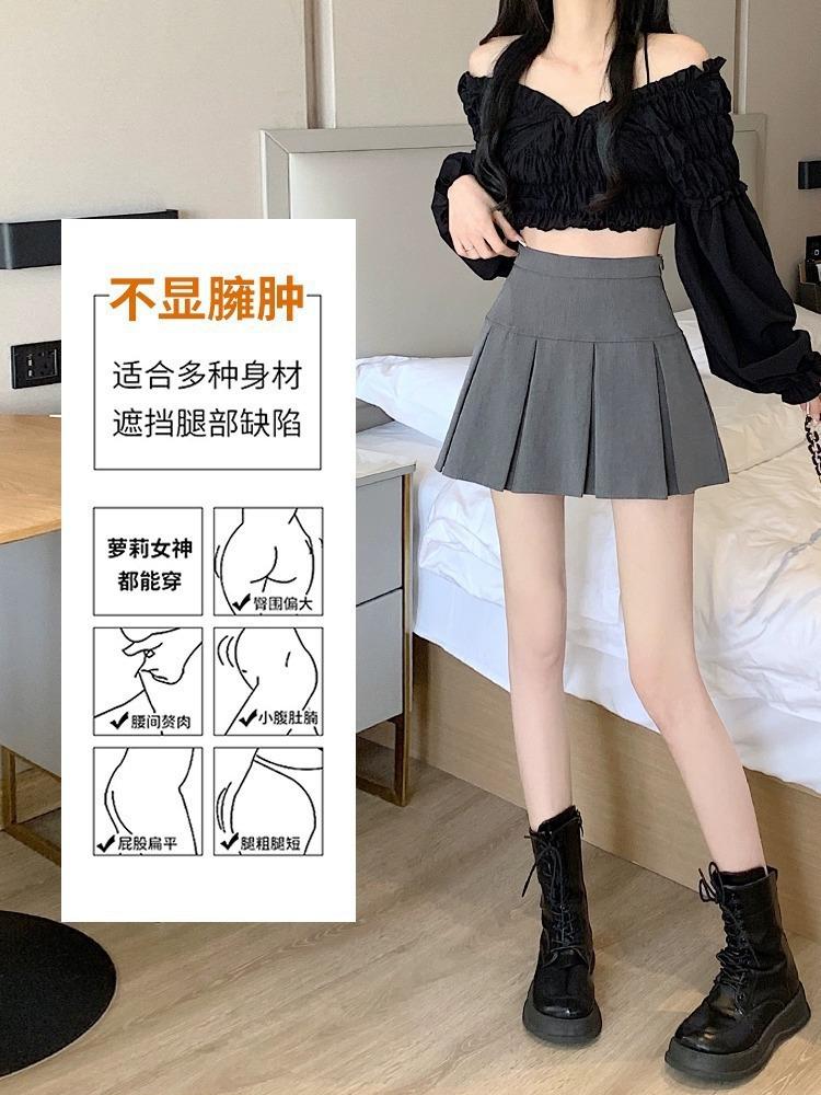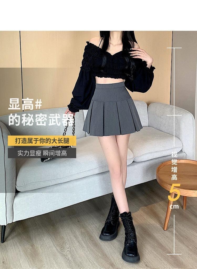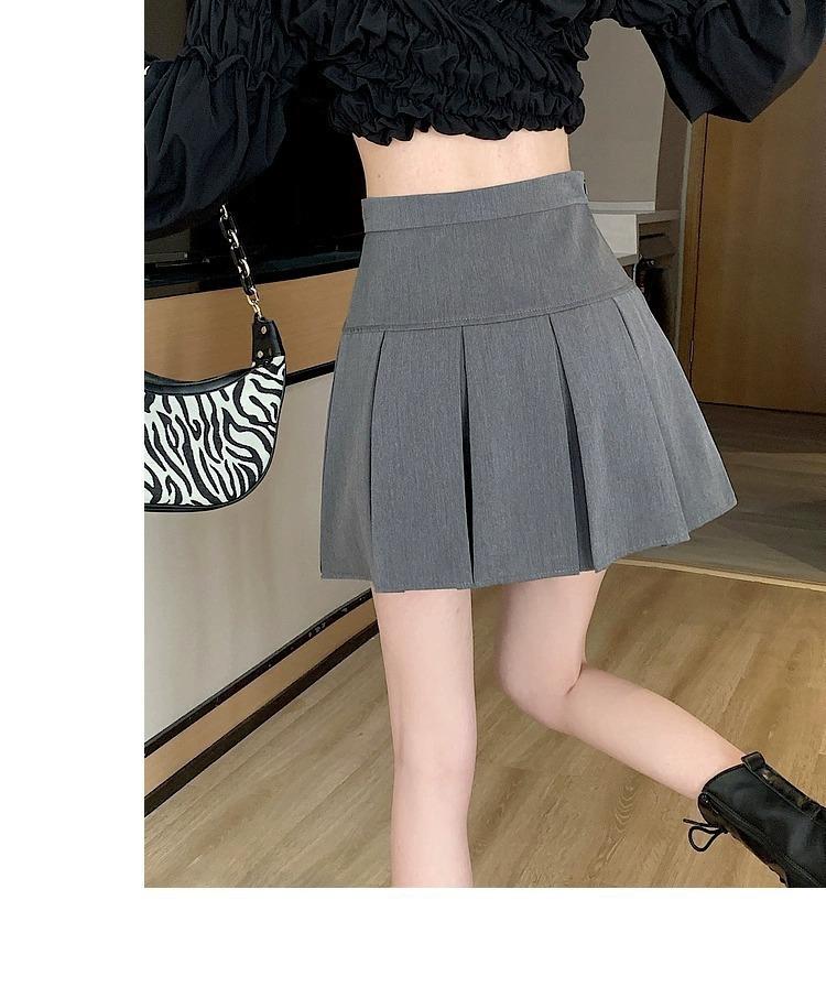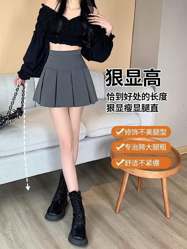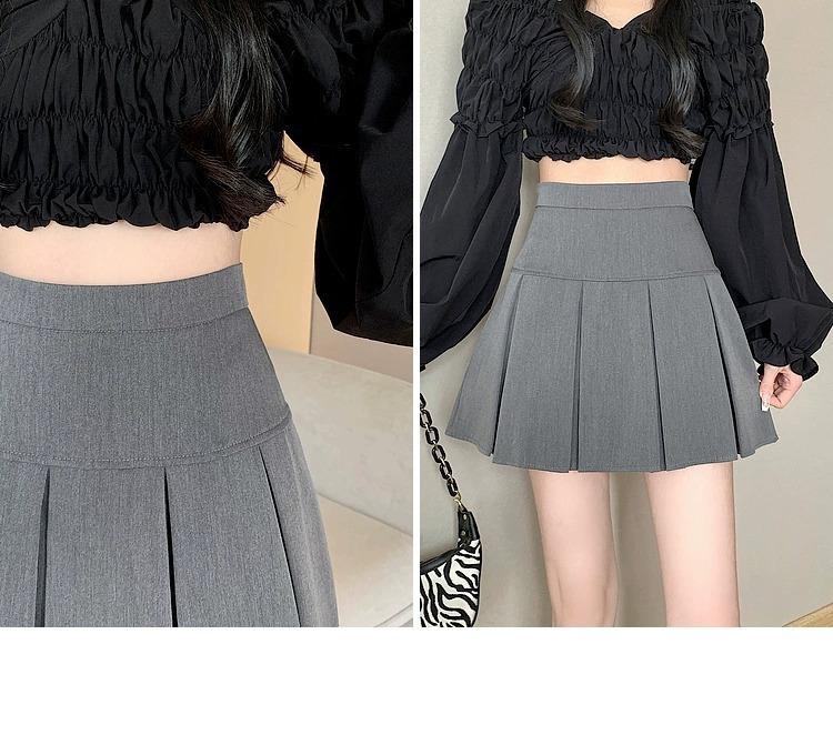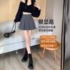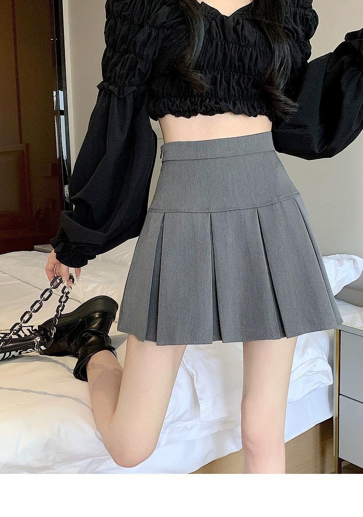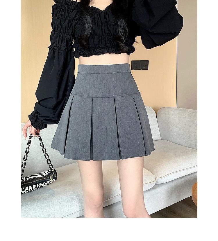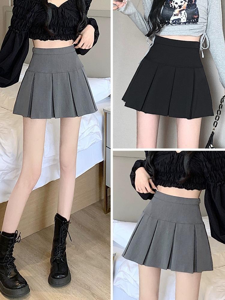 Falda Acampanada de Cintura Alta con Pliegues Falda Corta para Mujer Falda Negra Gris Falda Negra de Otoño con Pliegues para Personas Pequeñas