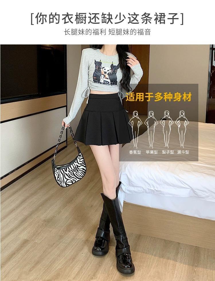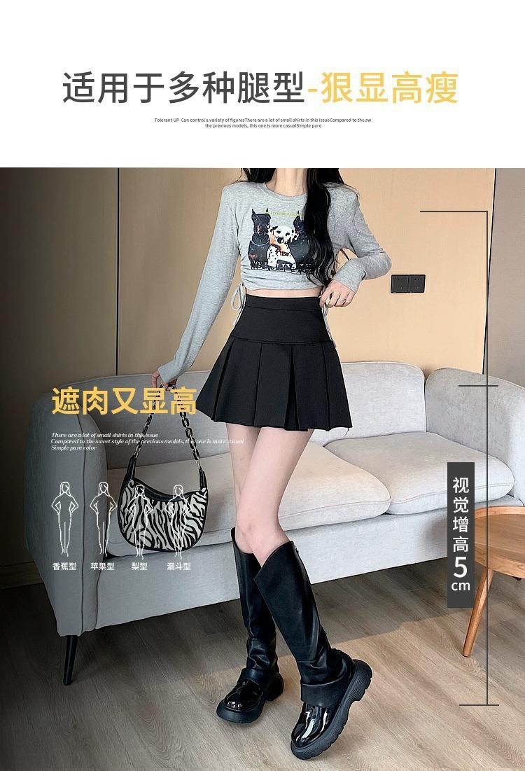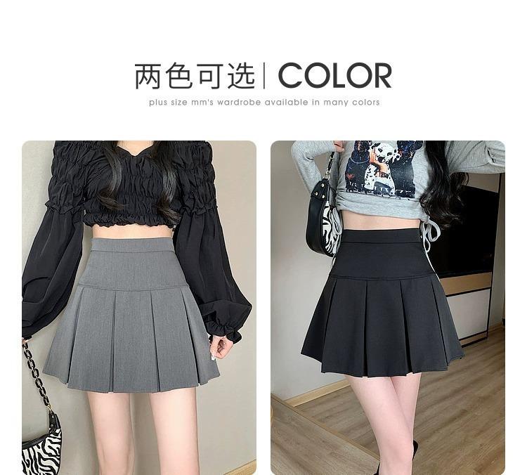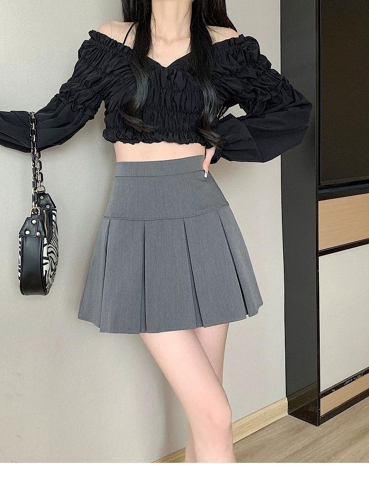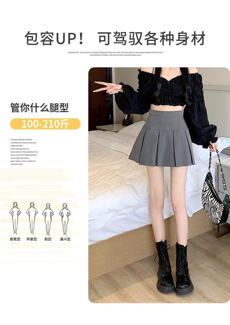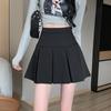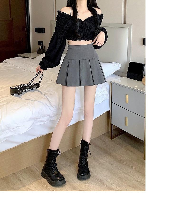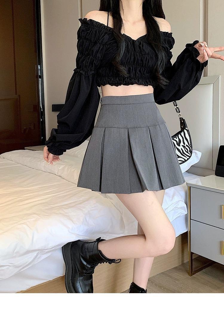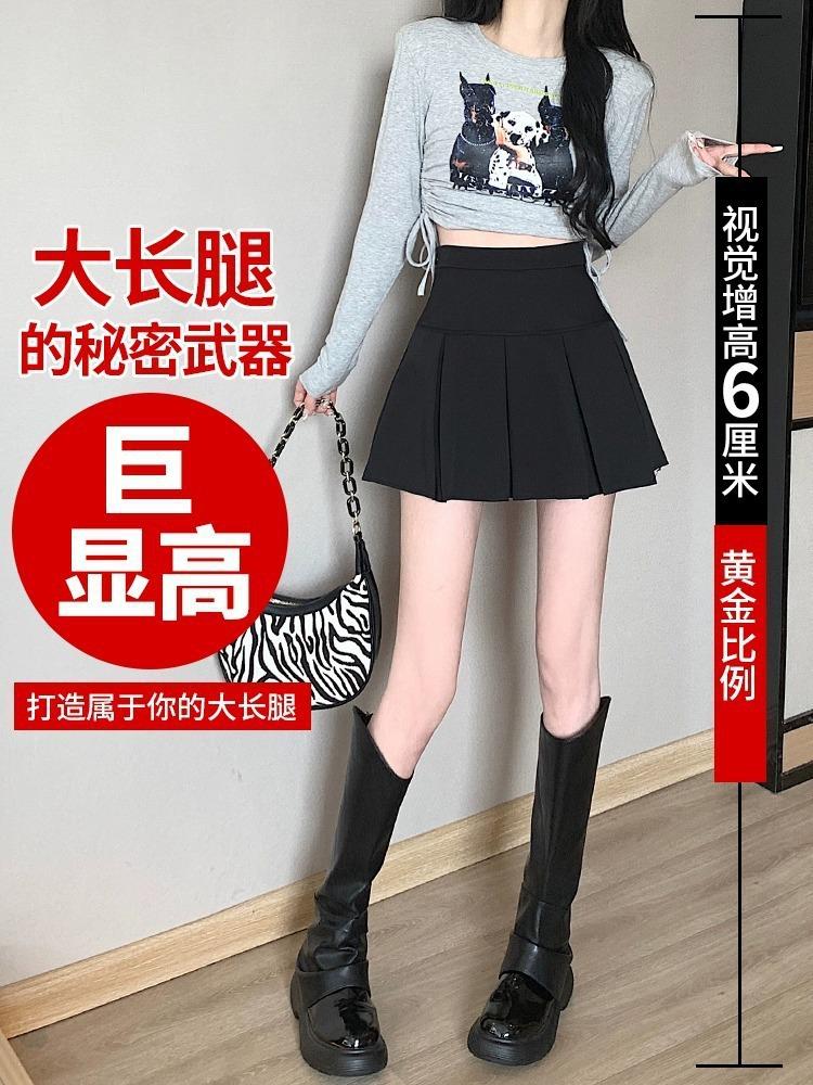 Falda Acampanada de Cintura Alta con Pliegues Falda Corta para Mujer Falda Negra Gris Falda Negra de Otoño con Pliegues para Personas Pequeñas