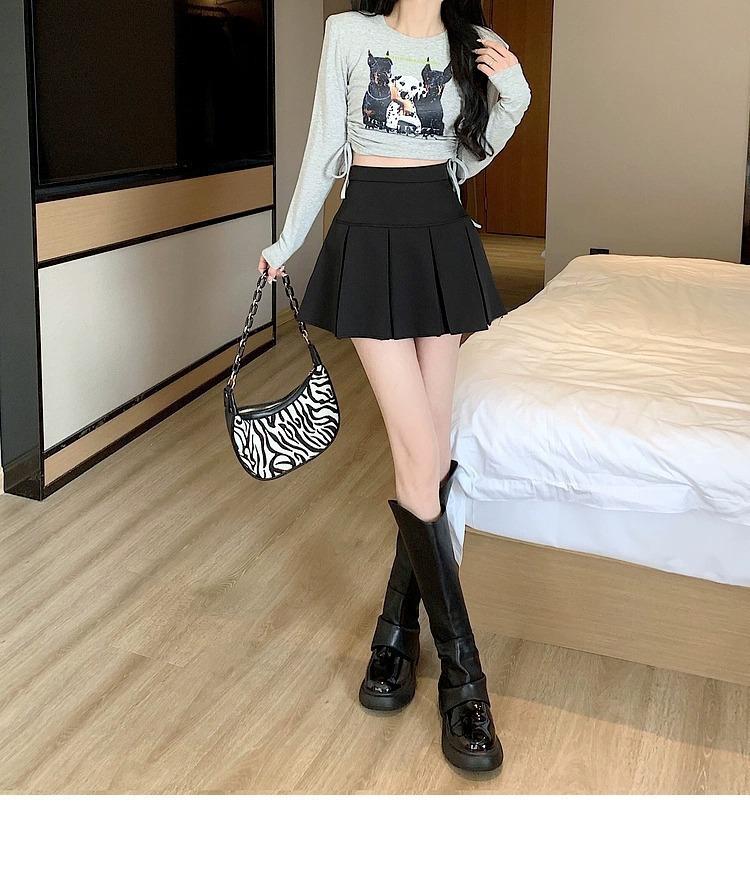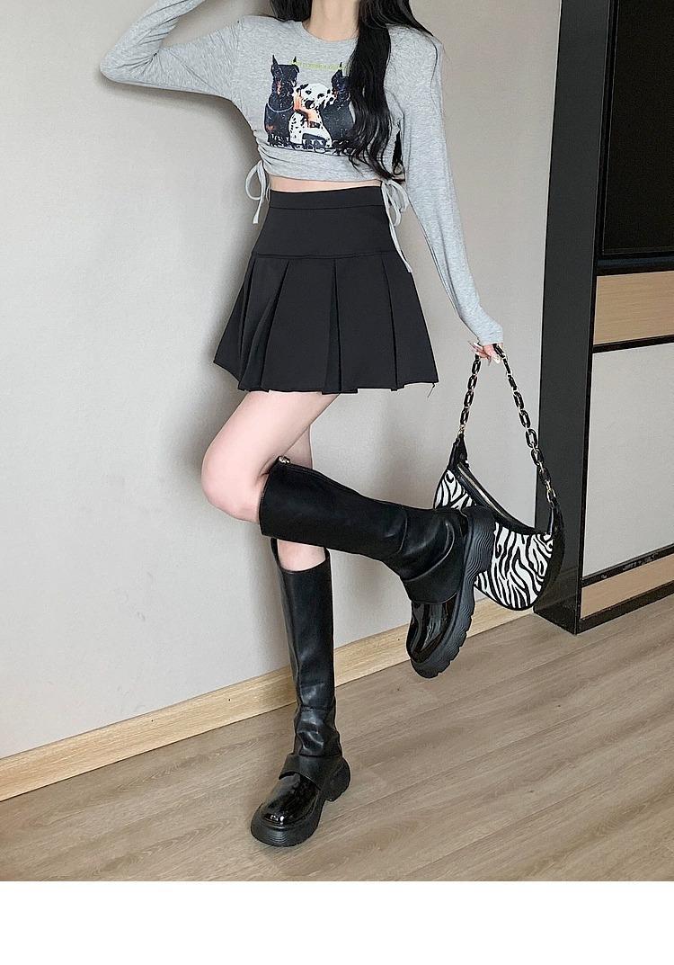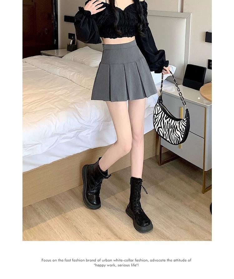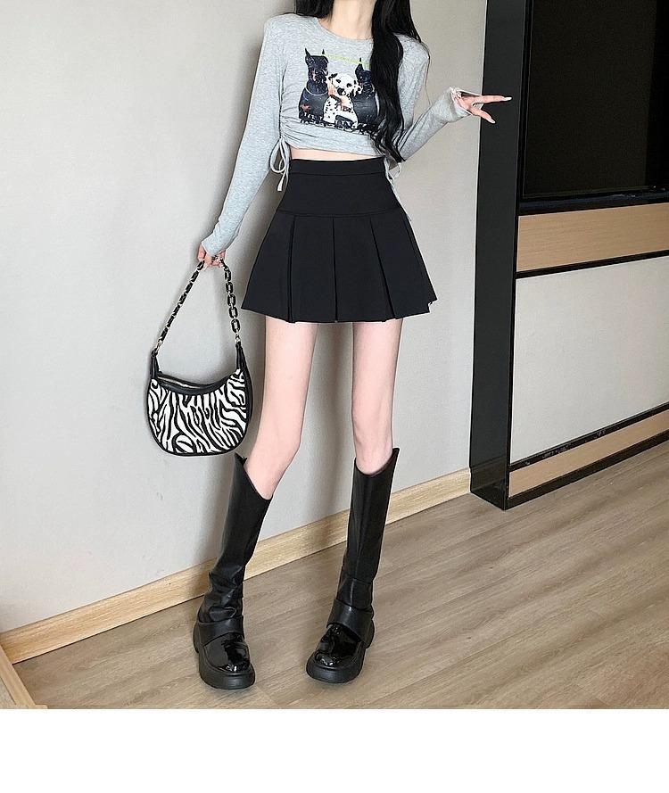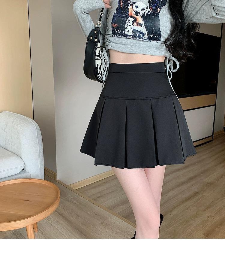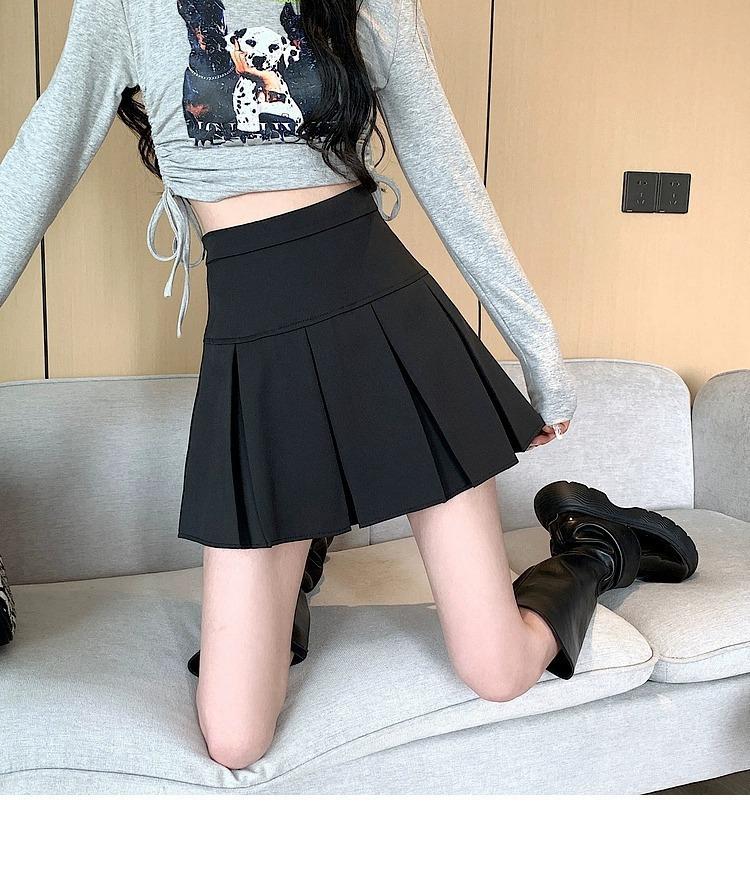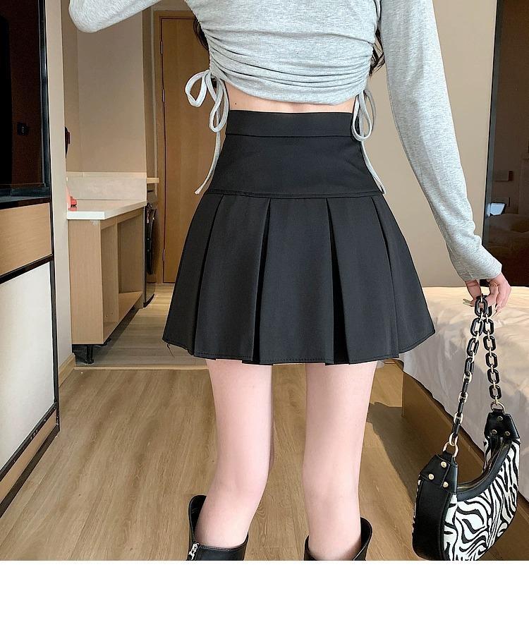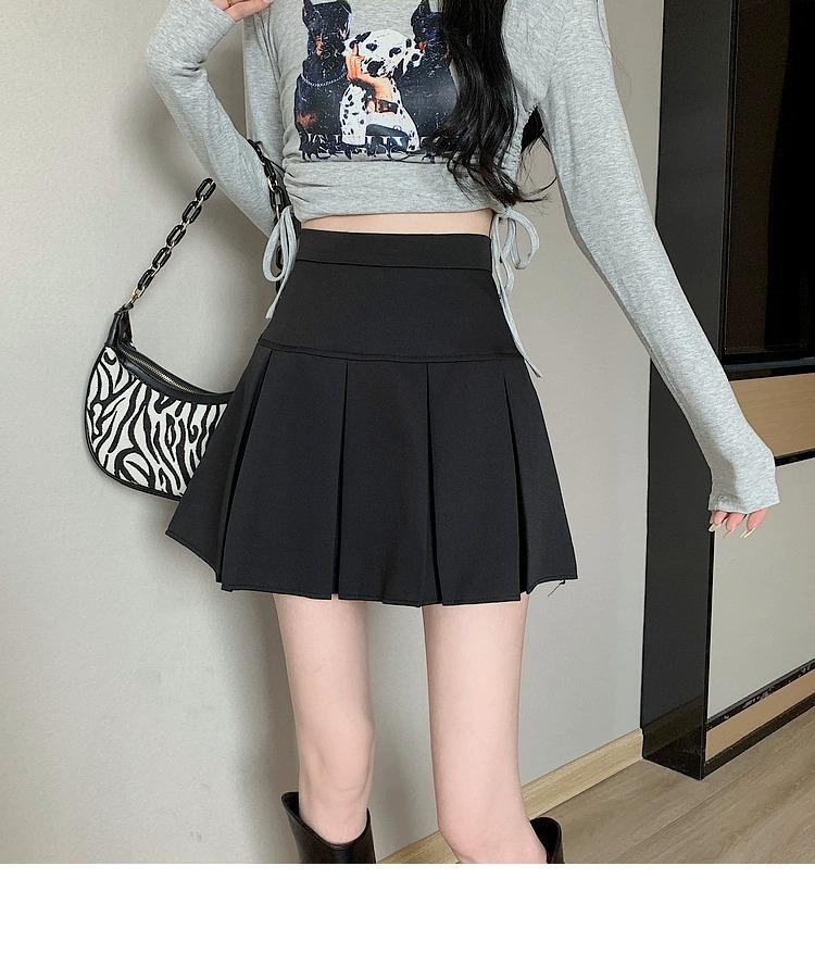 Falda Acampanada de Cintura Alta con Pliegues Falda Corta para Mujer Falda Negra Gris Falda Negra de Otoño con Pliegues para Personas Pequeñas