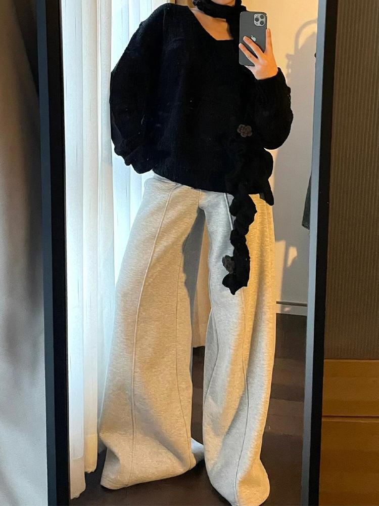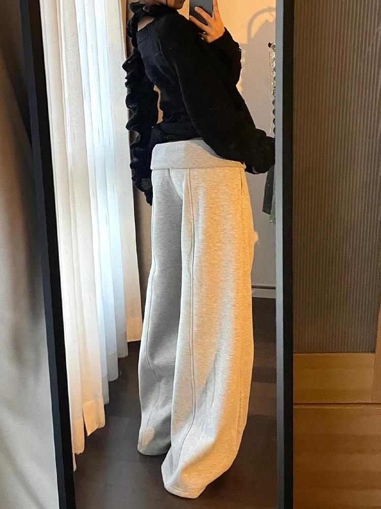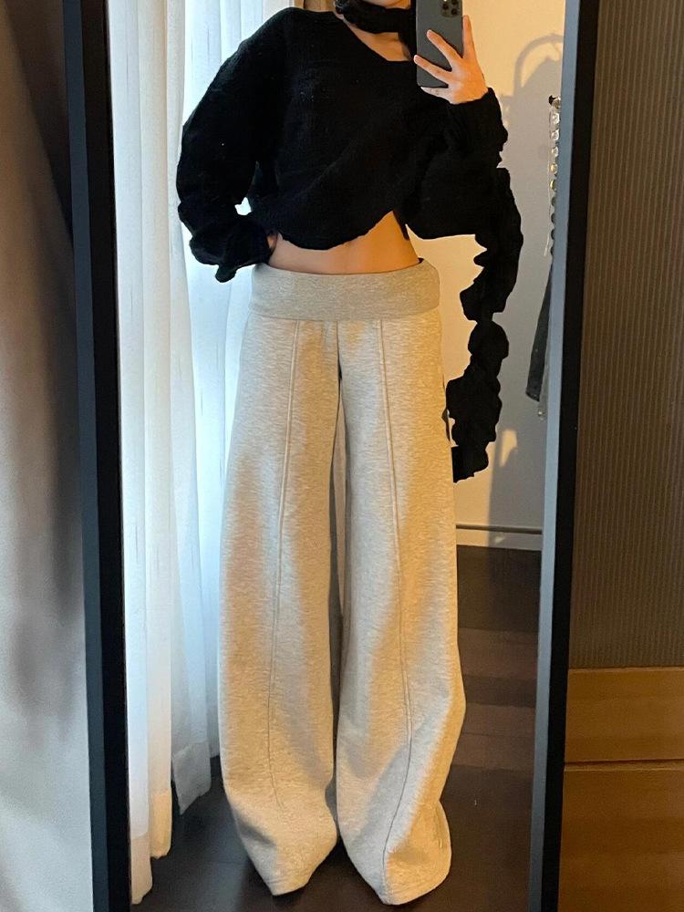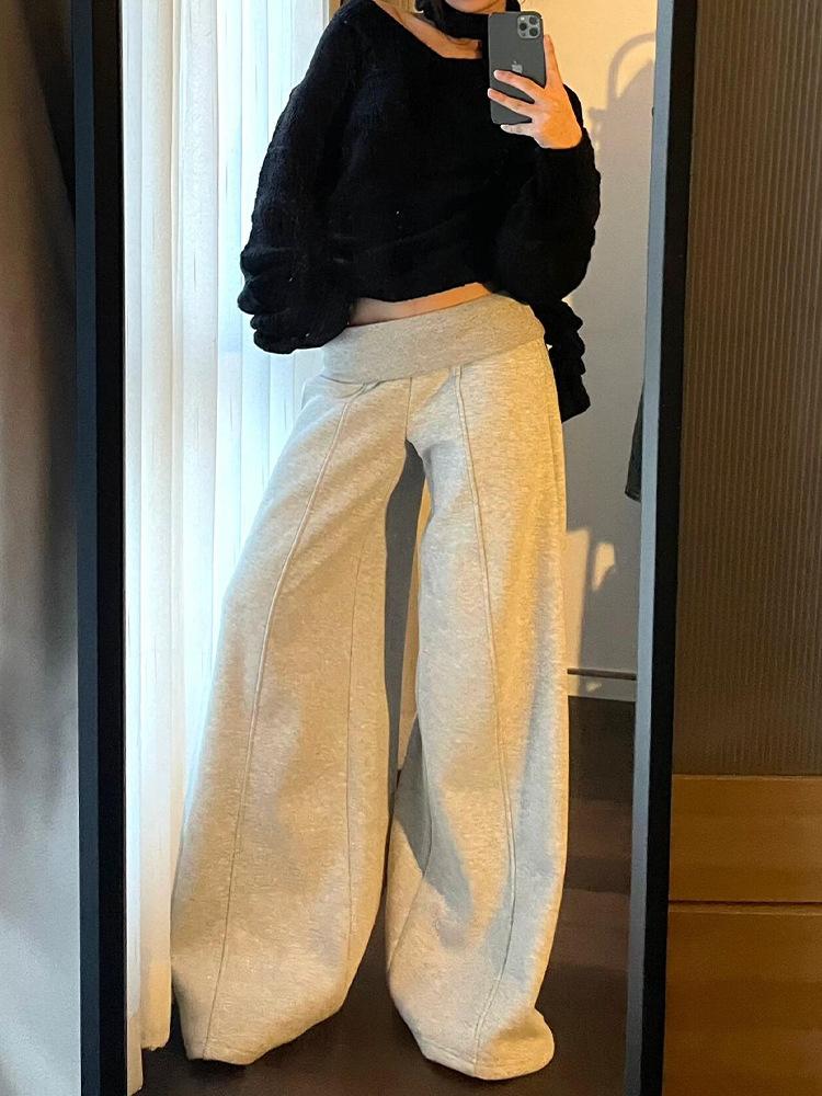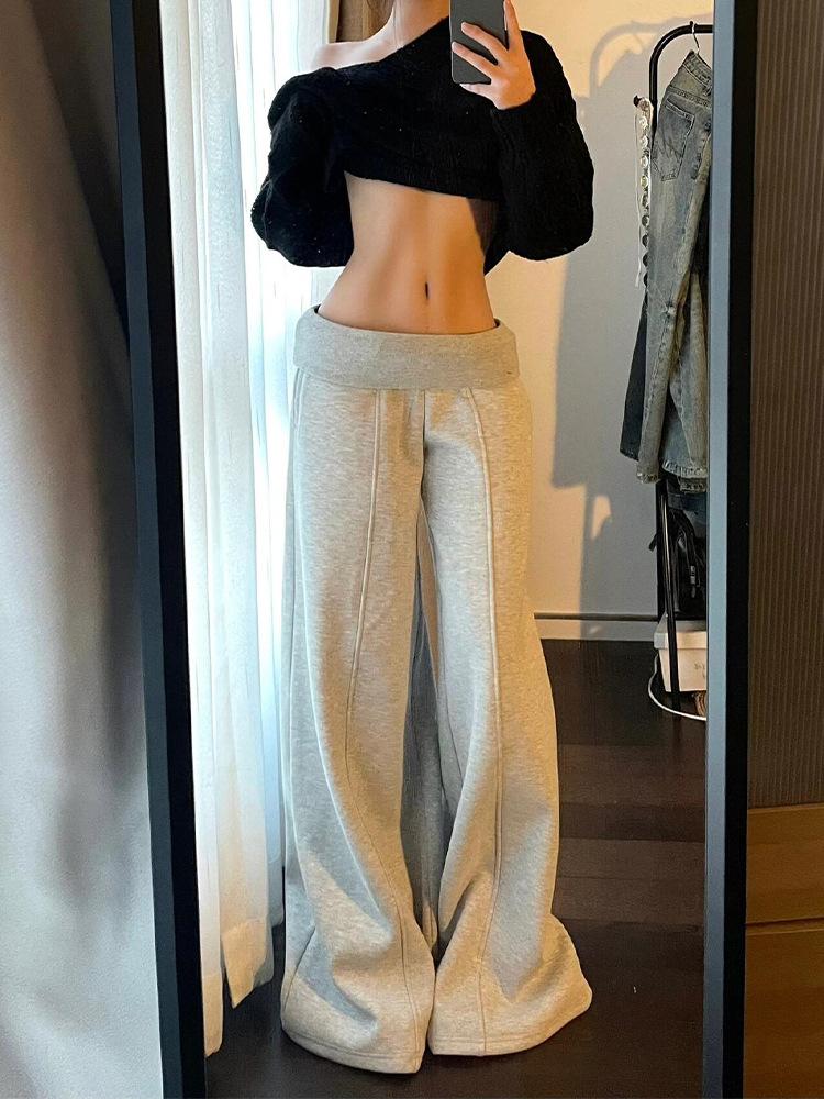 Pantalones de Chándal Holgados de Cintura Baja y Pierna Ancha para Mujer Estilo Americano, Grises, Pantalones Dummy Sueltos, Diseño Versátil, Pantalones Casuales