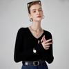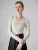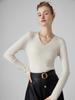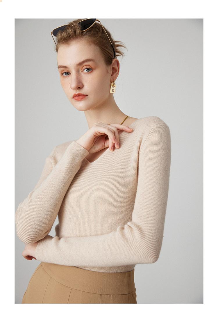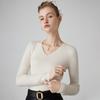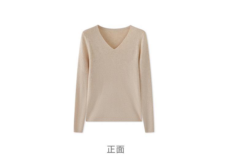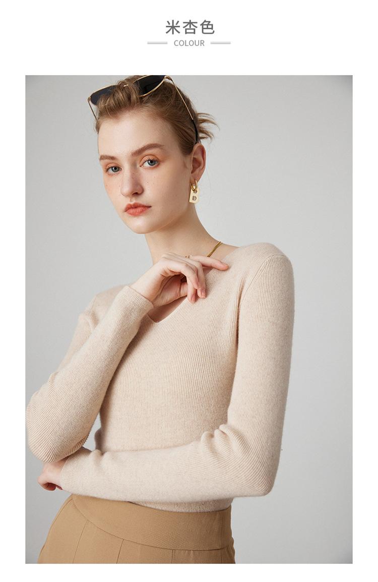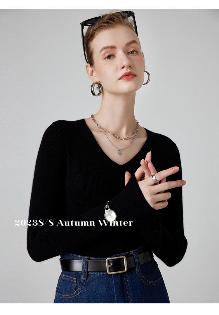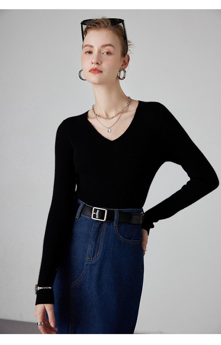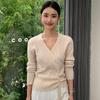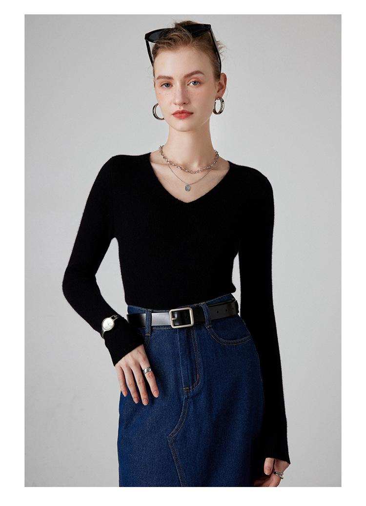Suéter de Cachemira para Mujer Cuello en V Manga Larga Jersey Primavera y Otoño Nuevo Corte Ajustado Lana Tejido Suéter de Fondo Top Casual