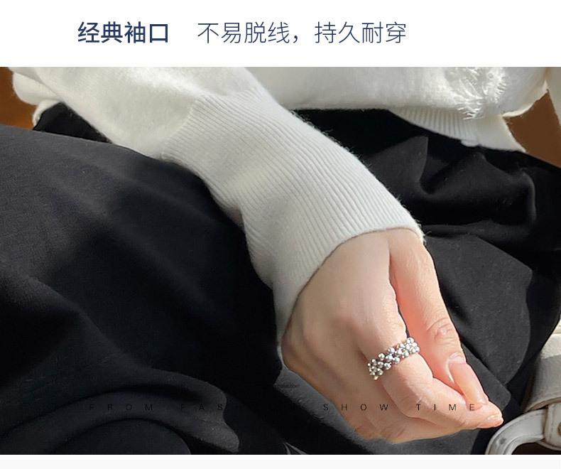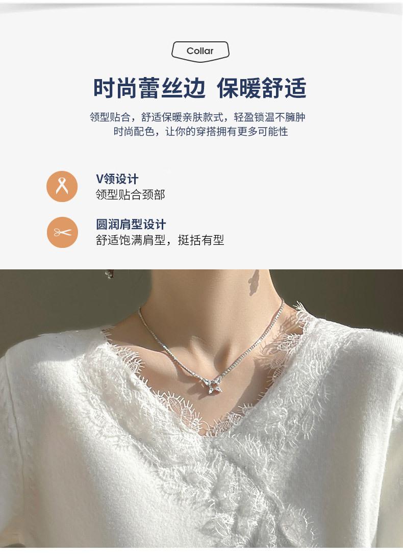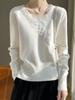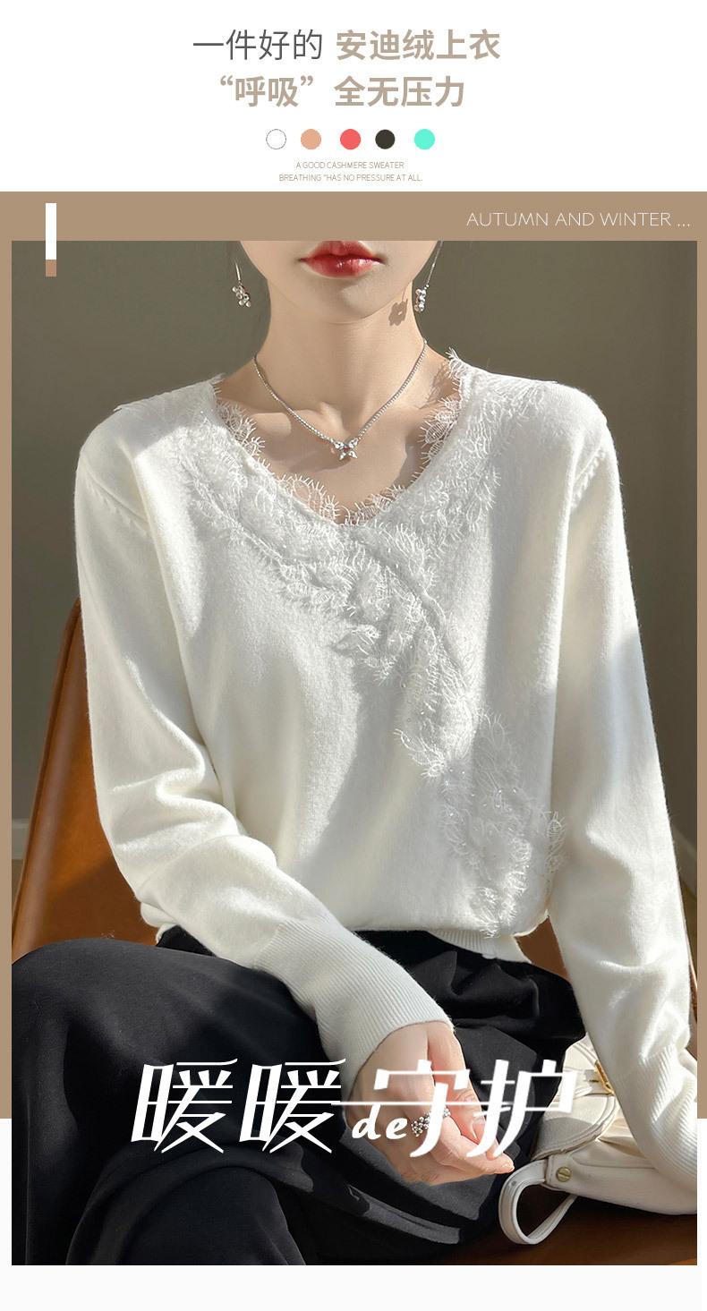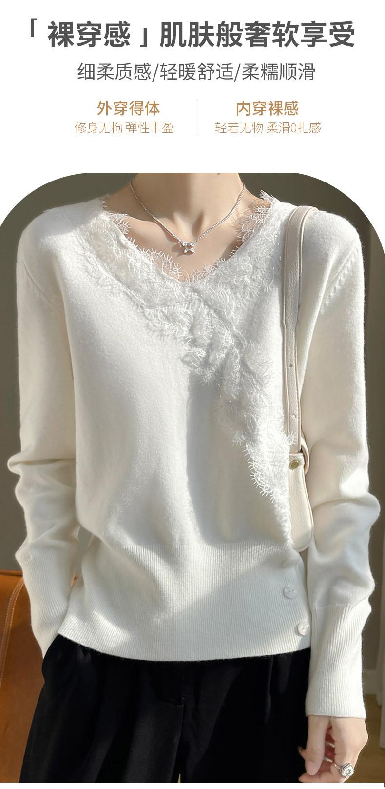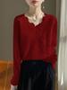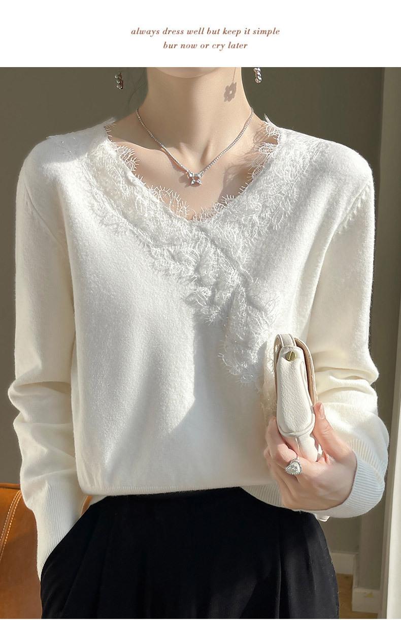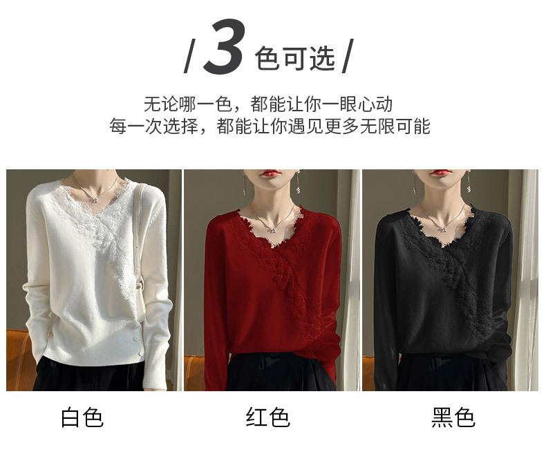 Suéter de cuello en V con encaje de estilo francés para mujer, otoño e invierno 2024, nueva camisa básica holgada de estilo occidental con textura suave y cerosa