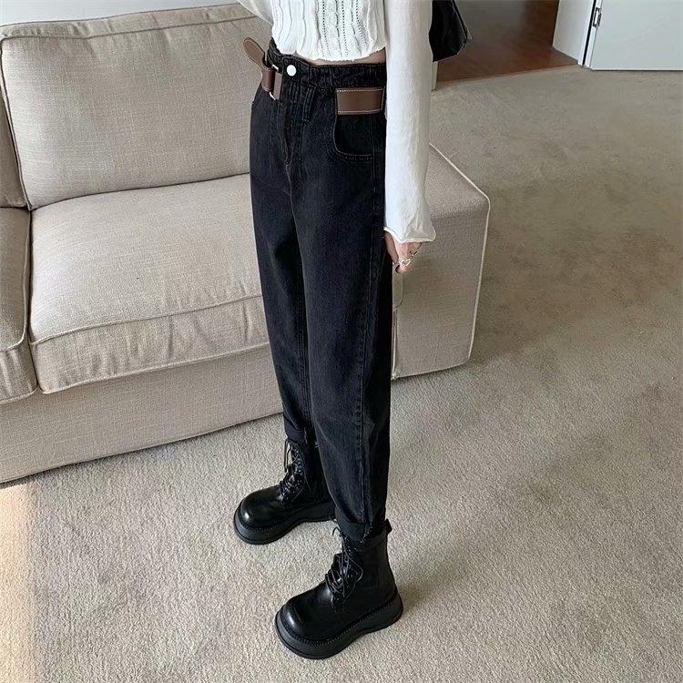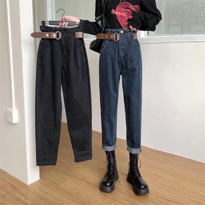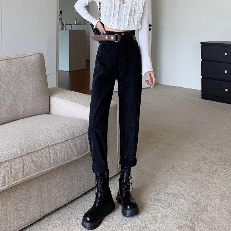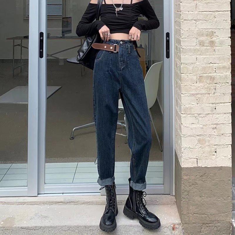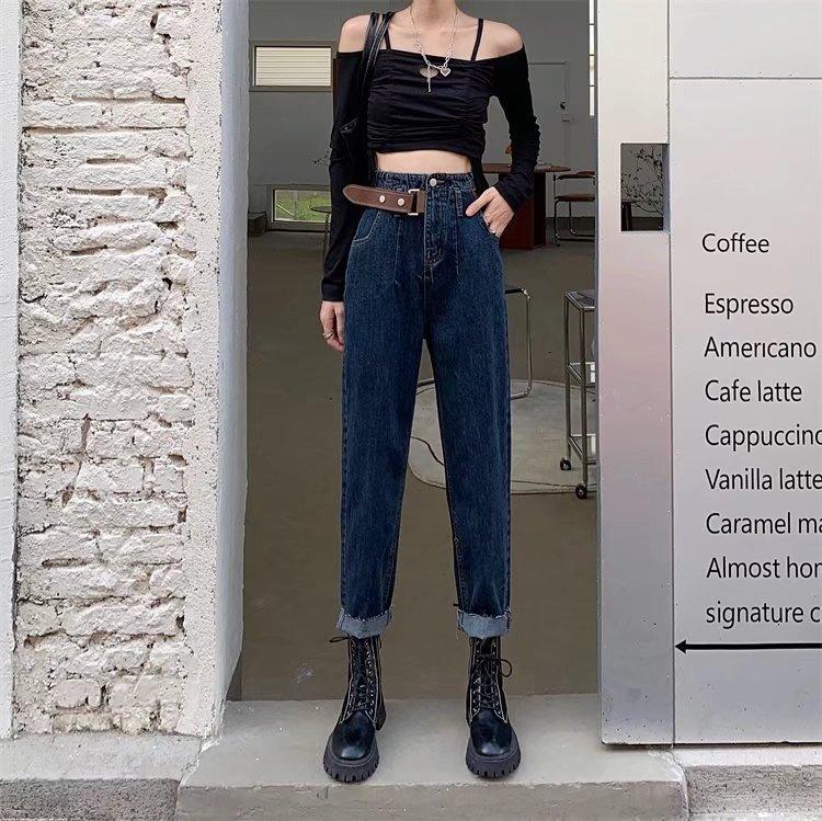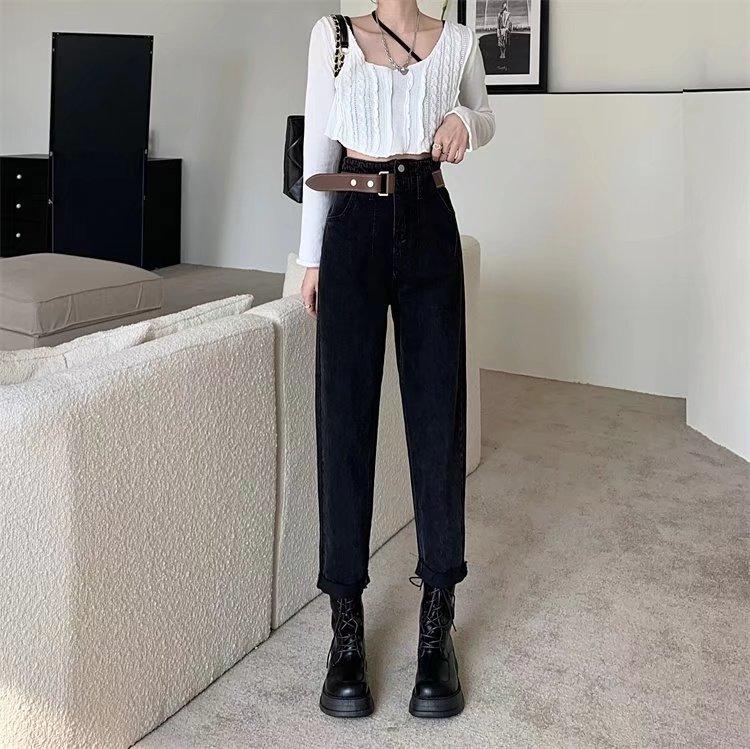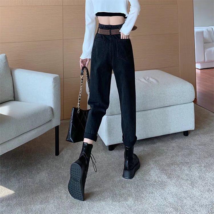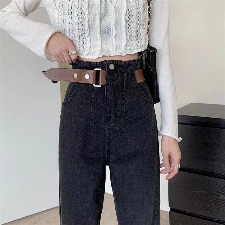 Pantalones vaqueros de mujer, pantalones de calle fritos de otoño populares 2024, nuevos pantalones harén recortados adelgazantes de cintura alta versátiles retro, moda