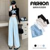Paso a paso, pantalones de cubitos de hielo, sentido de la textura, patrón roto, temperamento, ocio, pantalones de pierna ancha/falda elegante de imitación de ácido acético