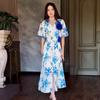 Otoño 2024 Nuevo Vestido Casual de Moda para Mujer Europeo y Americano Transfronterizo Amazon Transfronterizo Estilo Cuello en V Estampado