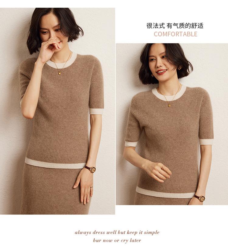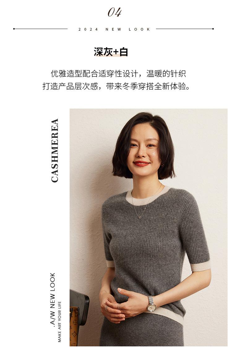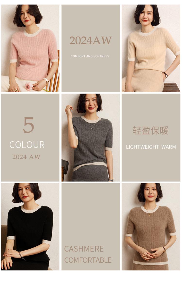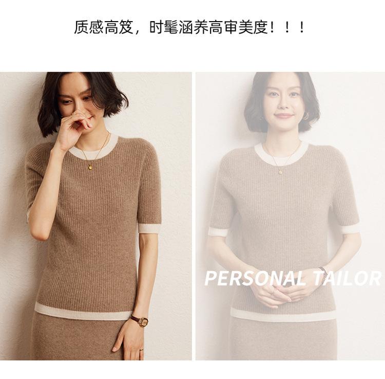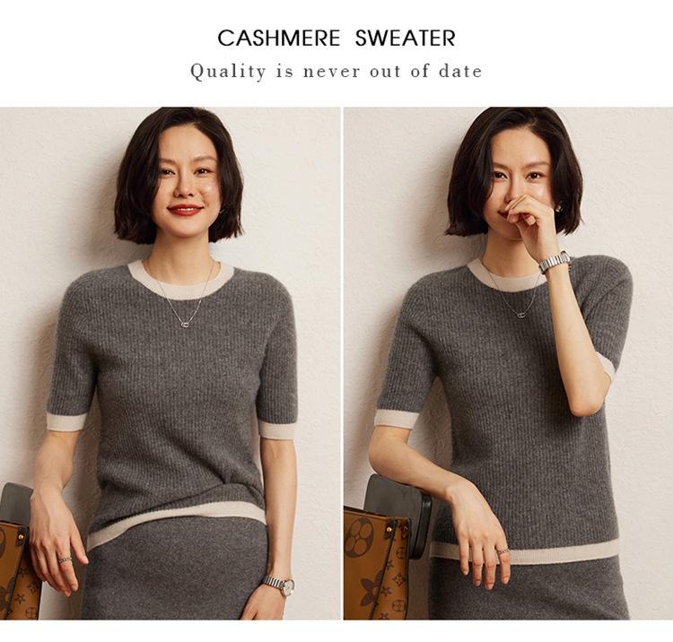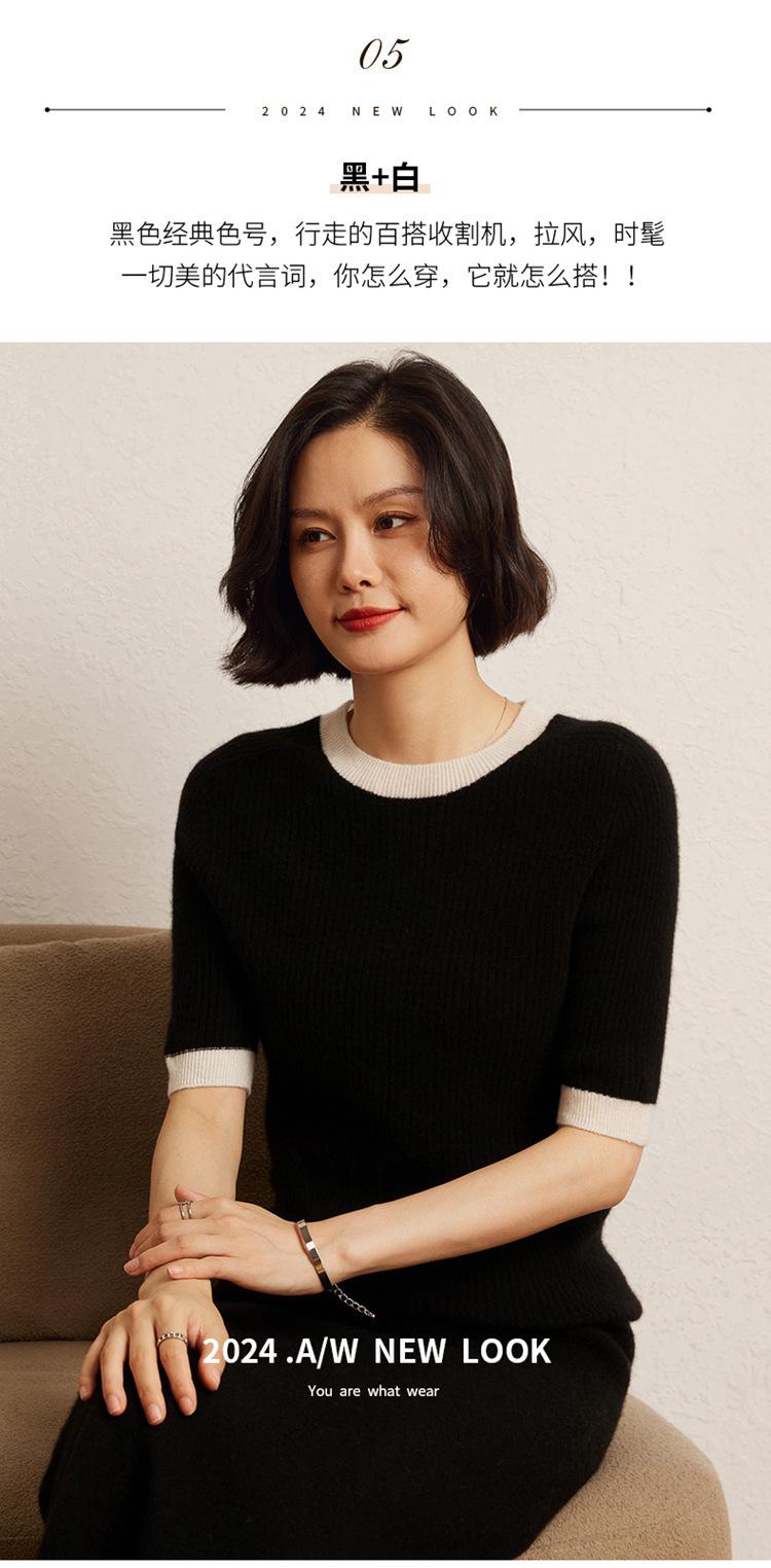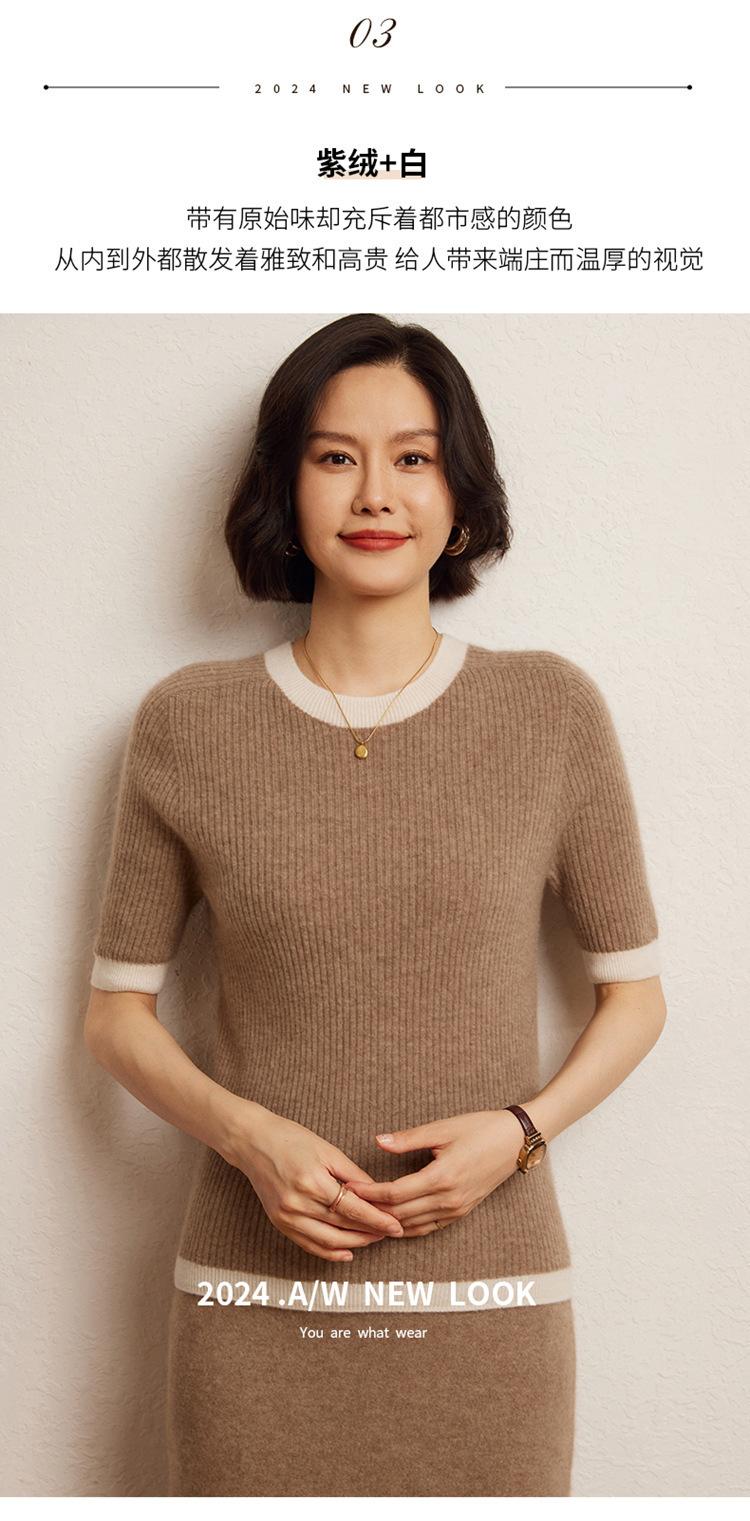 Cachemira 2024 otoño e invierno nuevo jersey de cuello redondo de dos piezas falsas corto ajustado de fondo para mujer